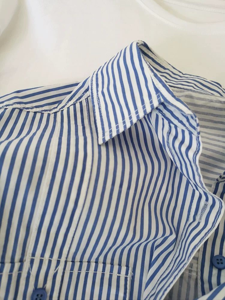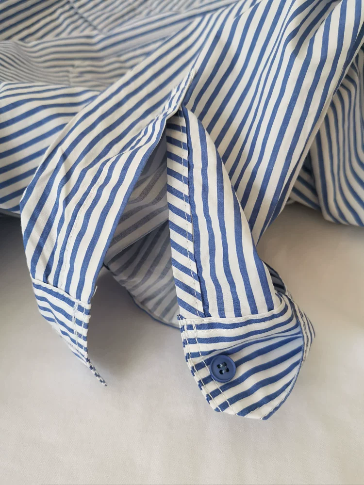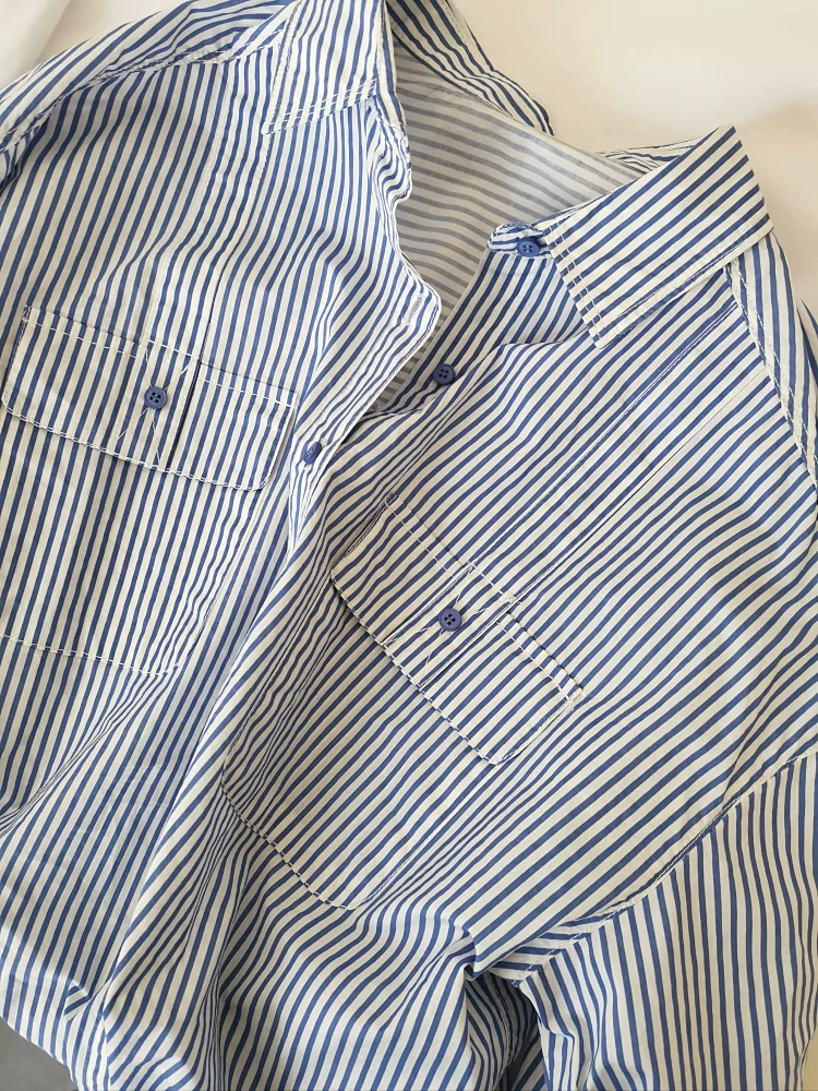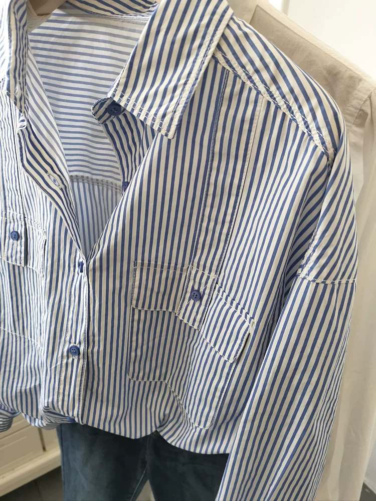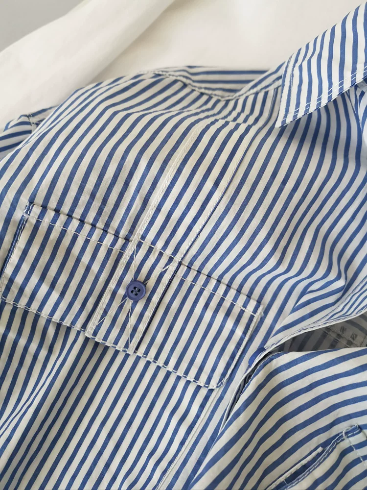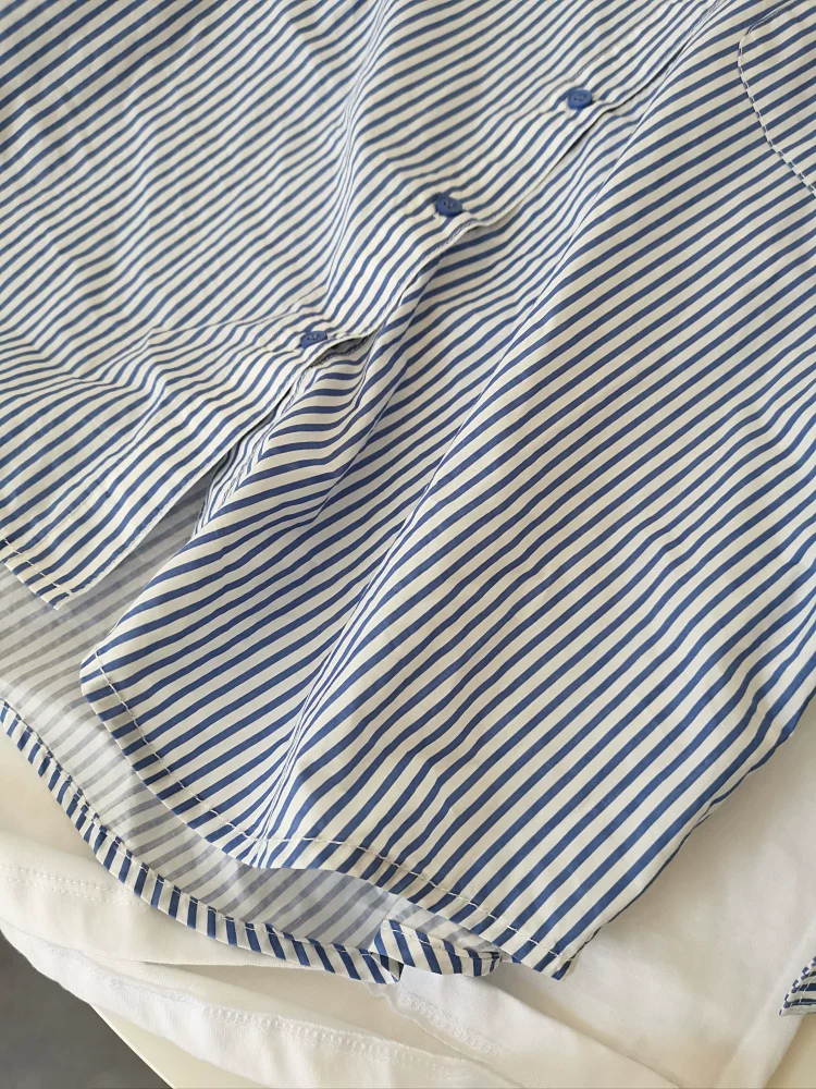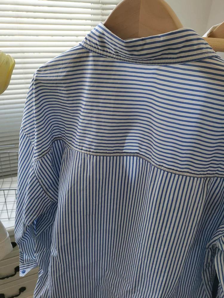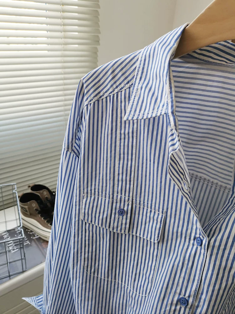 - Áo sơ mi giả hai mảnh phối sọc kiểu Nhật Bản 2025, phong cách nghệ thuật, dáng rộng, mặc thường ngày, dài trung bình dành cho nữ