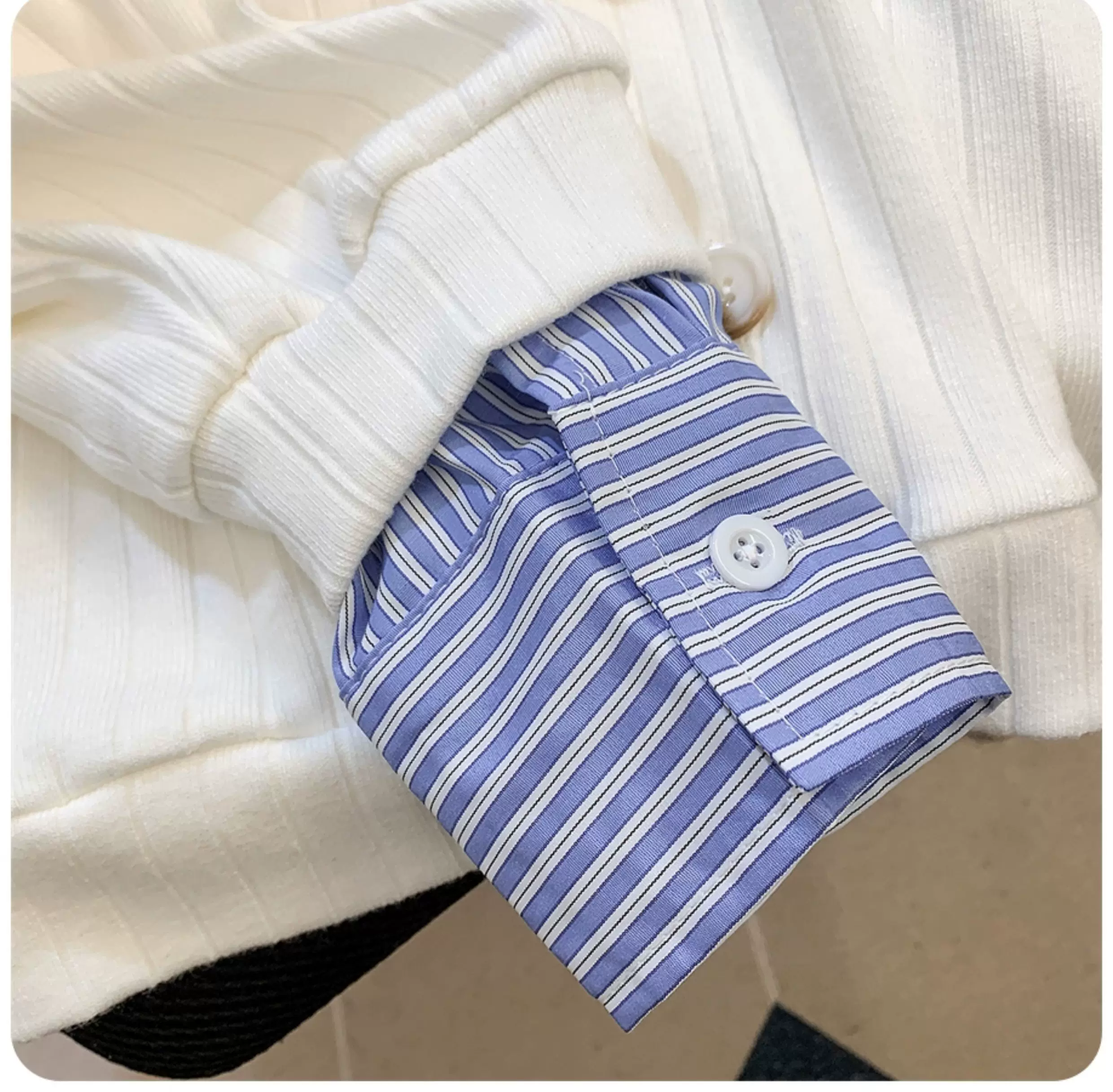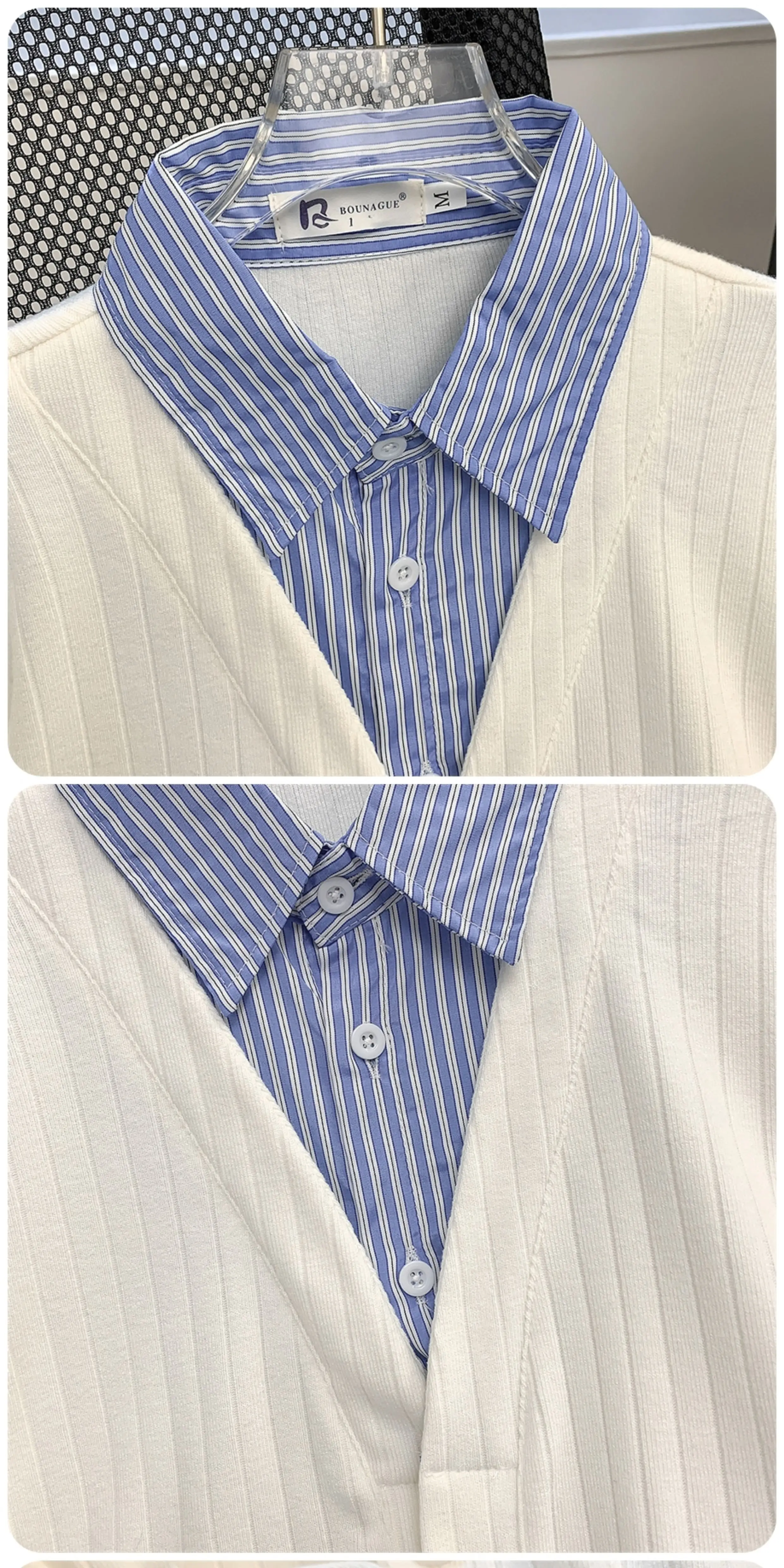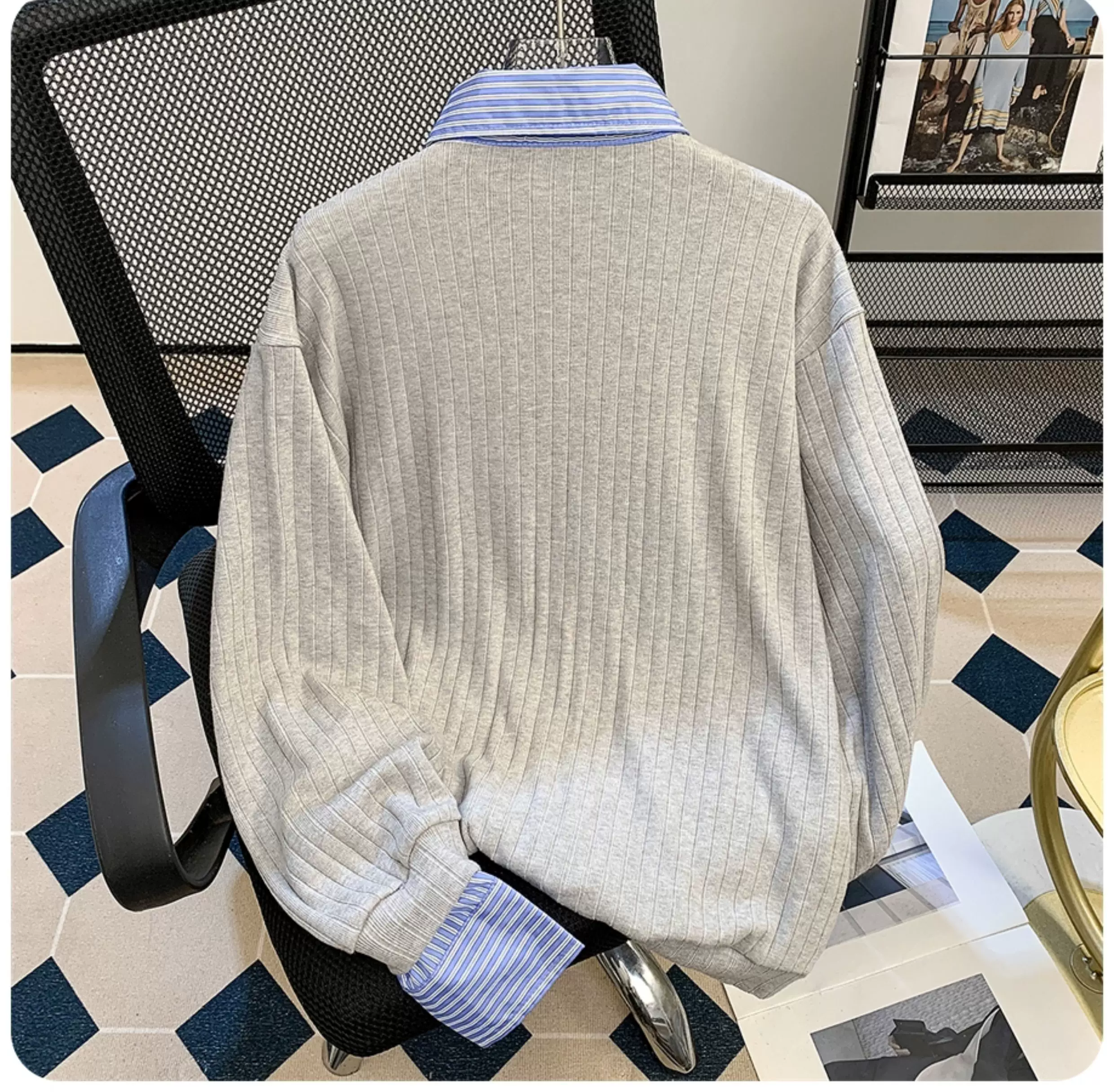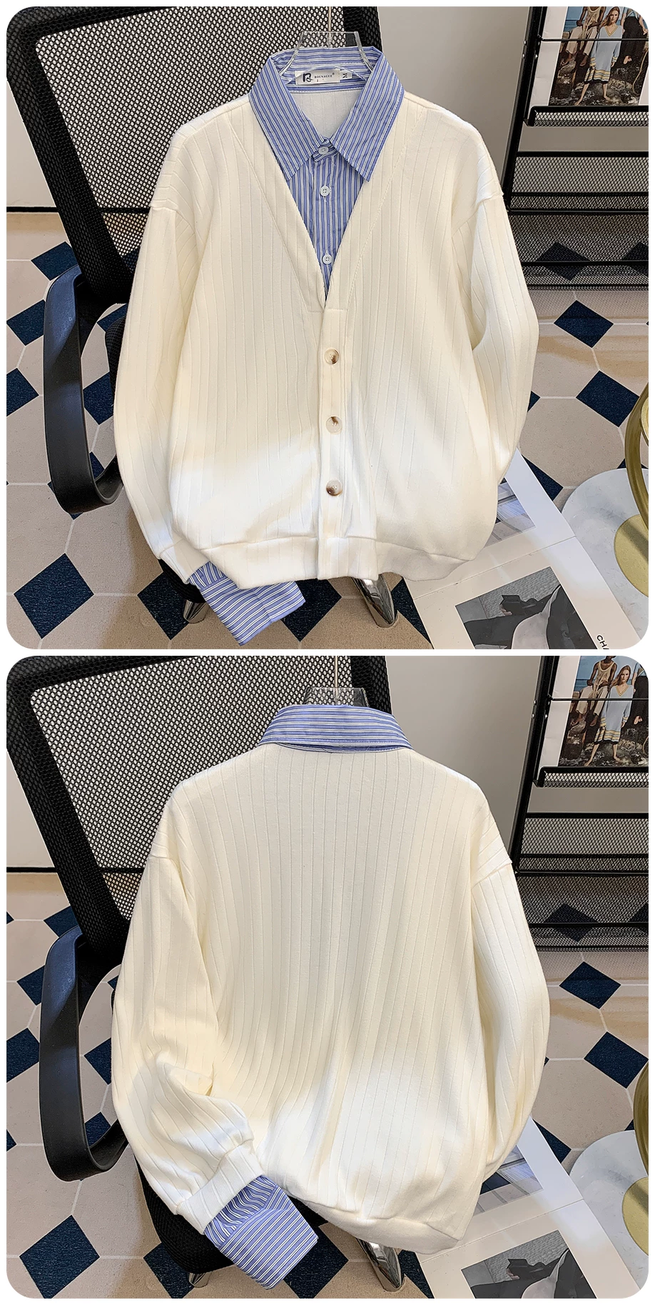 - Áo sơ mi giả hai mảnh phong cách Nhật Bản dành cho nam, áo nỉ cổ bẻ dáng rộng hợp thời trang mùa xuân thu, áo sơ mi dài tay phối màu cao cấp.