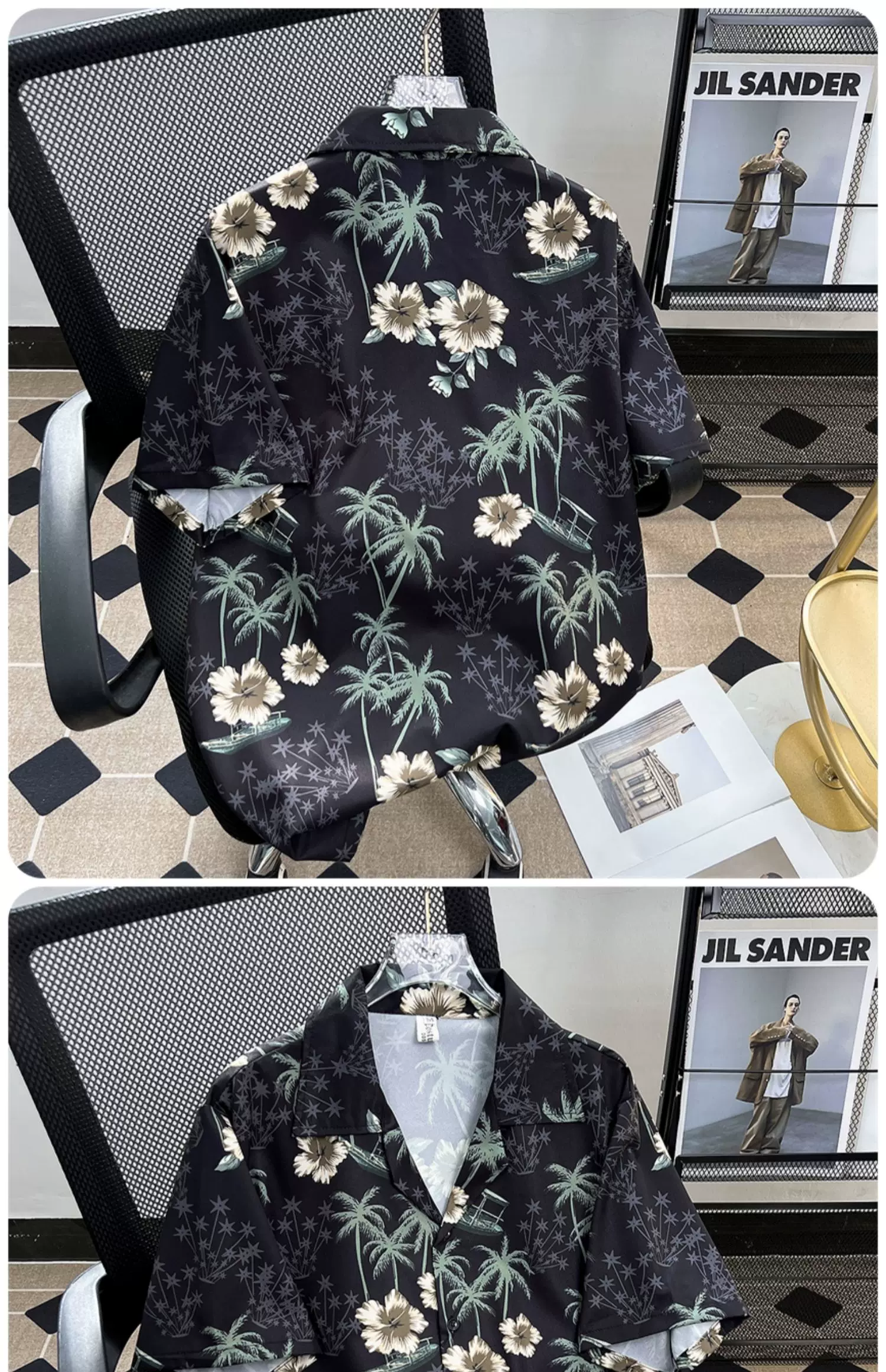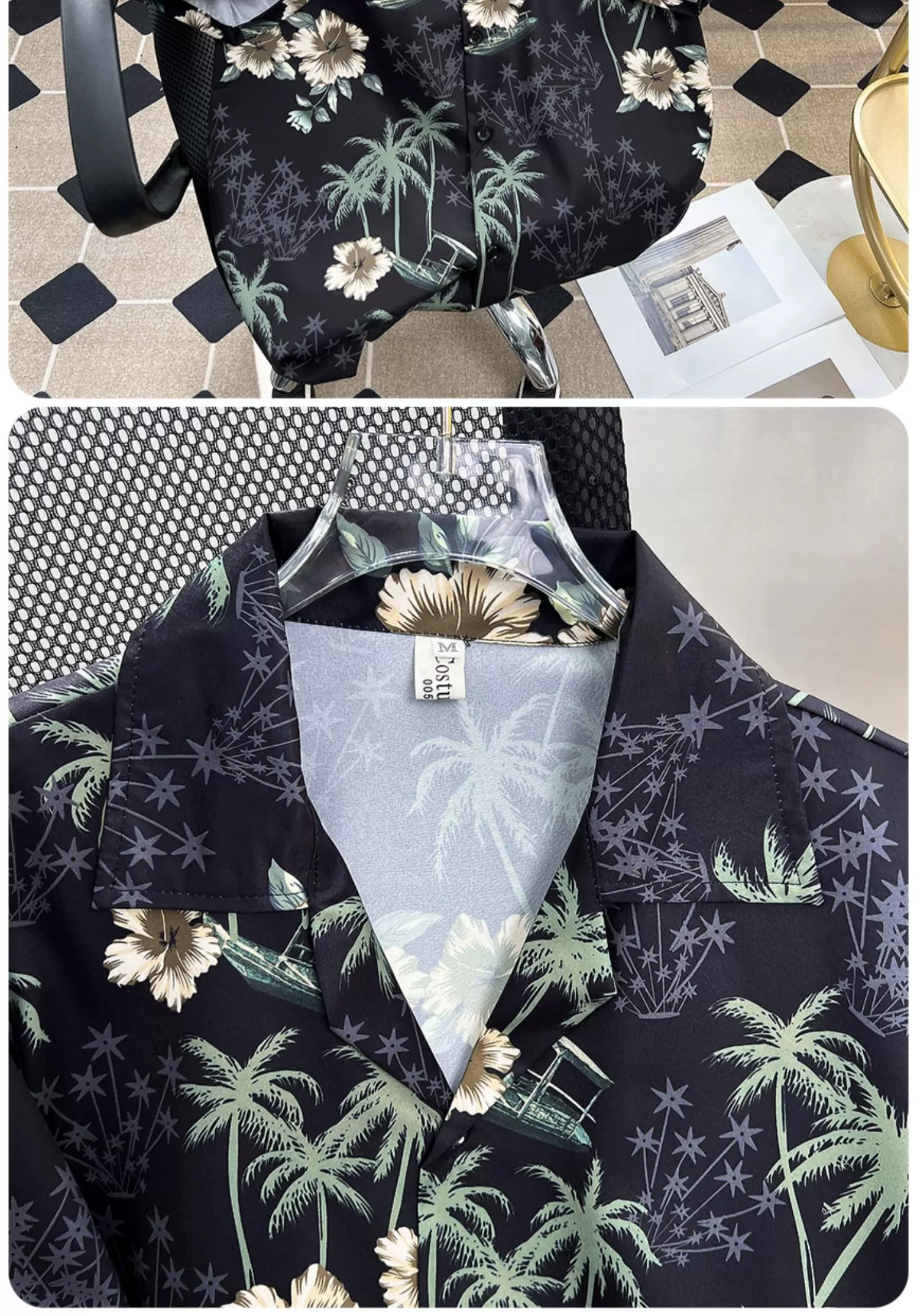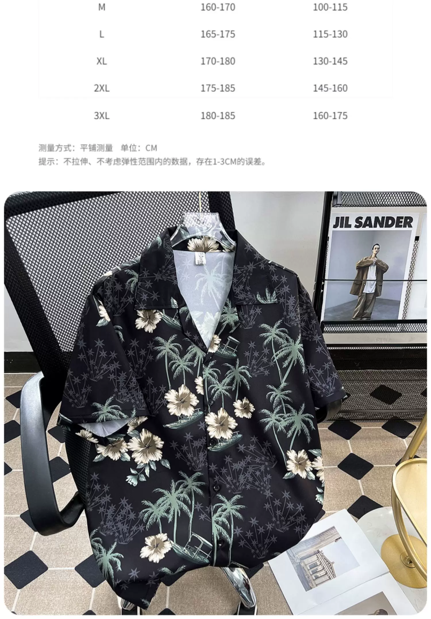 - Áo sơ mi hoa bãi biển chất liệu lụa băng dành cho nam, tay ngắn, kiểu cổ Cuba phong cách Mỹ thời thượng, cao cấp mùa hè, kiểu dáng thời trang và rộng rãi.