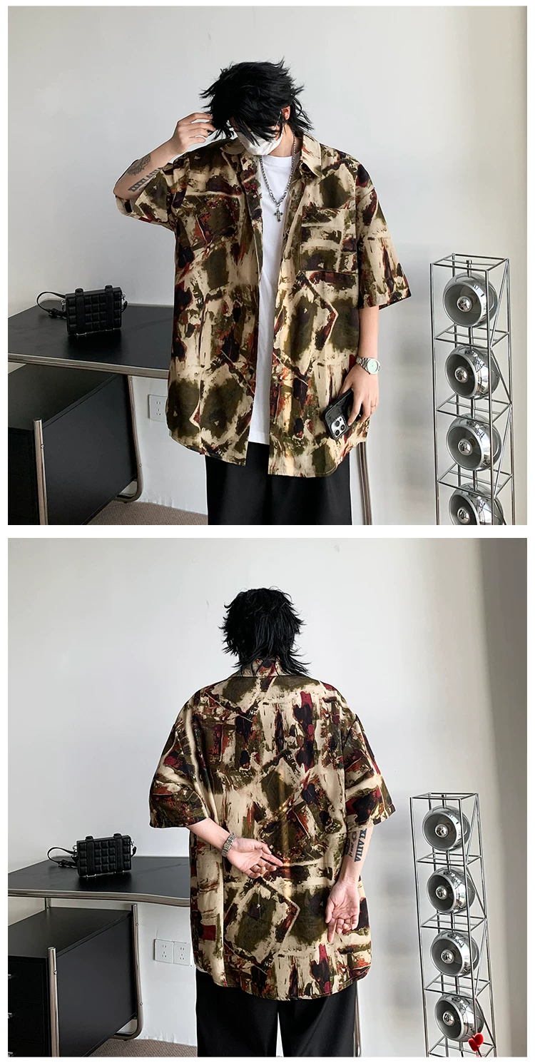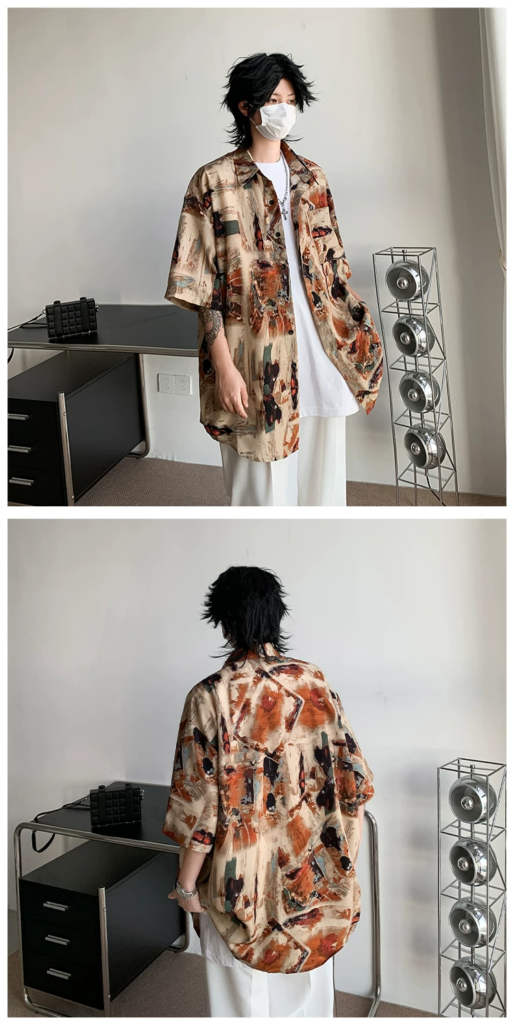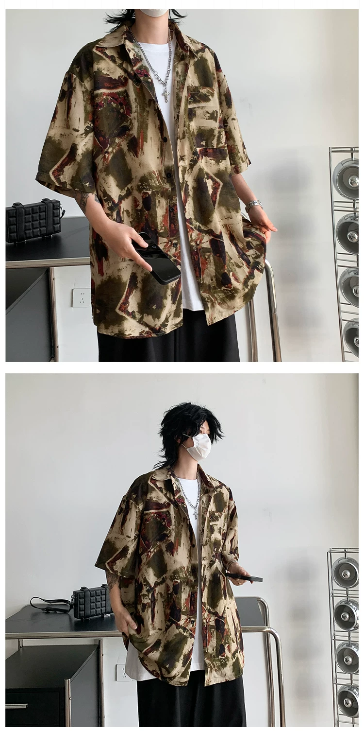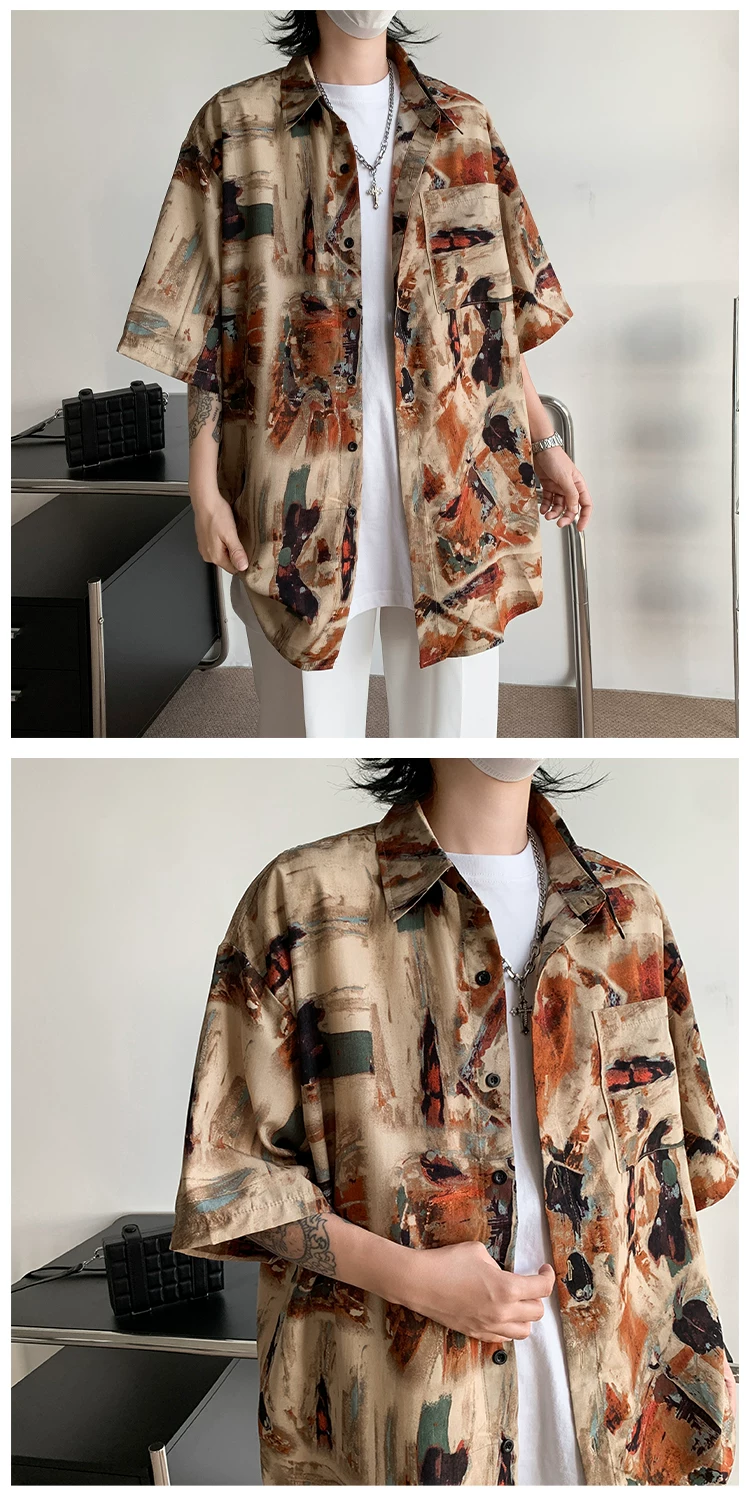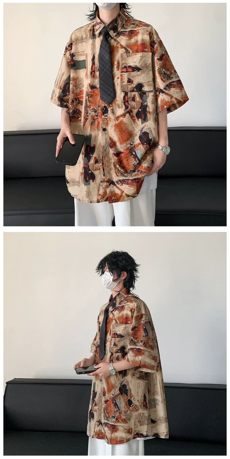 - Áo sơ mi hoa văn cổ điển kiểu Mỹ dành cho nam, áo sơ mi đi biển bằng vải lụa băng mềm mại, tay ngắn, áo khoác cặp đôi mỏng hợp thời trang mùa hè.