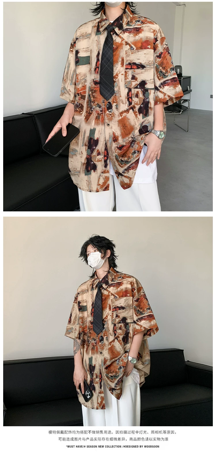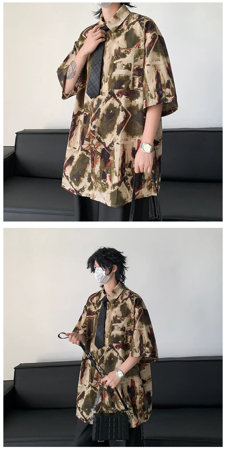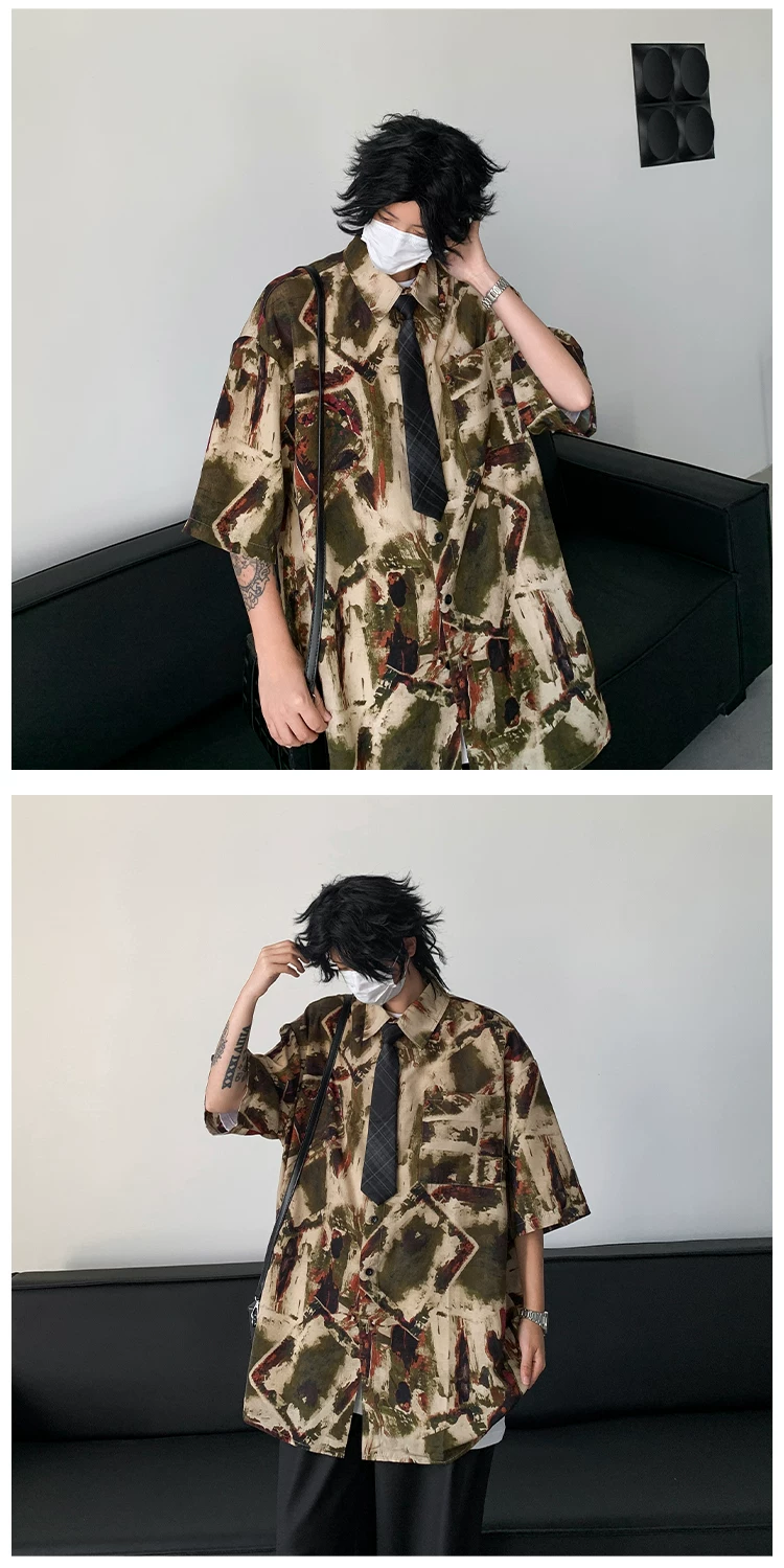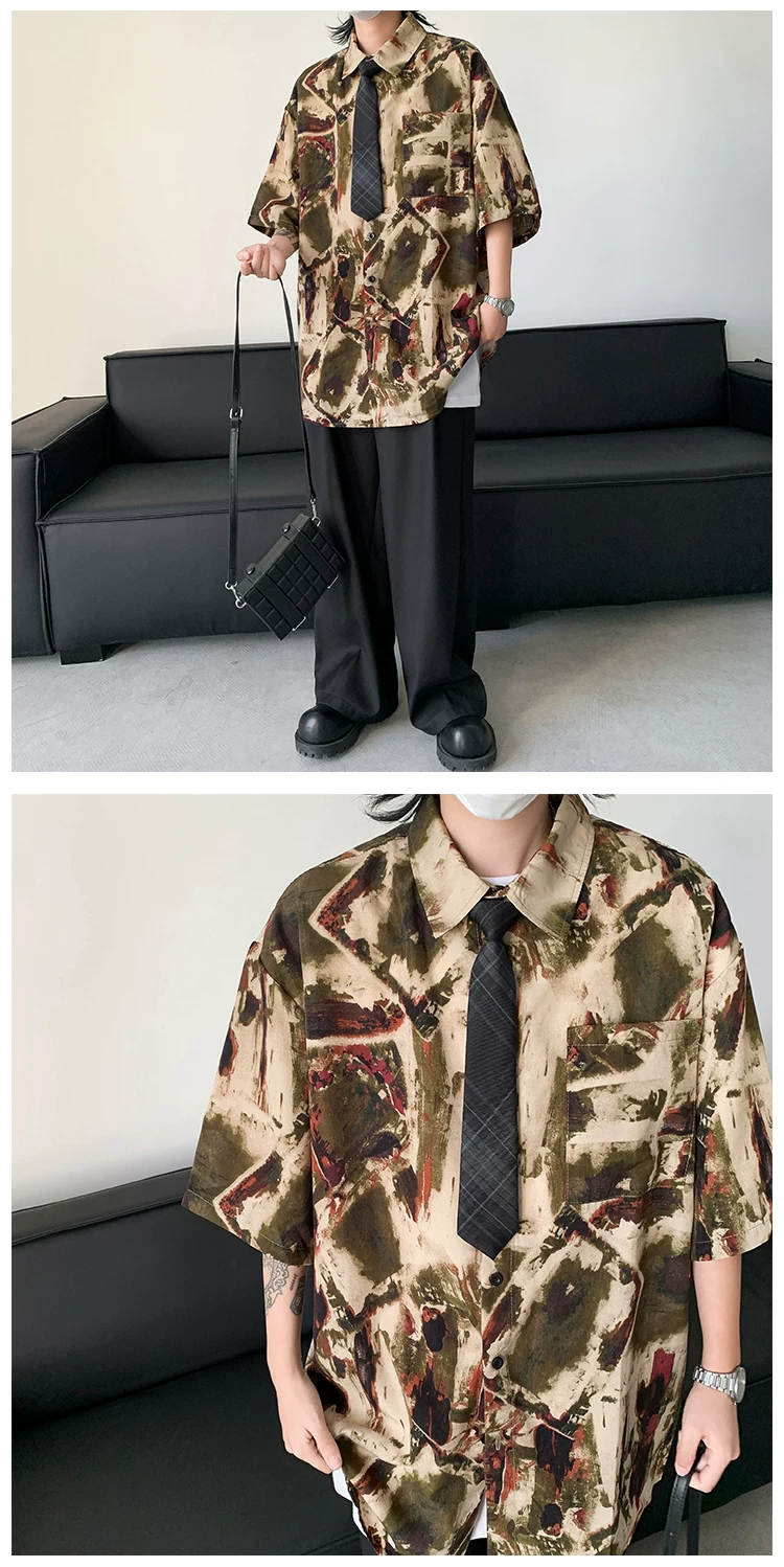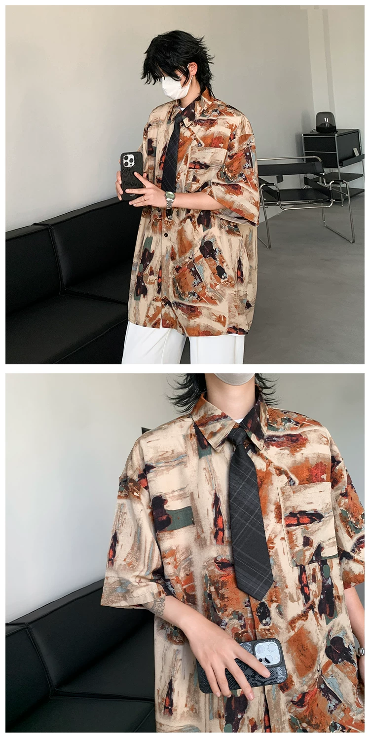 - Áo sơ mi hoa văn cổ điển kiểu Mỹ dành cho nam, áo sơ mi đi biển bằng vải lụa băng mềm mại, tay ngắn, áo khoác cặp đôi mỏng hợp thời trang mùa hè.
