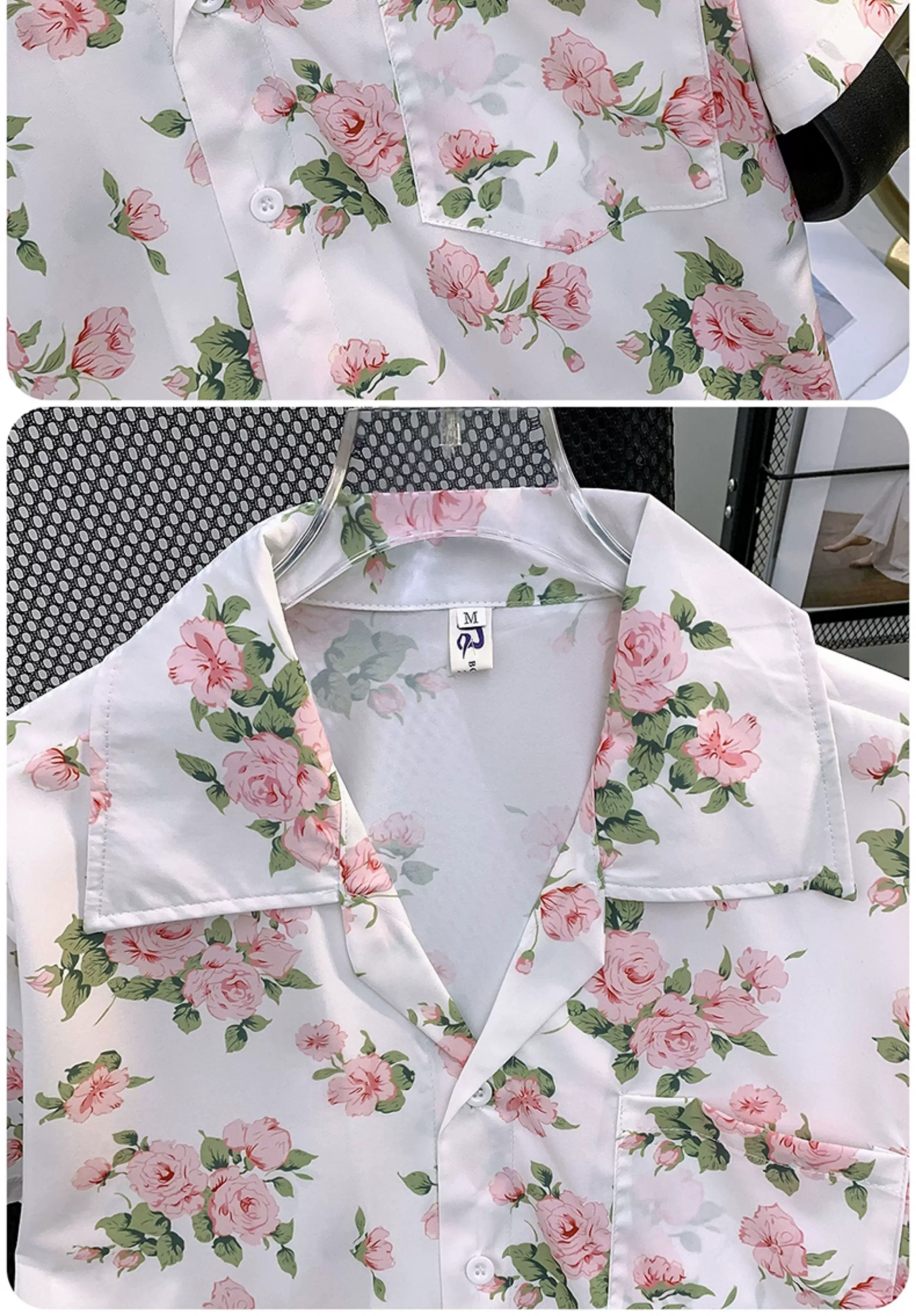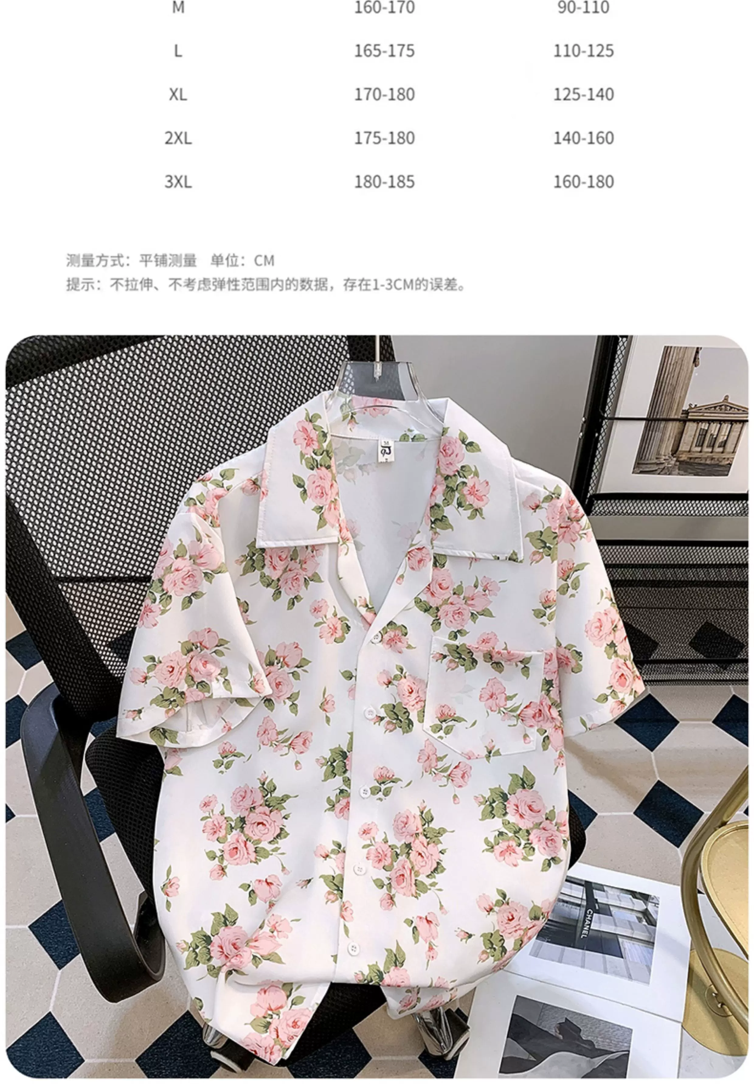 - Áo sơ mi in họa tiết thời trang kiểu Nhật dành cho nam, áo sơ mi ngắn tay mùa hè, áo đôi chất liệu lụa đá Hawaii.