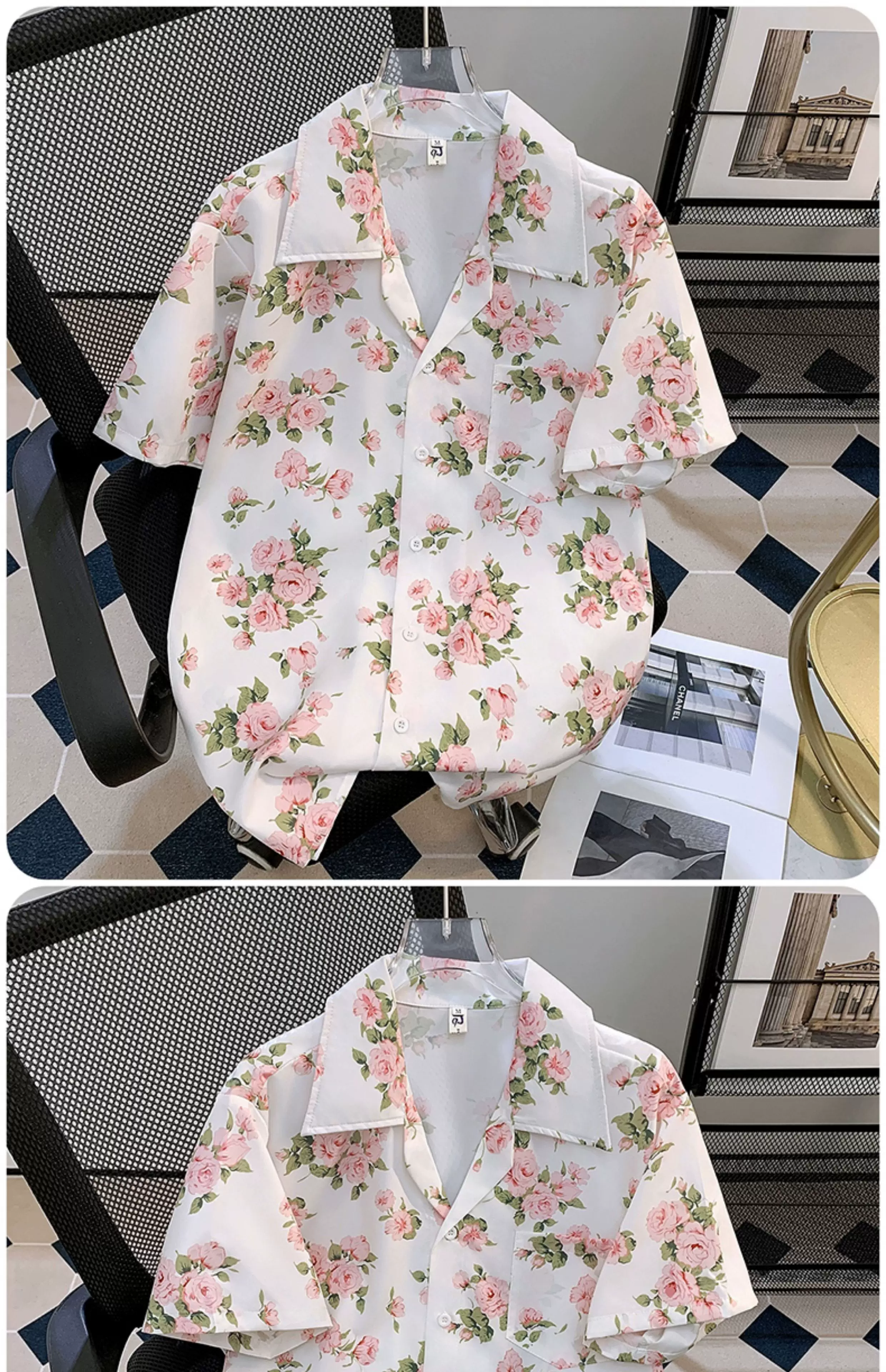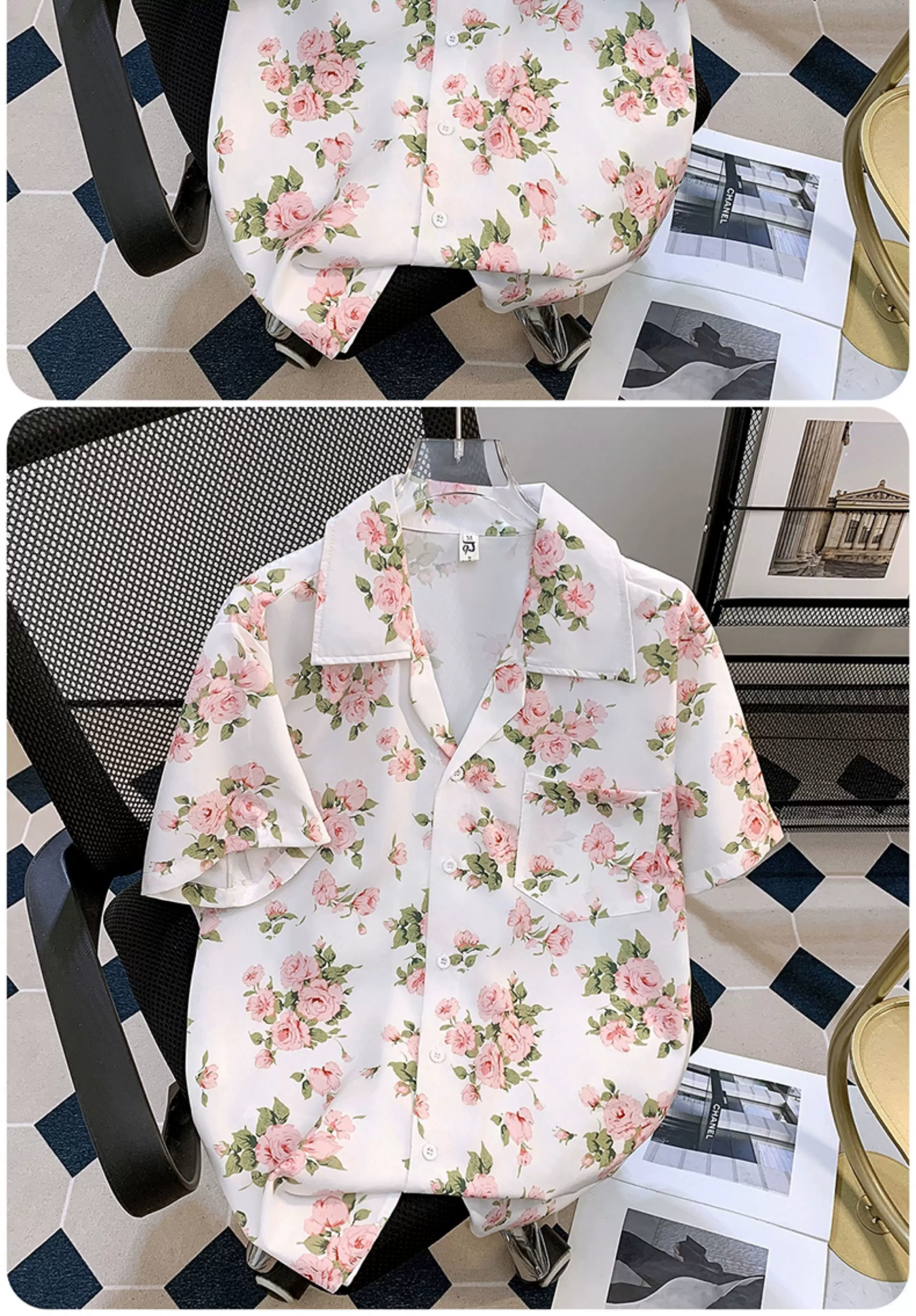 Áo sơ mi in họa tiết thời trang kiểu Nhật dành cho nam, áo sơ mi ngắn tay mùa hè, áo đôi chất liệu lụa đá Hawaii.