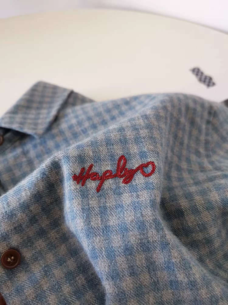 Áo sơ mi kẻ caro đỏ cổ điển có thêu, chất liệu vải mềm mại, kiểu dáng rộng rãi năm 2025, hai màu