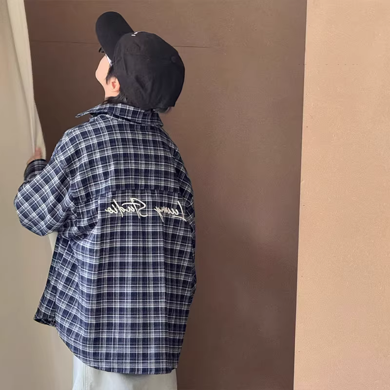 Áo sơ mi kẻ sọc bé trai và bé gái 25 Thu đông áo kiểu trẻ em lớn áo kiểu cổ điển thêu họa tiết kẻ sọc áo khoác