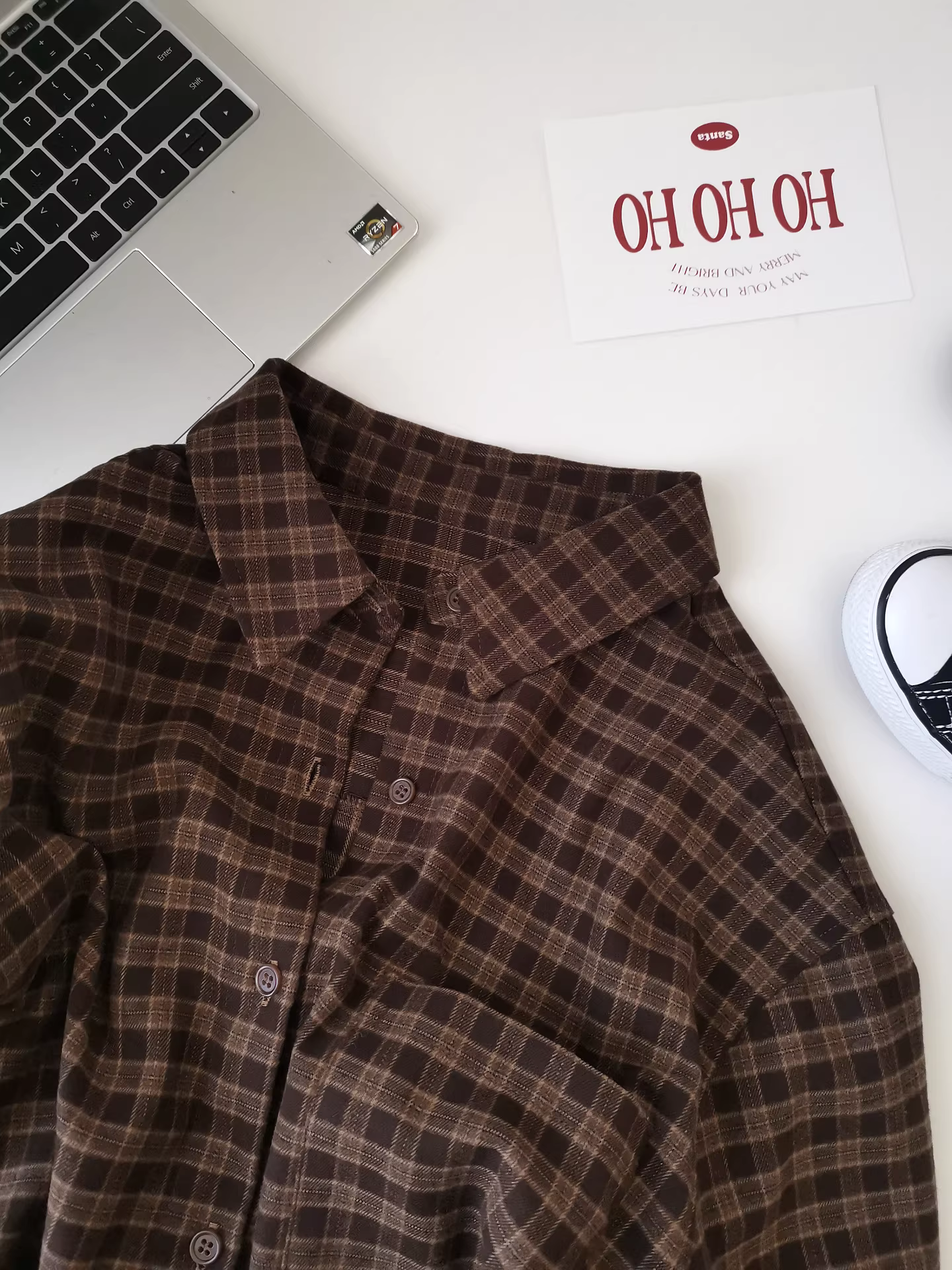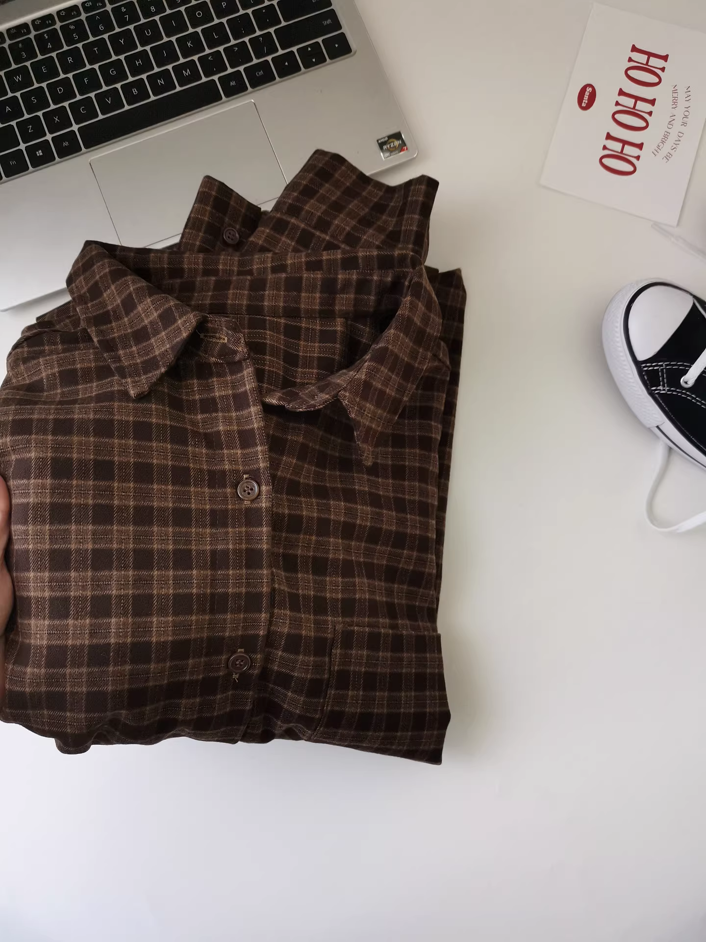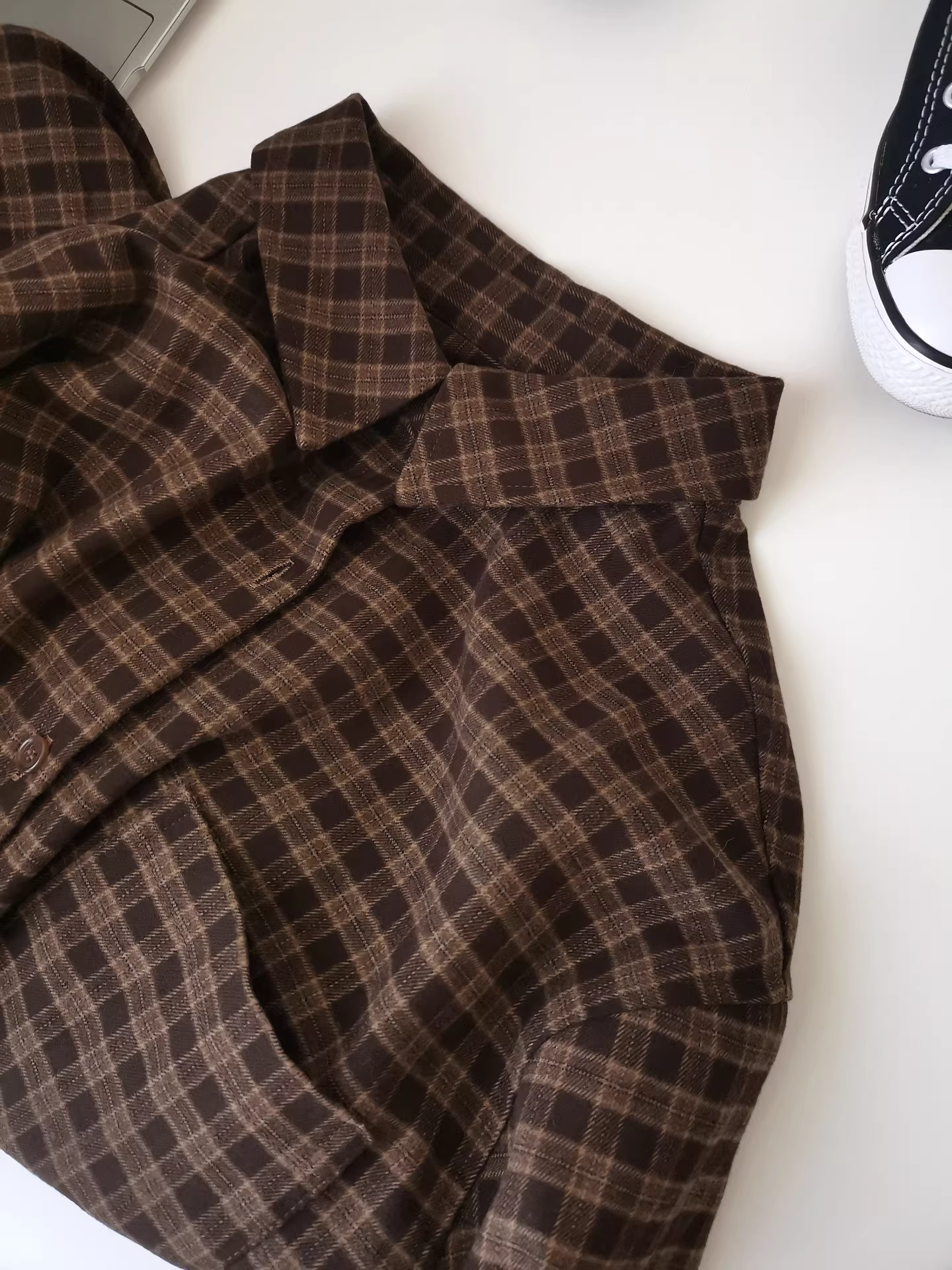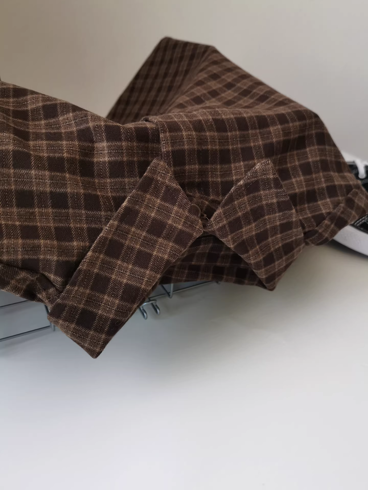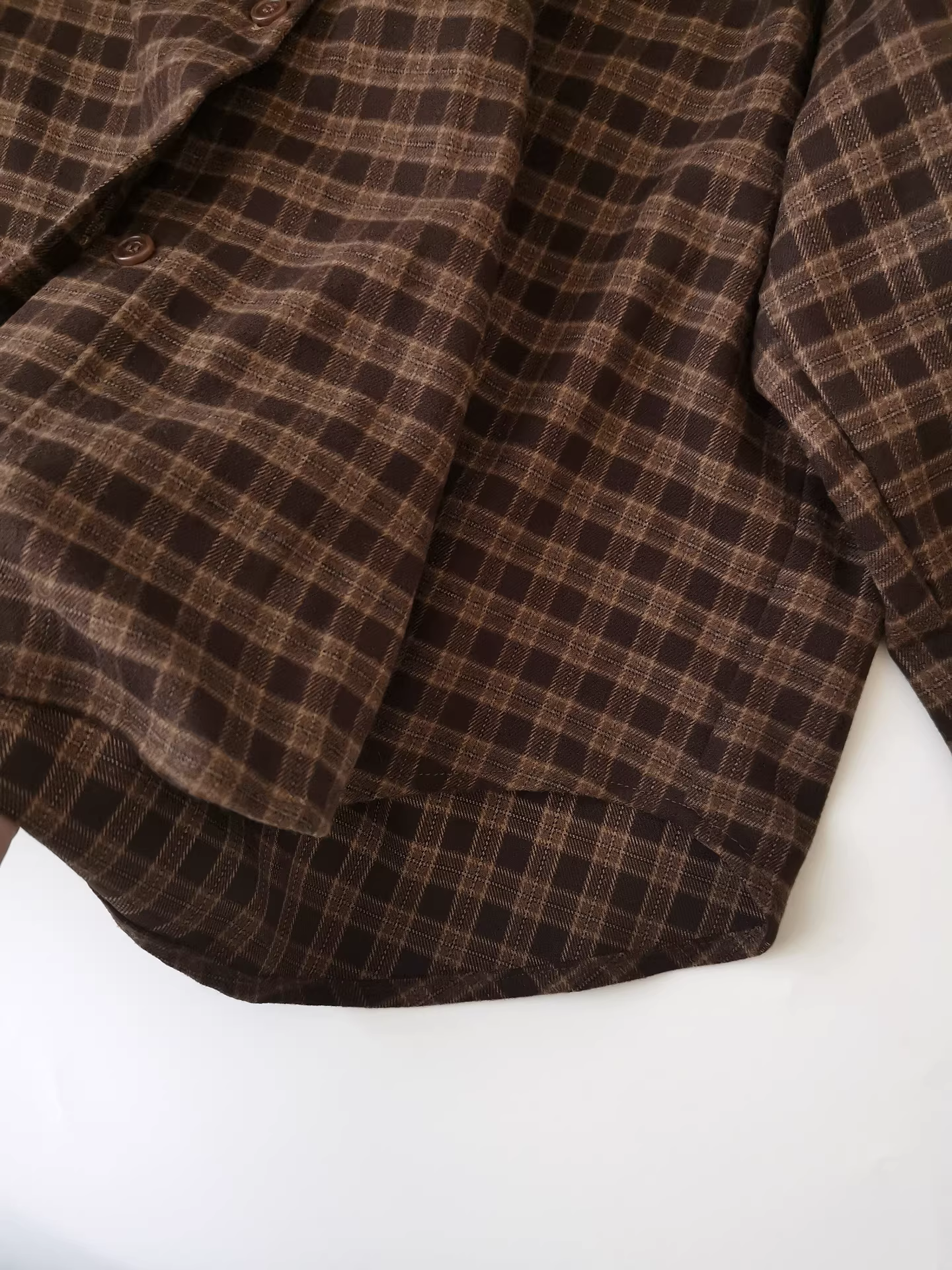 - Áo sơ mi kẻ sọc nâu dài tay dày dặn, dáng rộng, phong cách retro, thoải mái, kiểu Hàn Quốc dành cho nữ