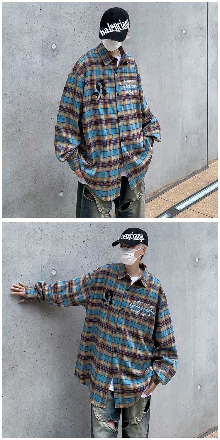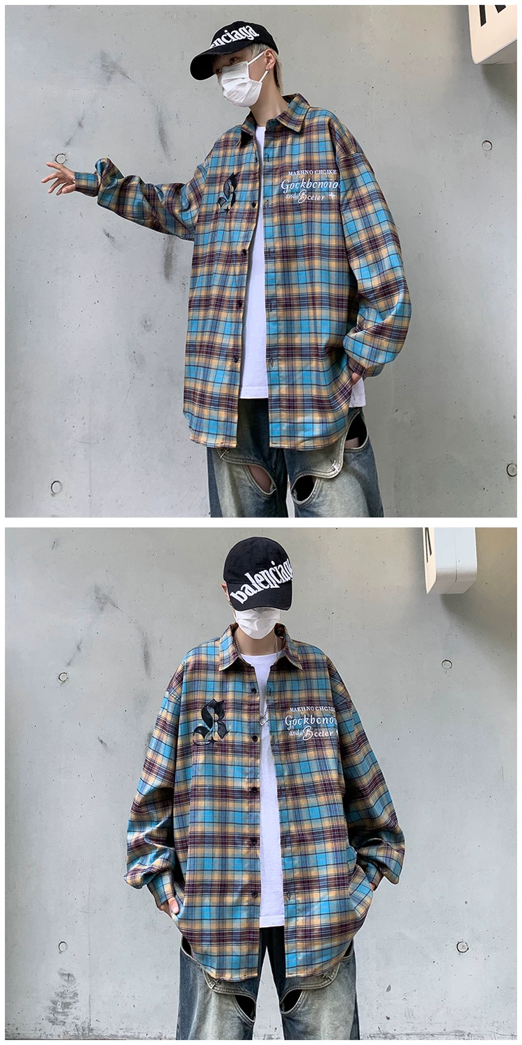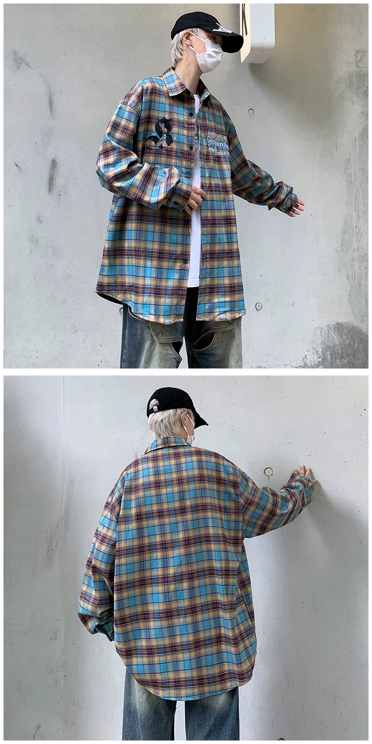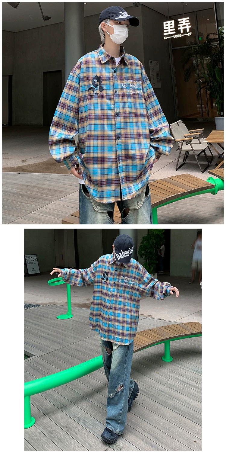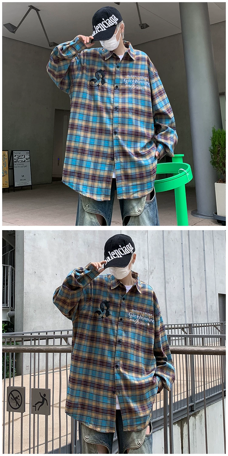 - Áo sơ mi kẻ sọc thêu phong cách Mỹ dành cho nam, áo khoác sơ mi dáng rộng, áo cao cấp thời thượng mùa xuân thu.
