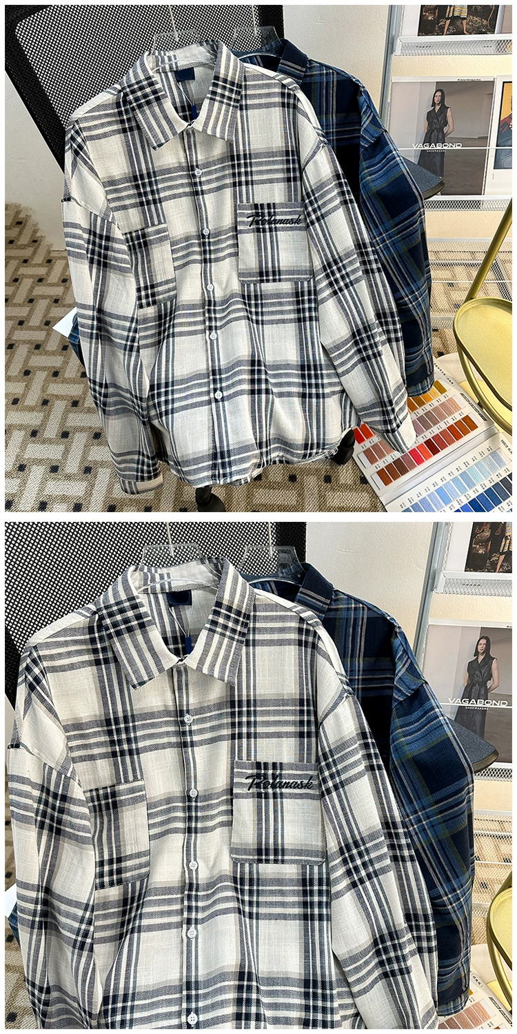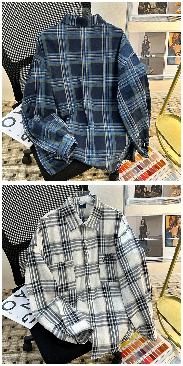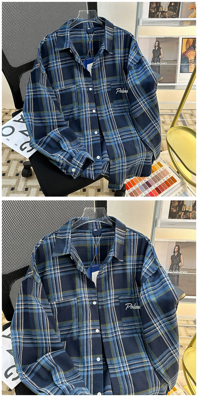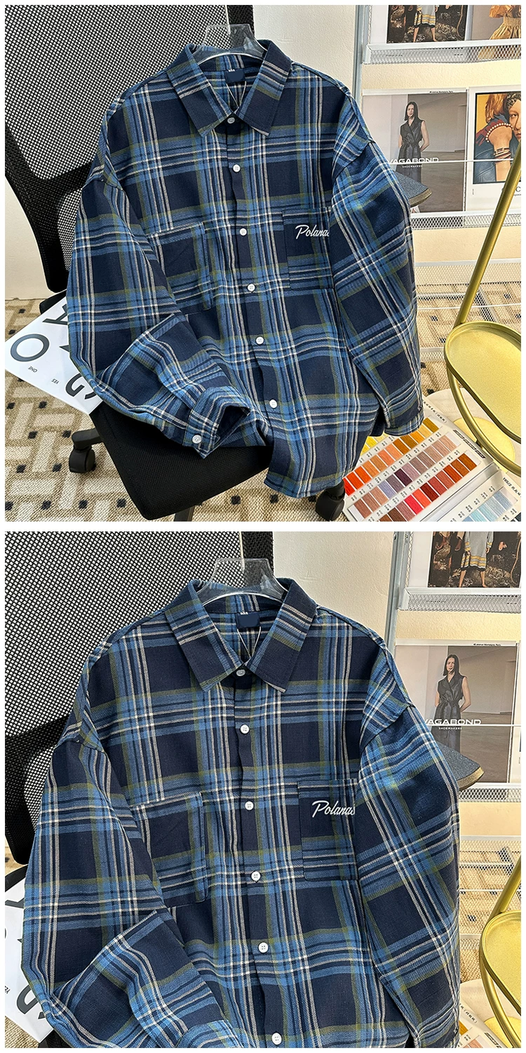 - Áo sơ mi kẻ sọc thương hiệu thời thượng mùa xuân thu dành cho nam, áo sơ mi dài tay dáng rộng đẹp trai, áo khoác cặp đôi phong cách retro Mỹ
