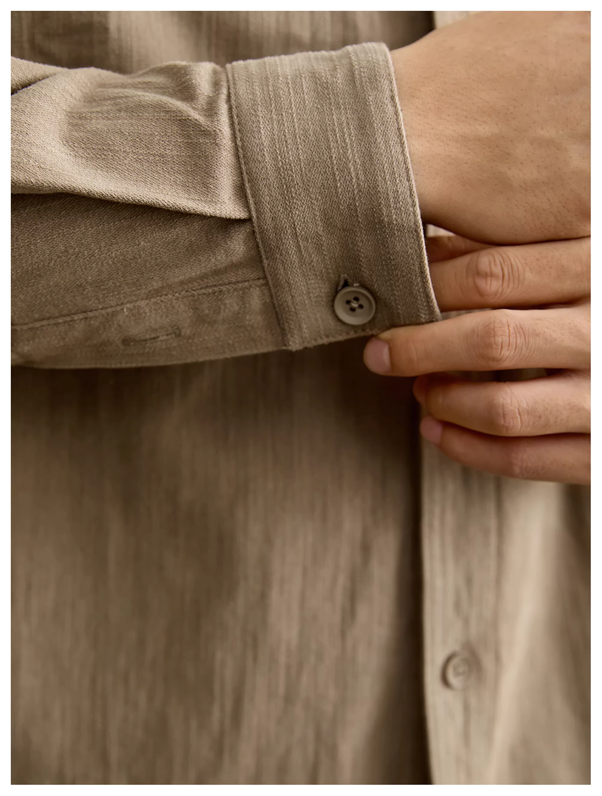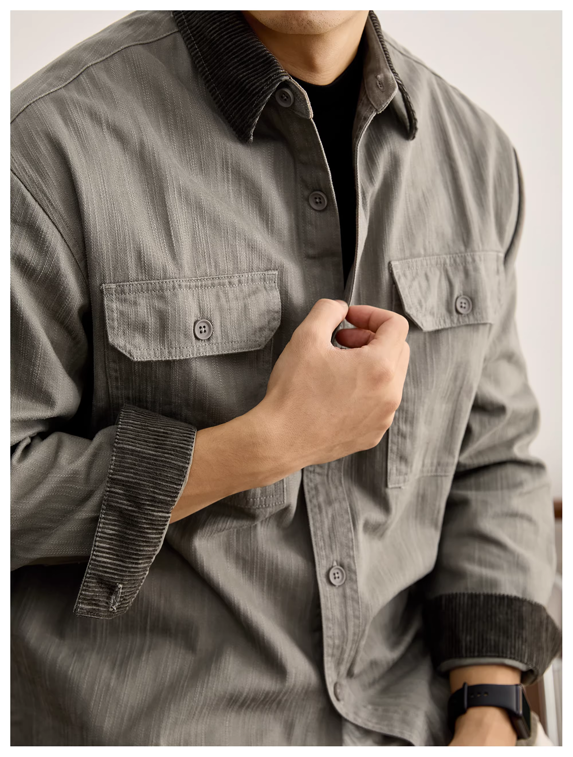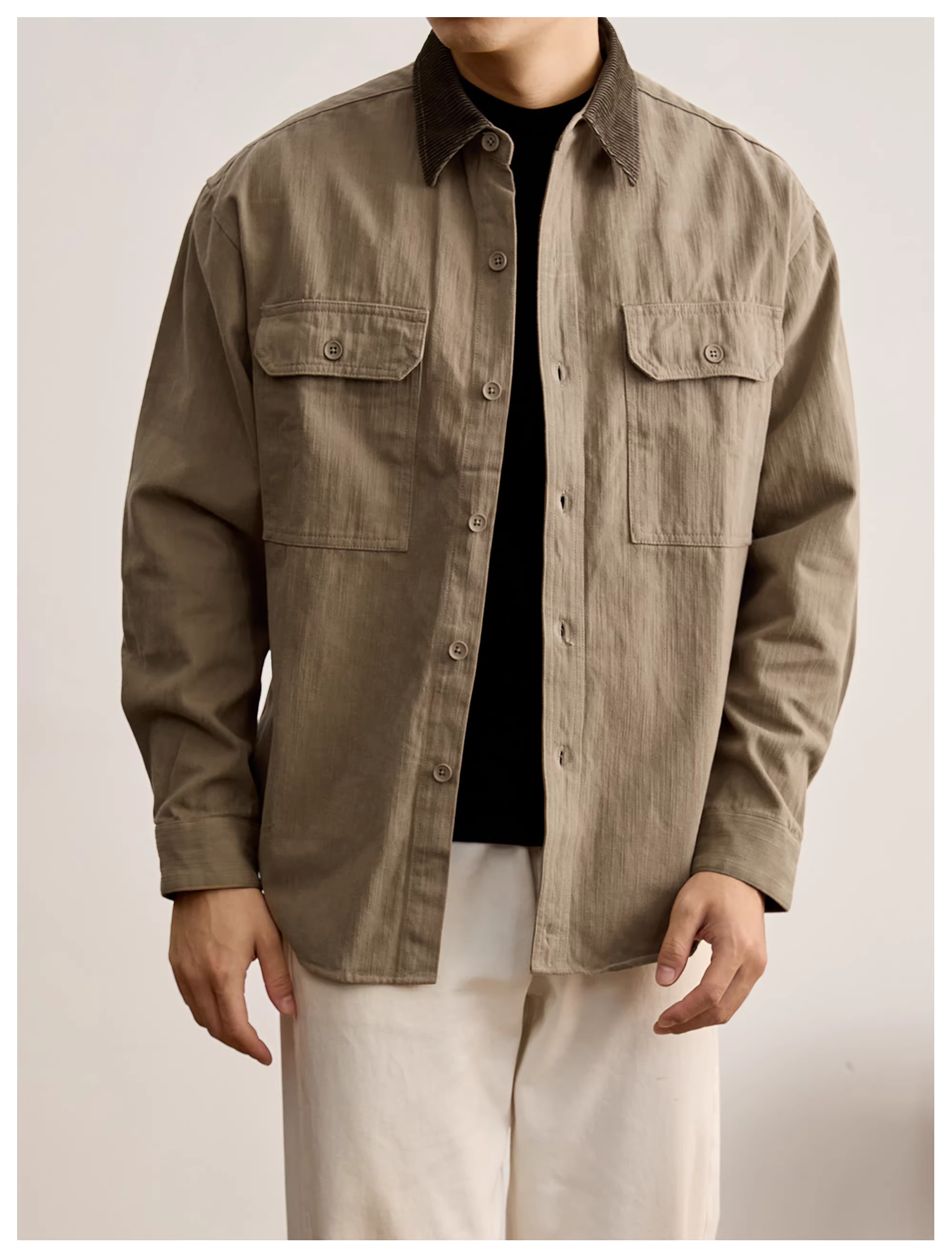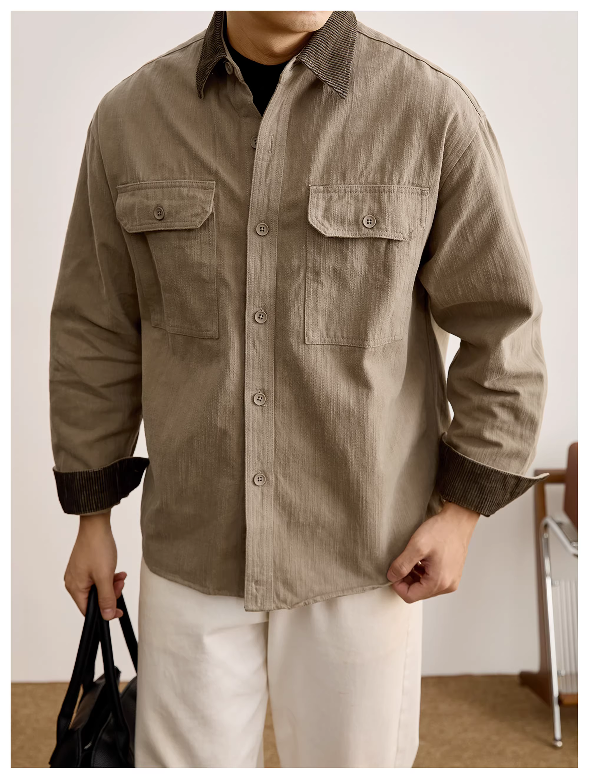 Áo sơ mi làm việc chất liệu cotton đã qua xử lý kiểu retro LUUD Amekaji, chất liệu vải bố, cổ áo phối vải, kiểu dáng patchwork, 280g