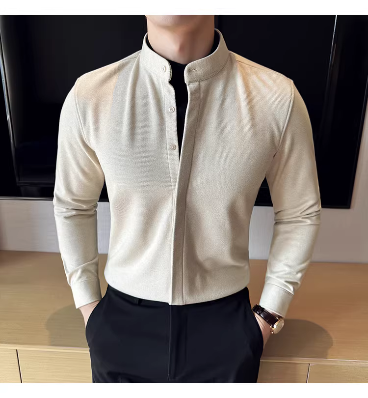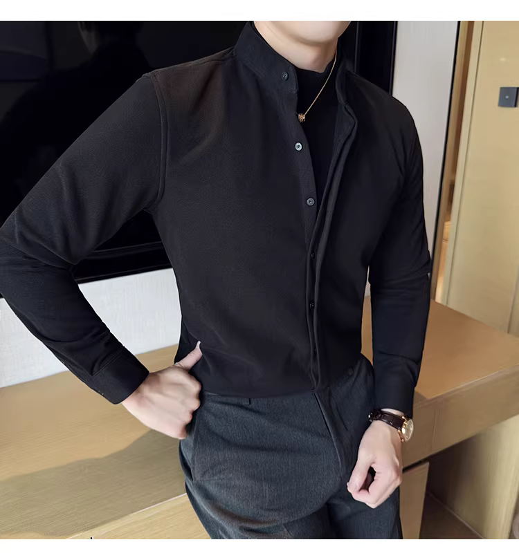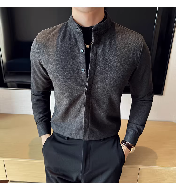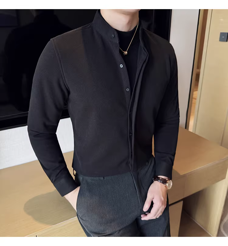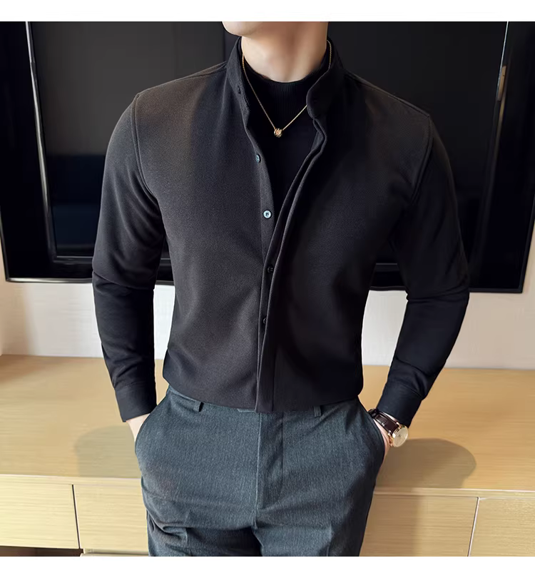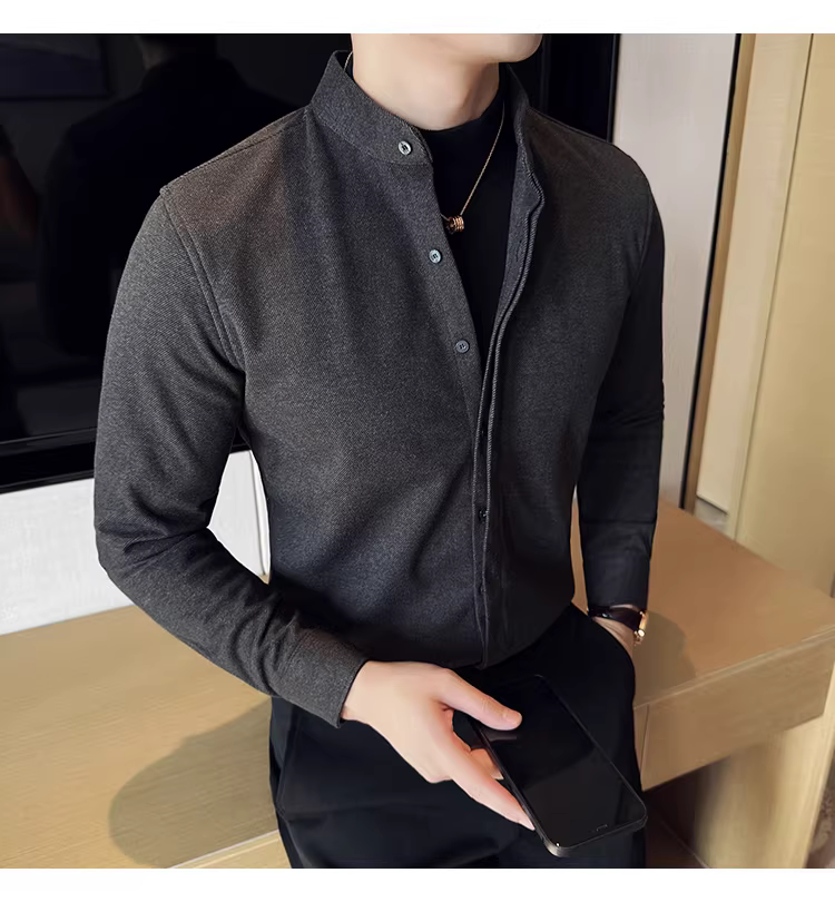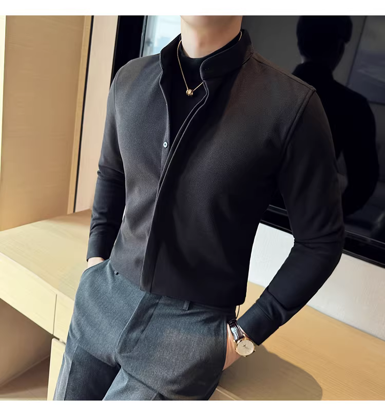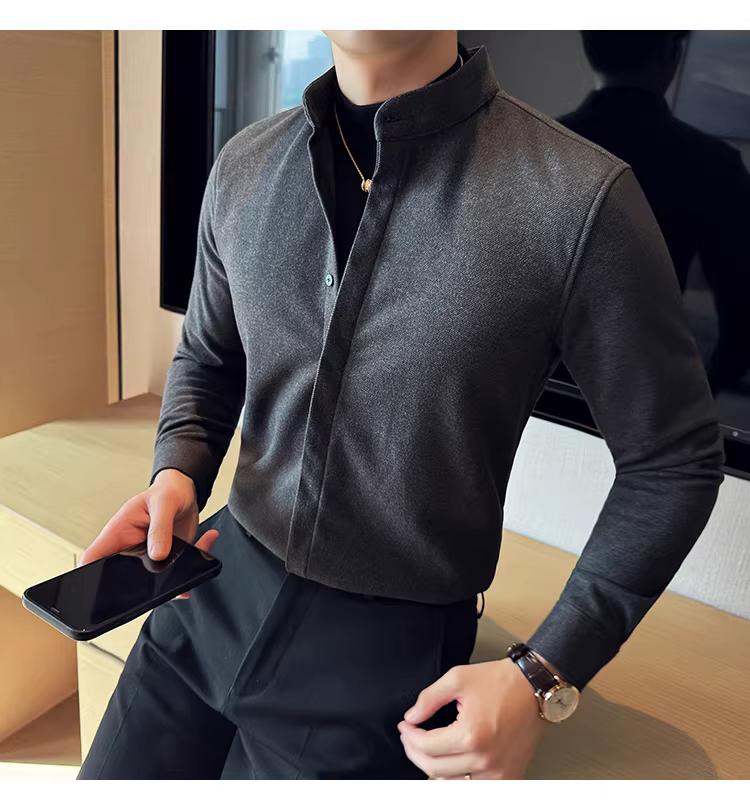- Áo sơ mi len cổ đứng giả hai mảnh dành cho nam, dài tay, dày dặn cho mùa thu đông, ấm áp, áo sơ mi len công sở cao cấp.