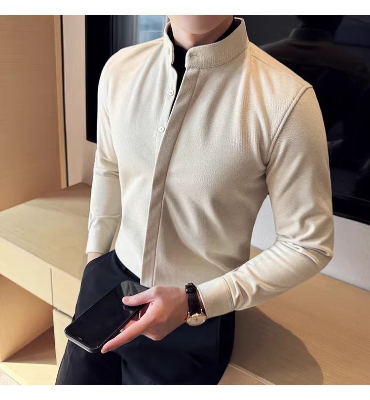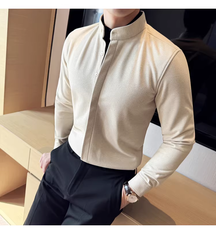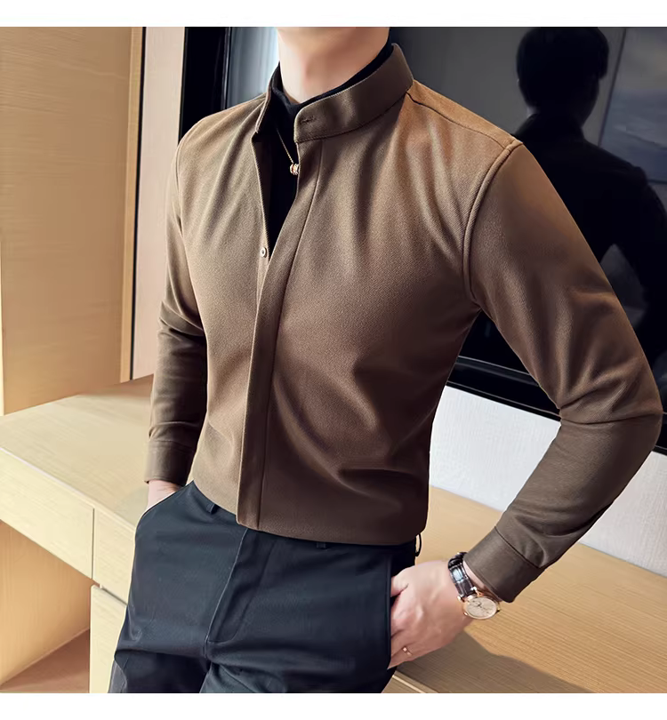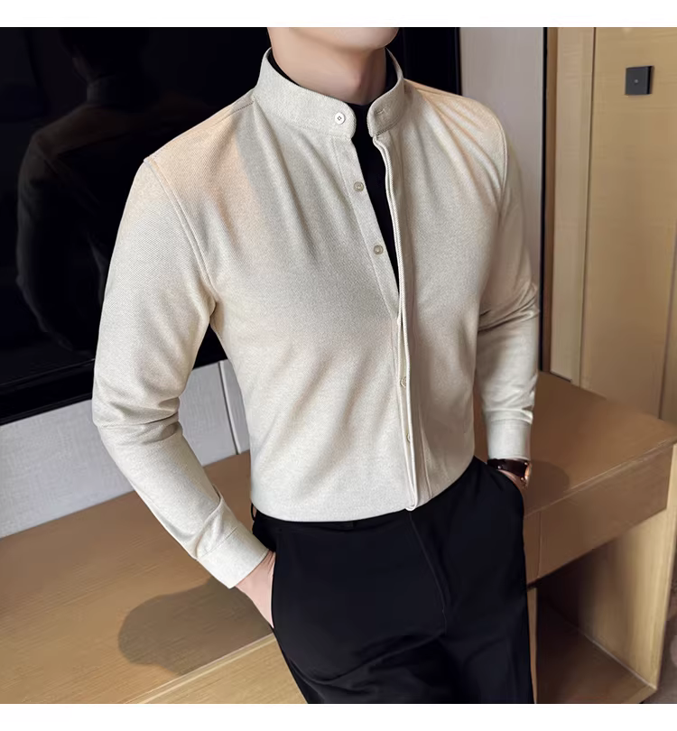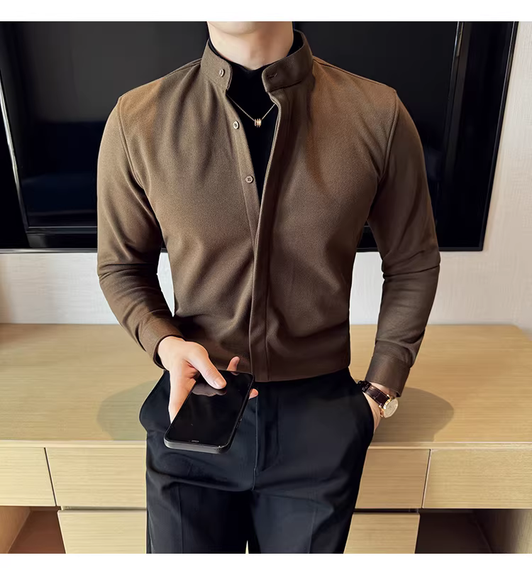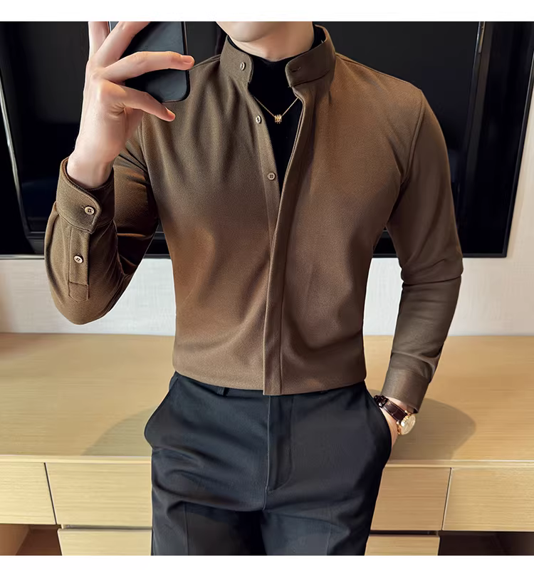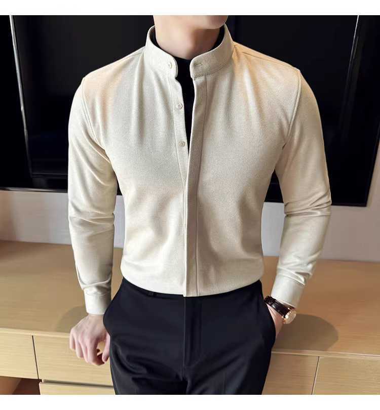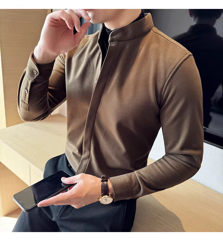 - Áo sơ mi len cổ đứng giả hai mảnh dành cho nam, dài tay, dày dặn cho mùa thu đông, ấm áp, áo sơ mi len công sở cao cấp.
