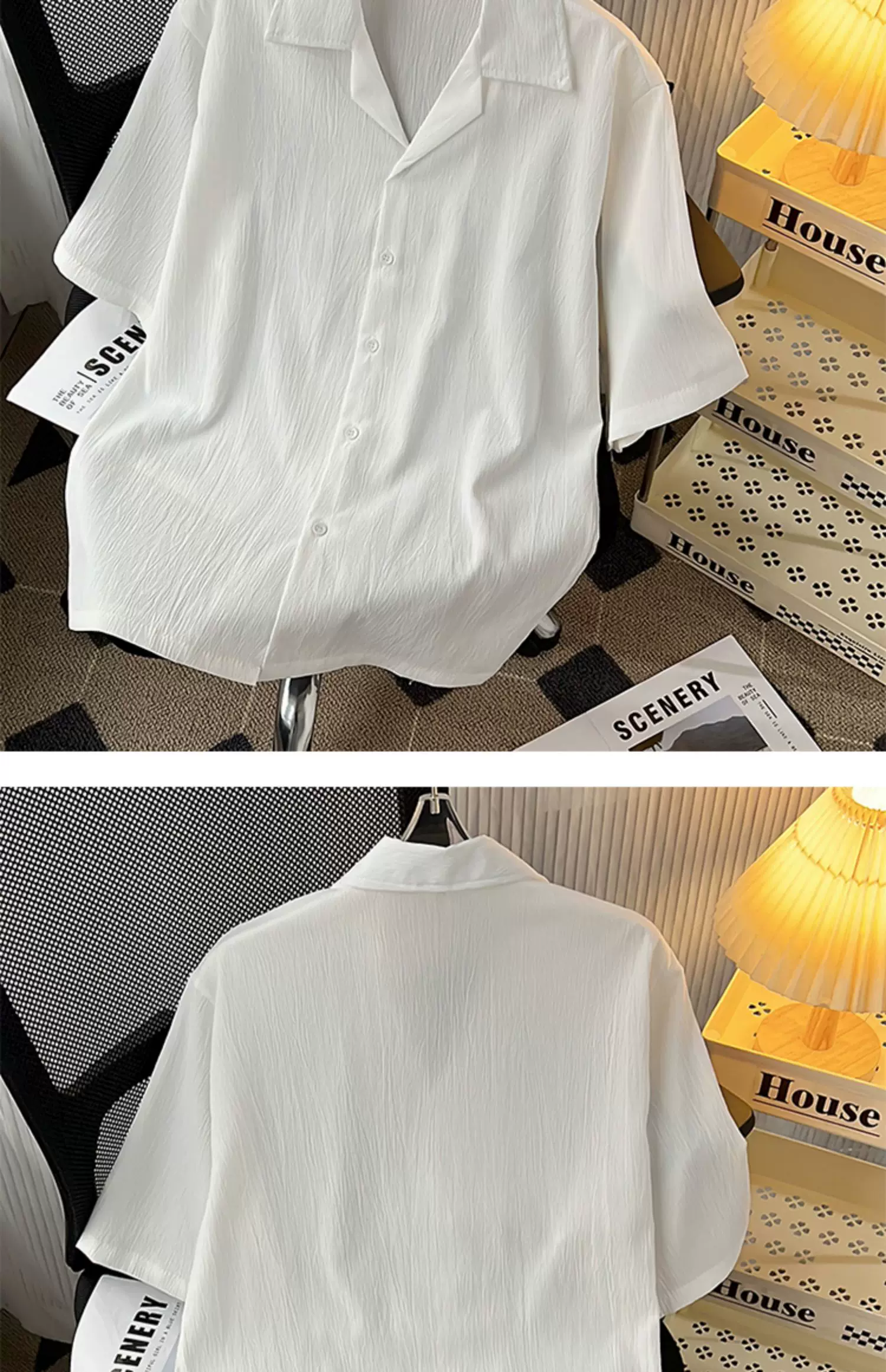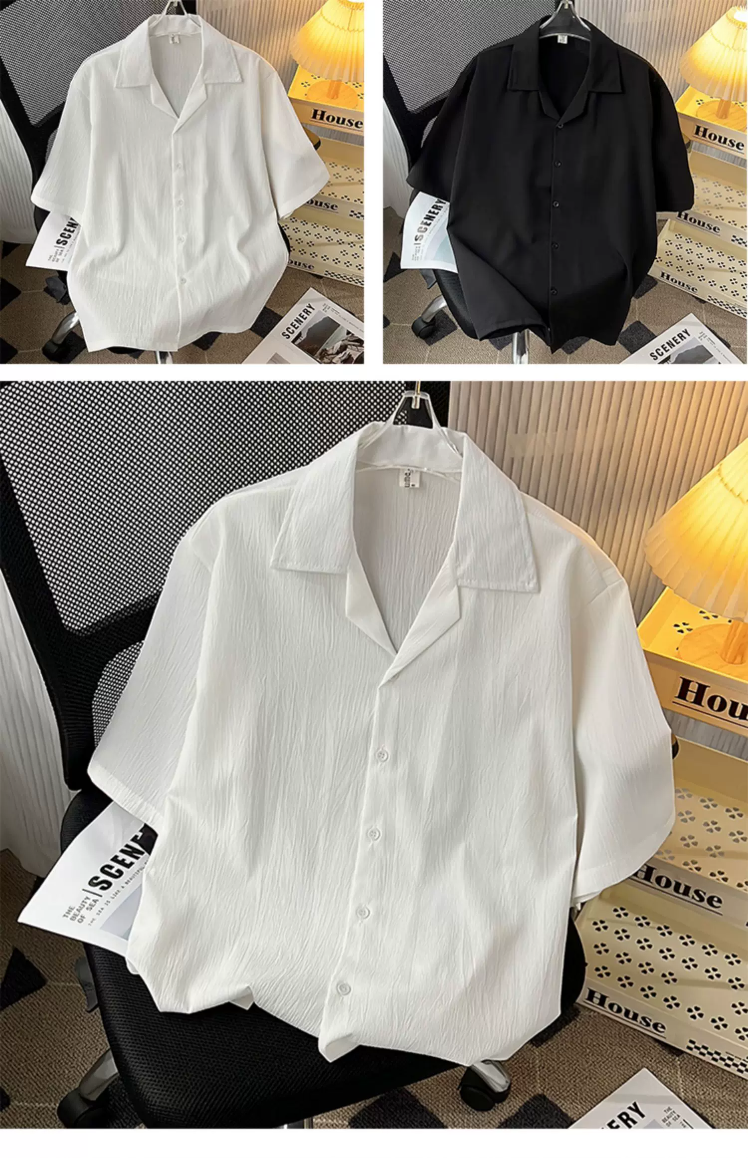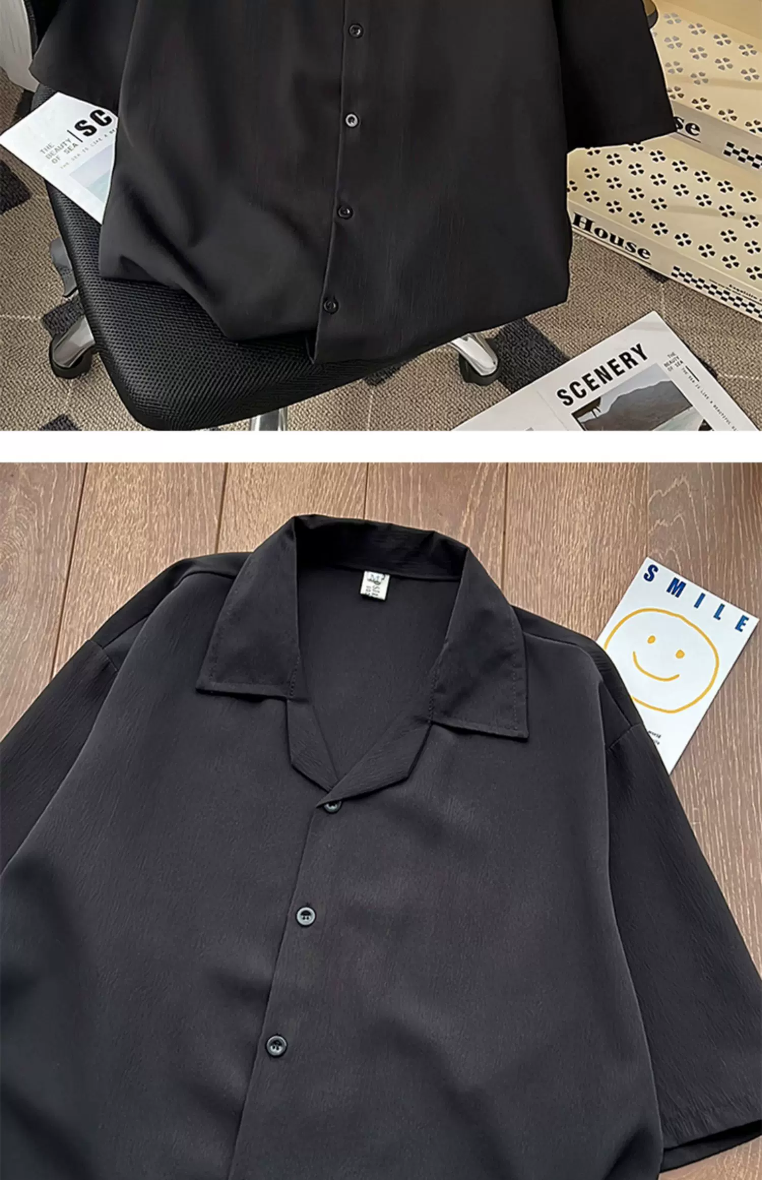 - Áo sơ mi lụa băng cao cấp dành cho nam, tay ngắn, dáng rộng, áo sơ mi cổ Cuba phong cách Mỹ, trang phục cặp đôi mùa hè hợp thời trang.