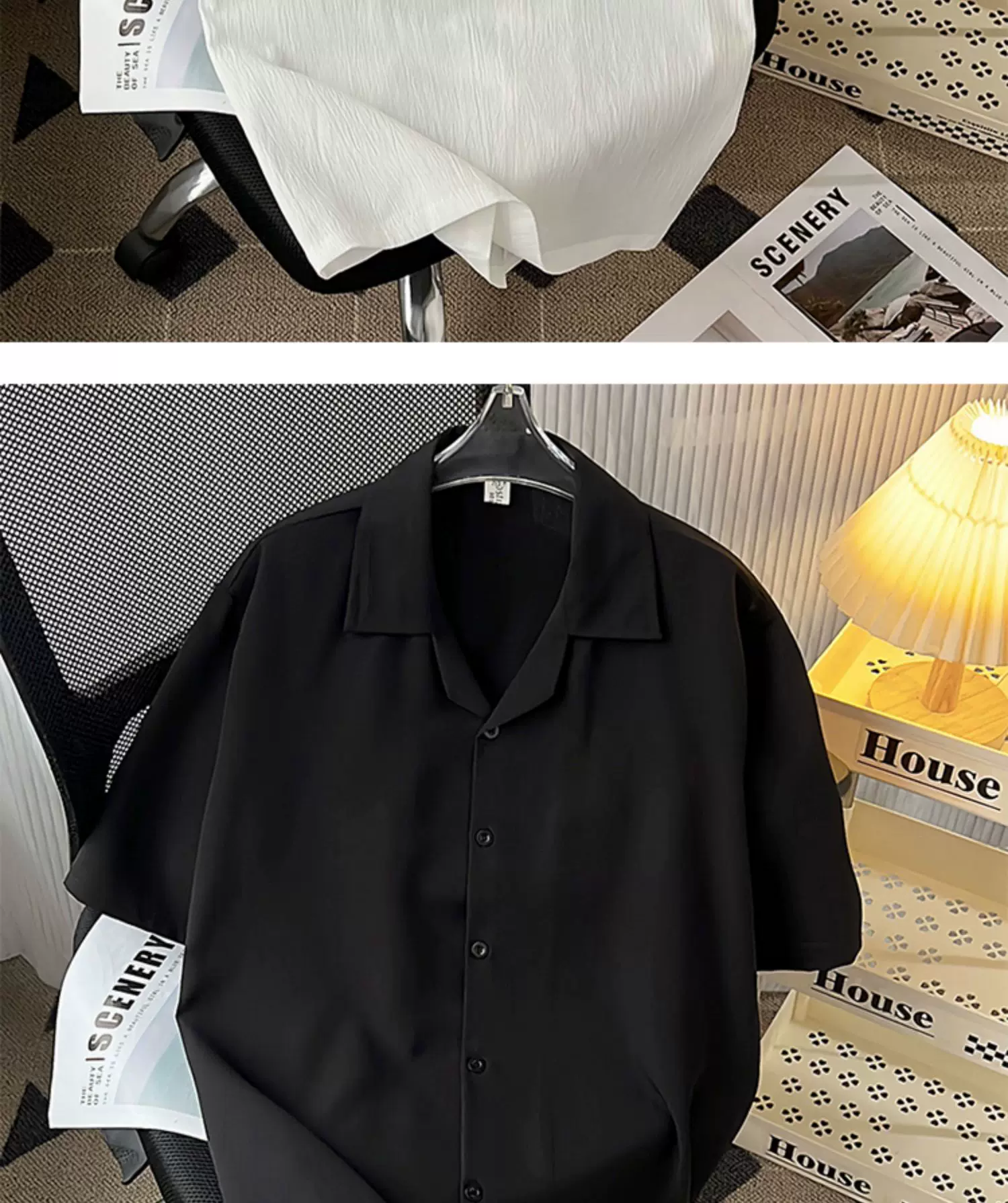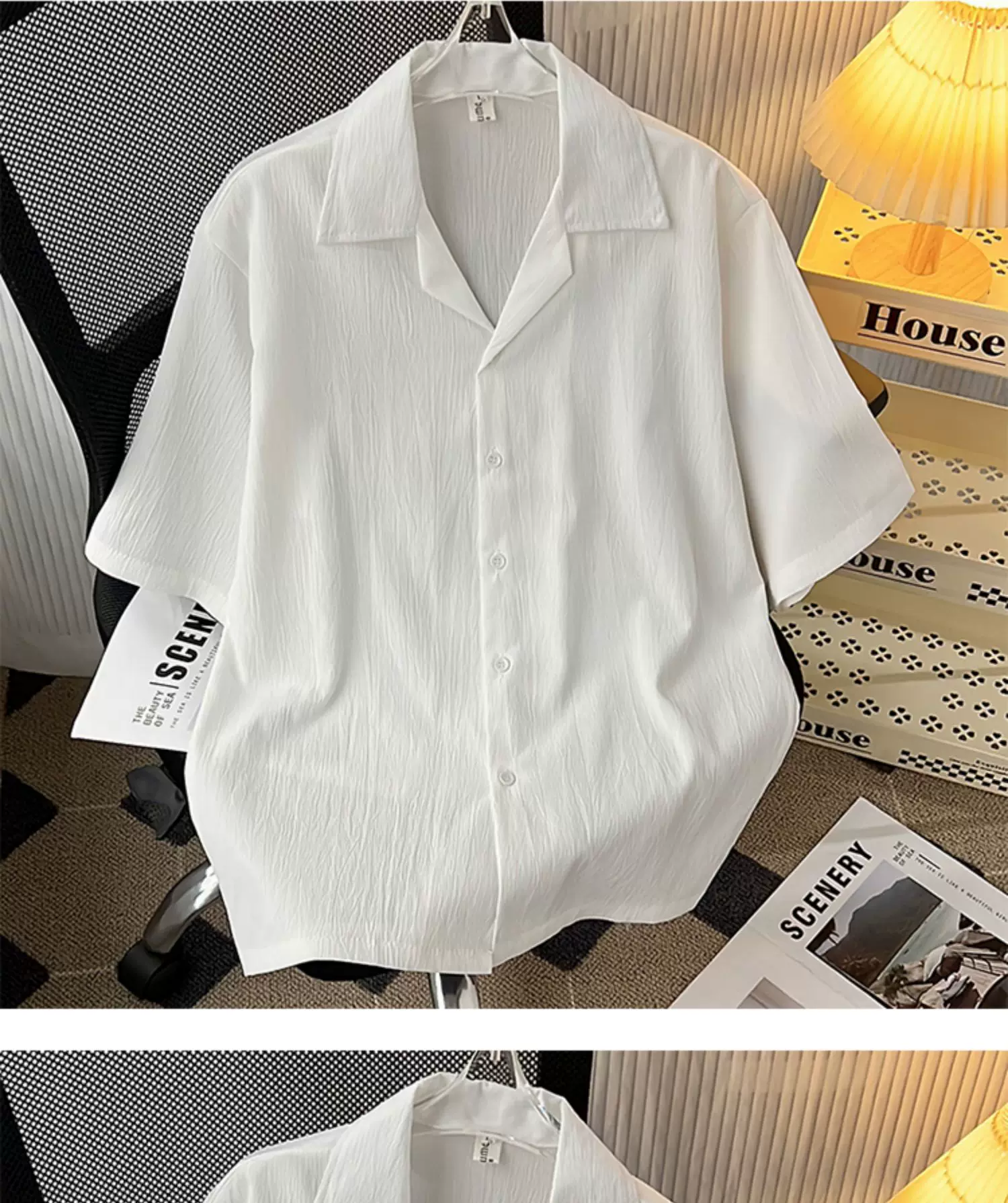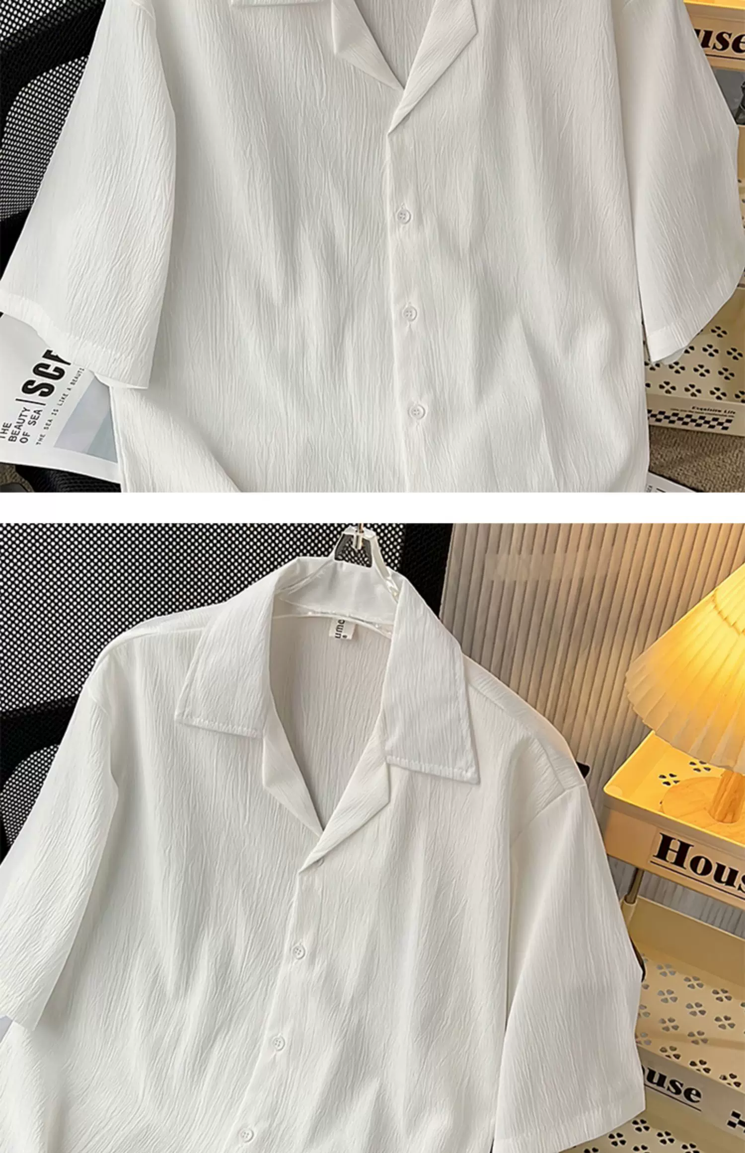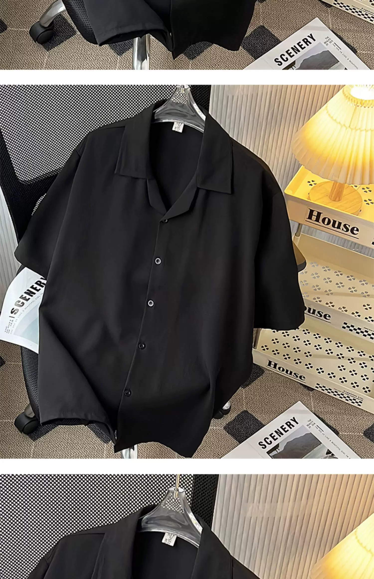 - Áo sơ mi lụa băng cao cấp dành cho nam, tay ngắn, dáng rộng, áo sơ mi cổ Cuba phong cách Mỹ, trang phục cặp đôi mùa hè hợp thời trang.