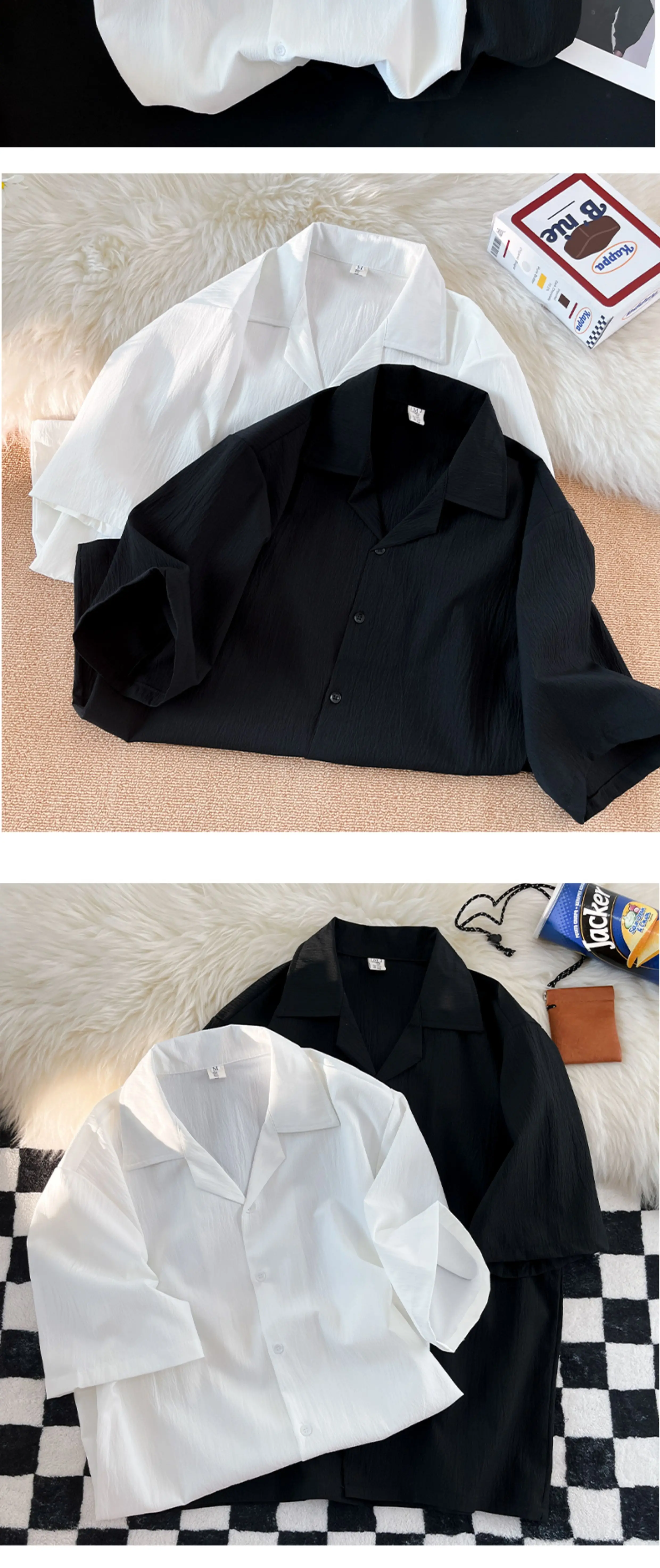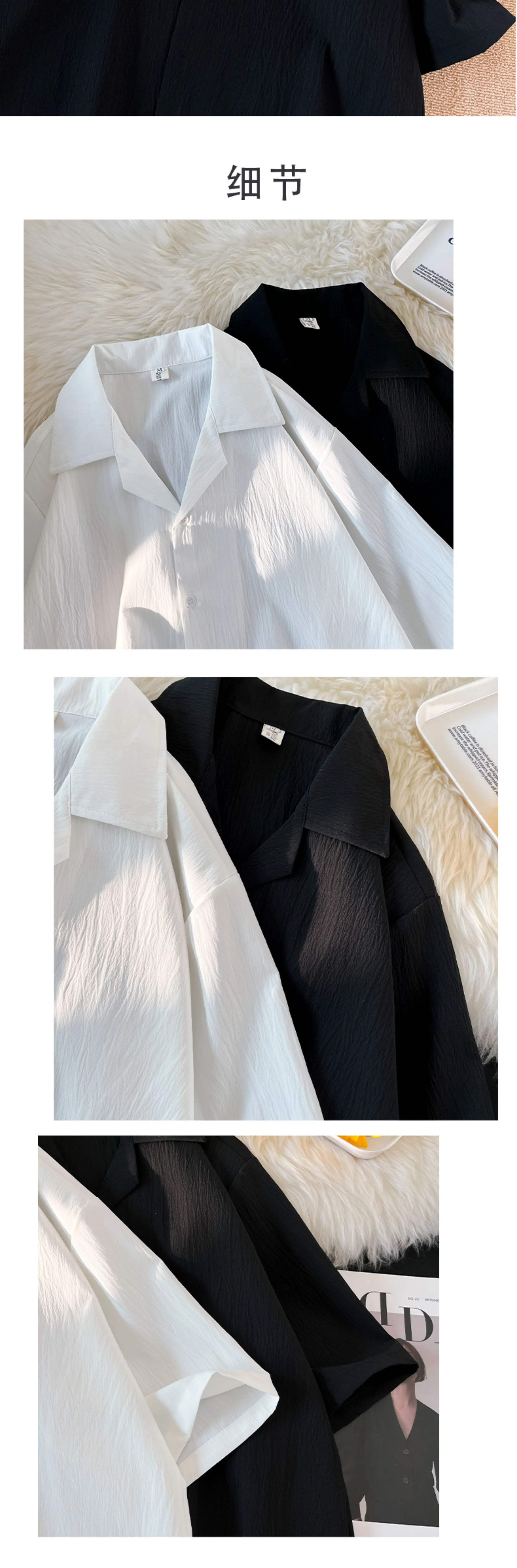- Áo sơ mi lụa xếp ly nam tay ngắn kiểu Nhật dáng rộng cổ Cuba thiết kế hợp thời trang mùa hè mát mẻ