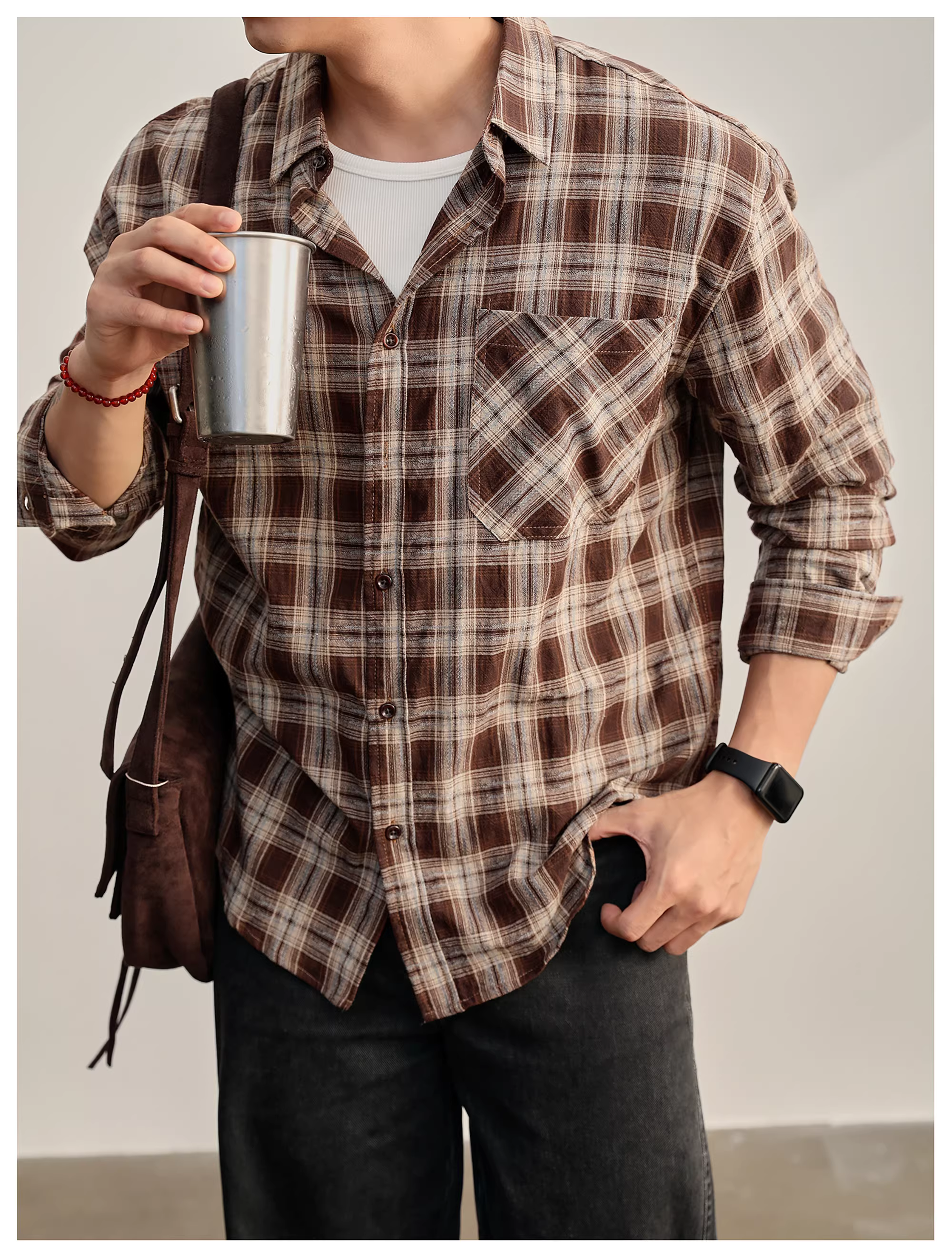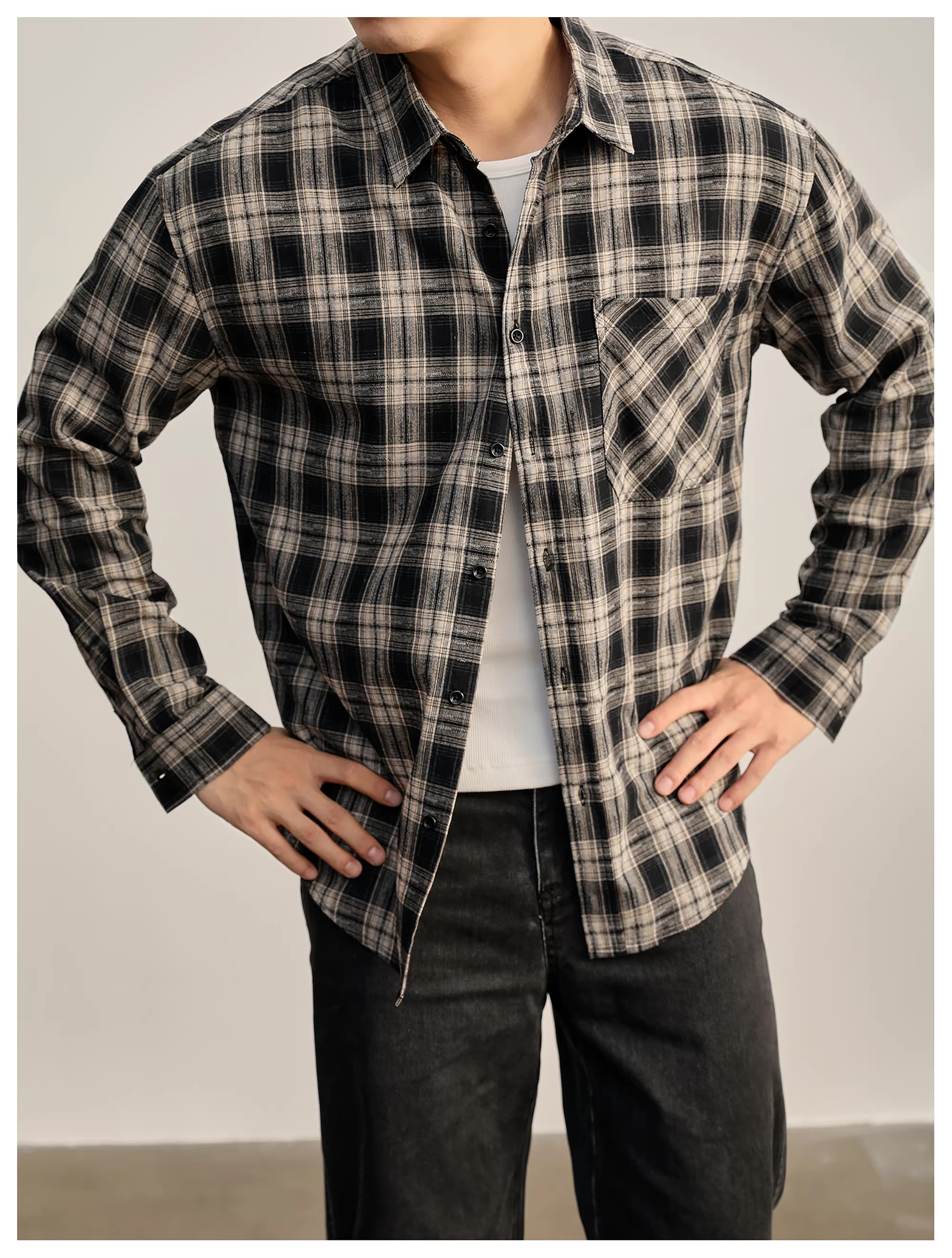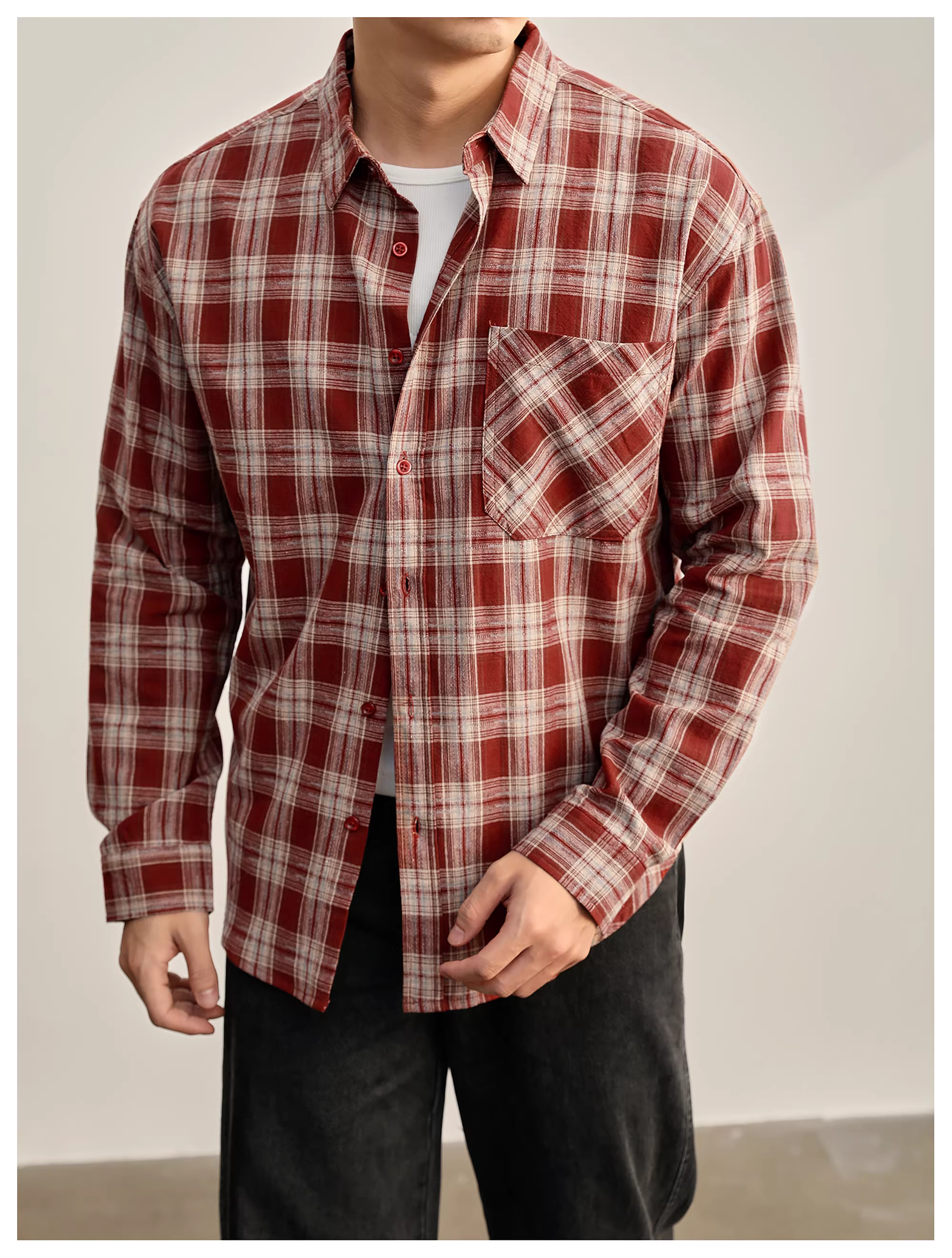 Áo sơ mi LUUD Cleanfit kiểu Mỹ cổ điển kẻ sọc 100% cotton nam mùa thu áo sơ mi dài tay kẻ sọc tương phản