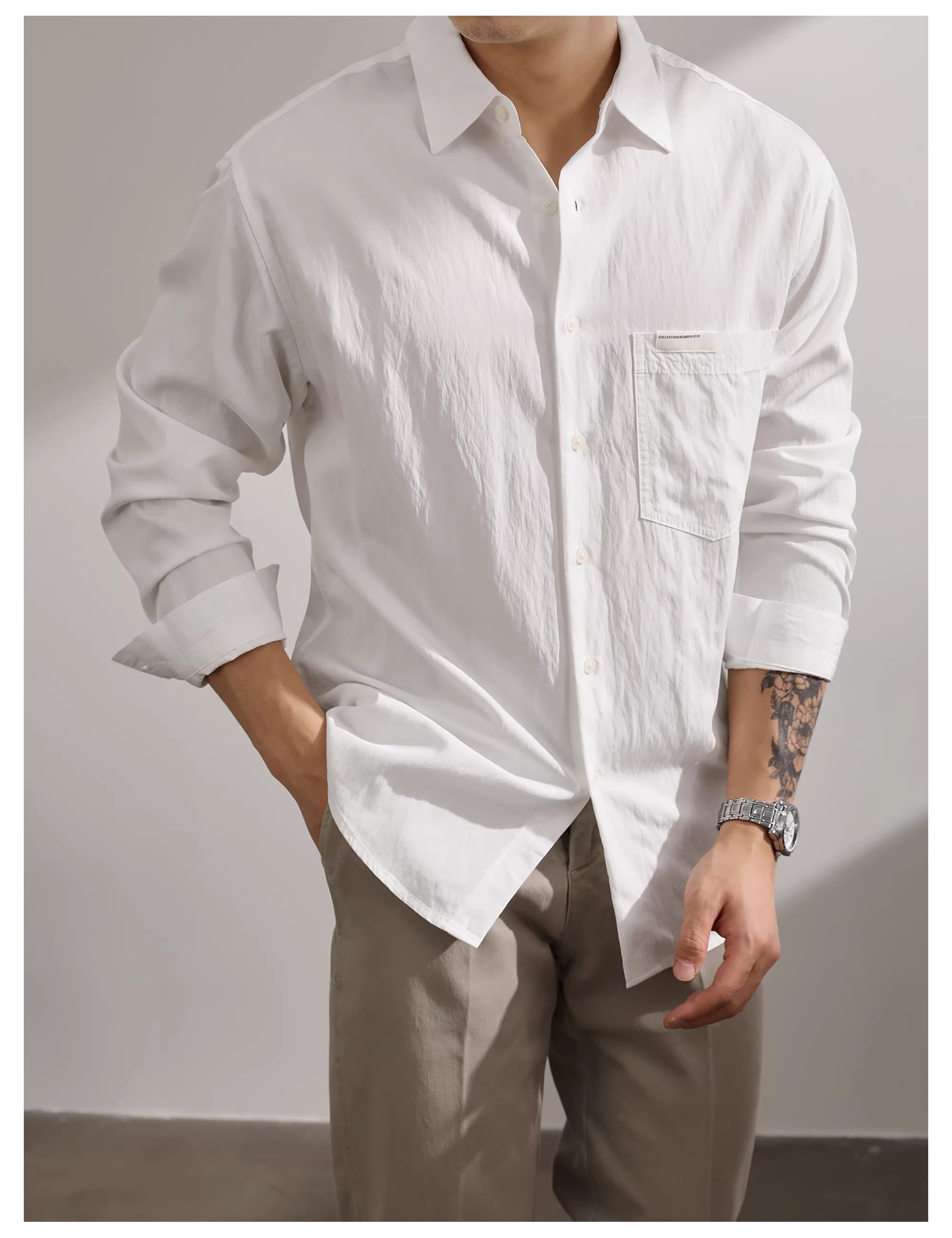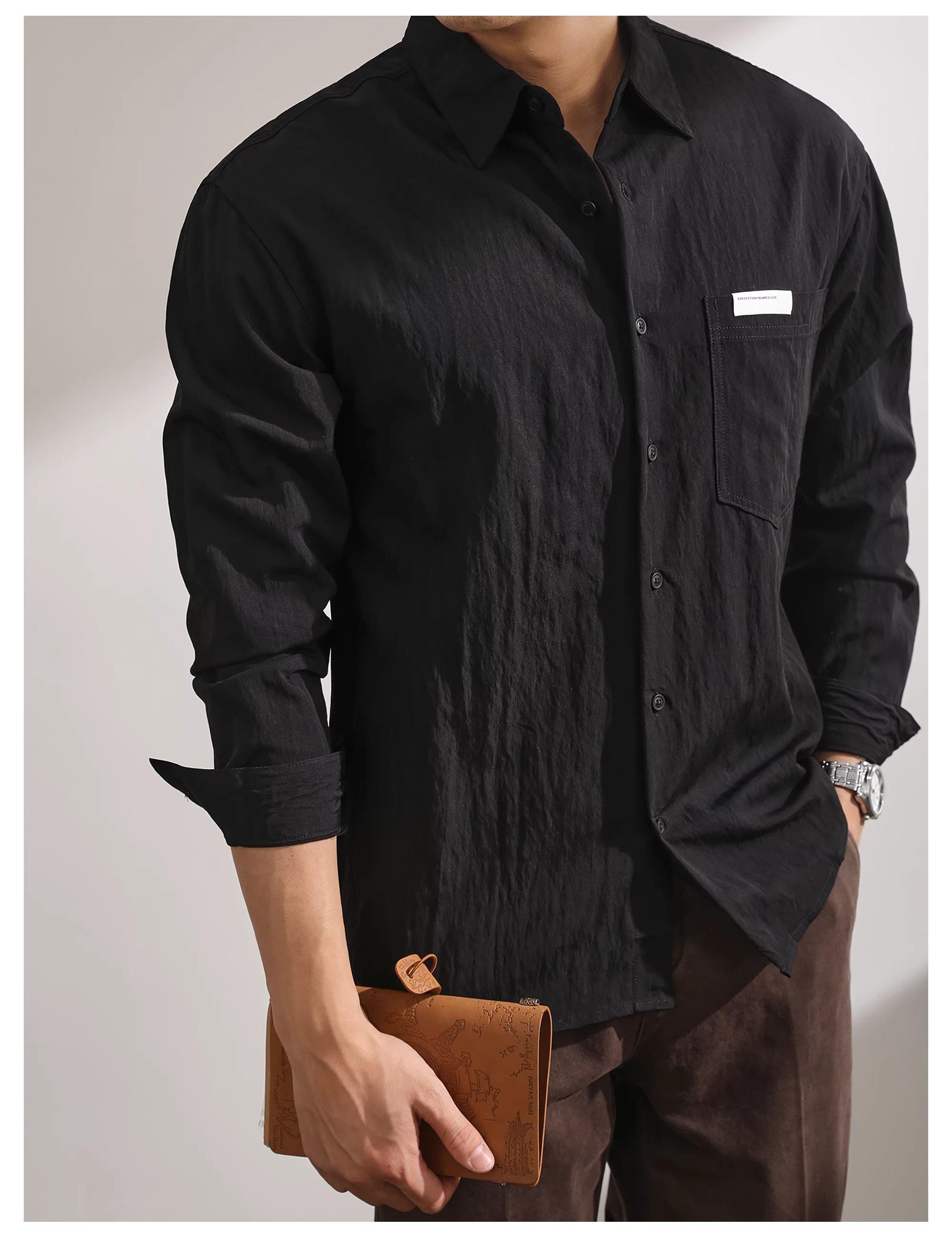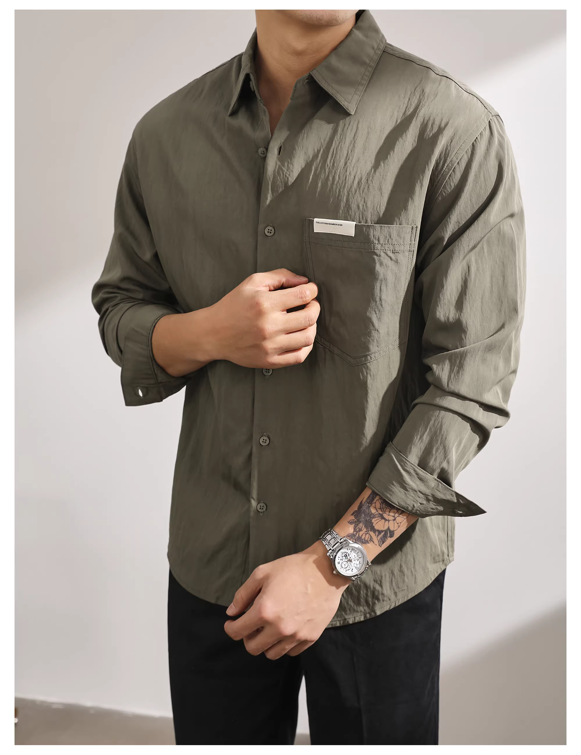 Áo sơ mi nam cao cấp LUUD, áo sơ mi dáng dài hợp thời trang mùa thu, áo đơn lớp cổ bẻ đơn giản, giản dị