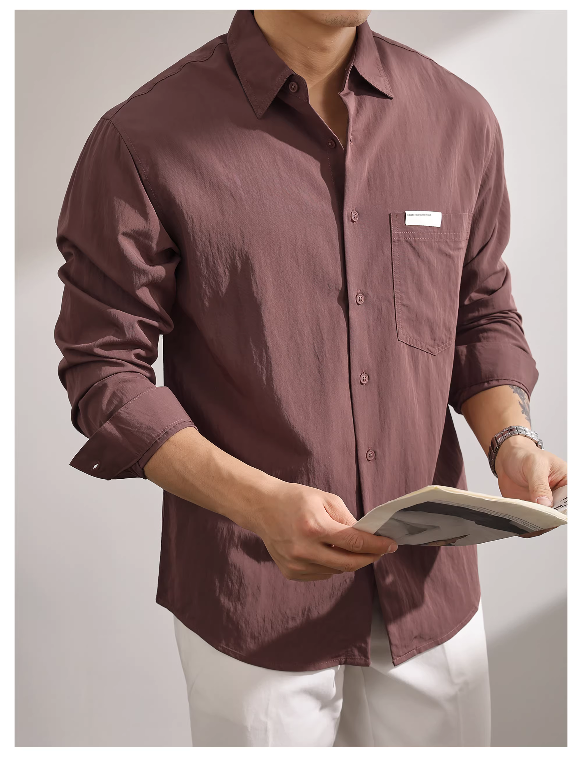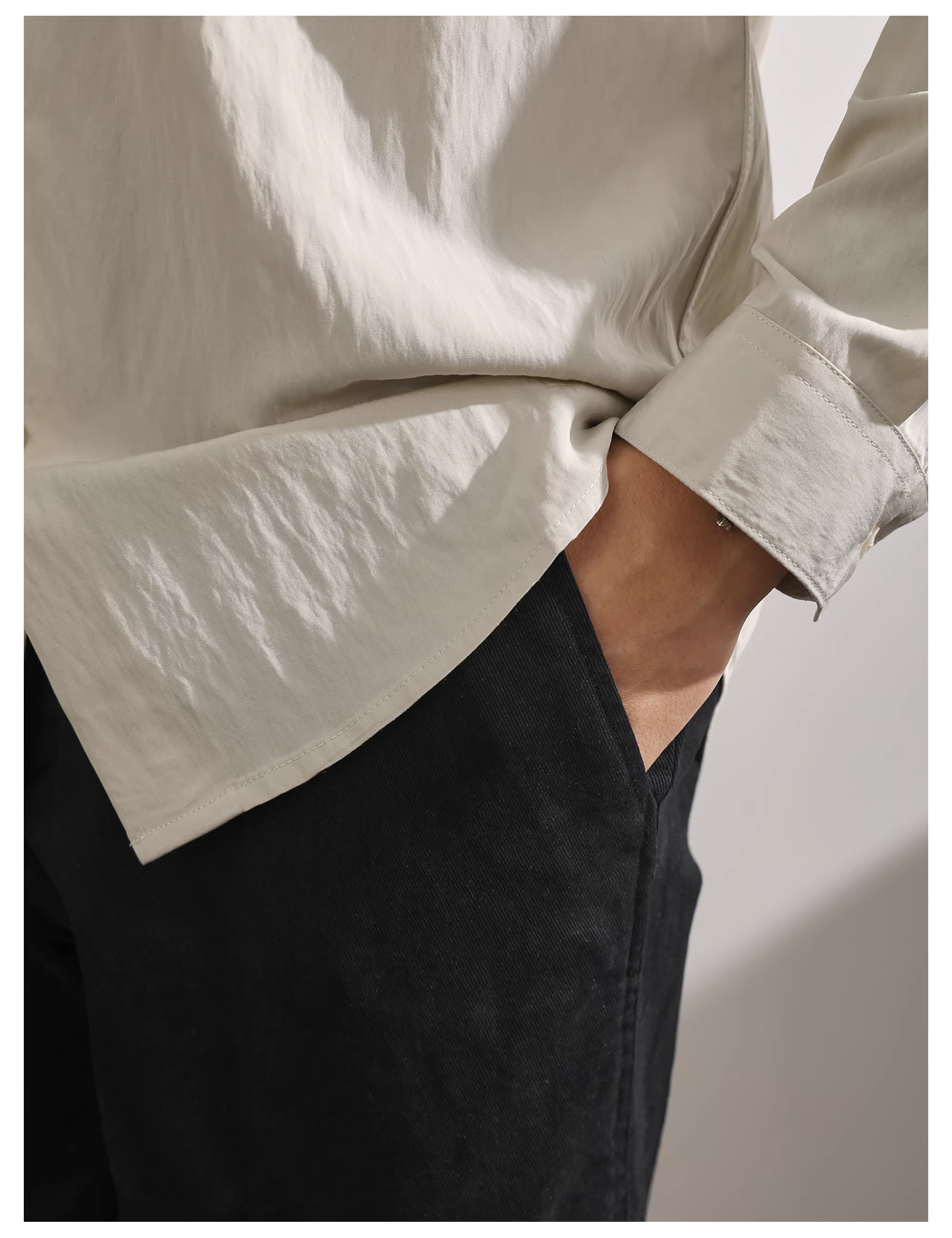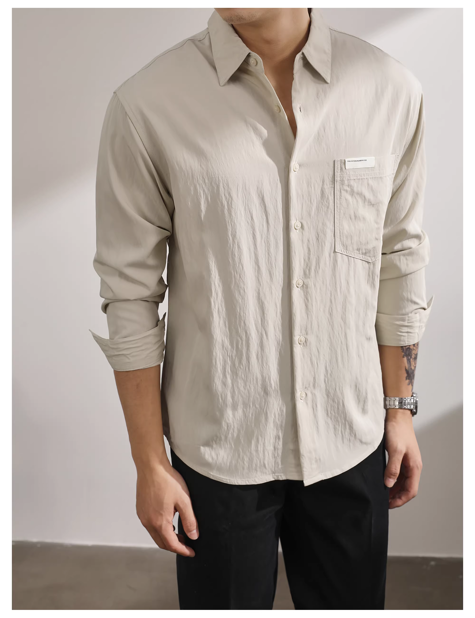 Áo sơ mi nam cao cấp LUUD, áo sơ mi dáng dài hợp thời trang mùa thu, áo đơn lớp cổ bẻ đơn giản, giản dị