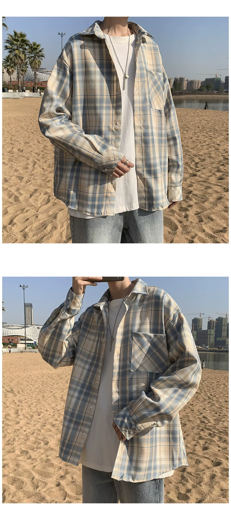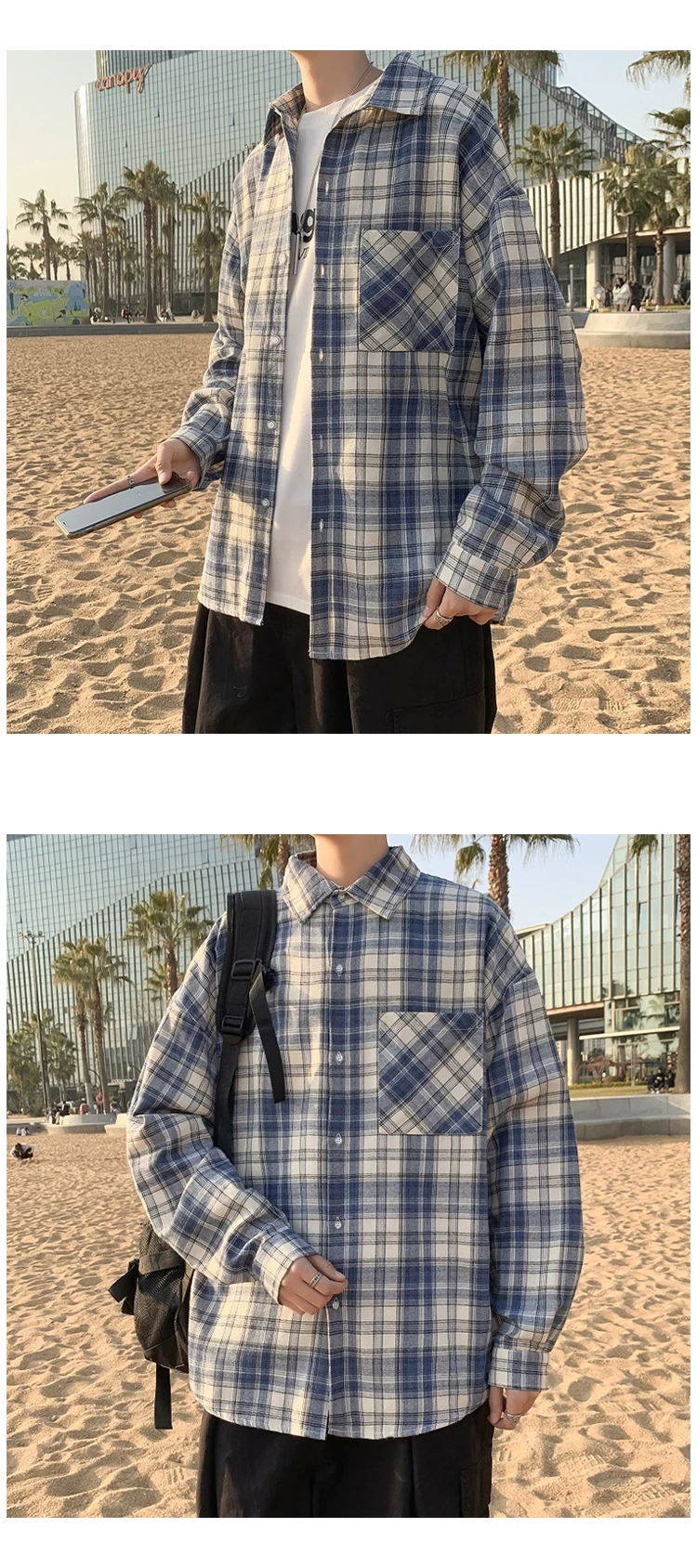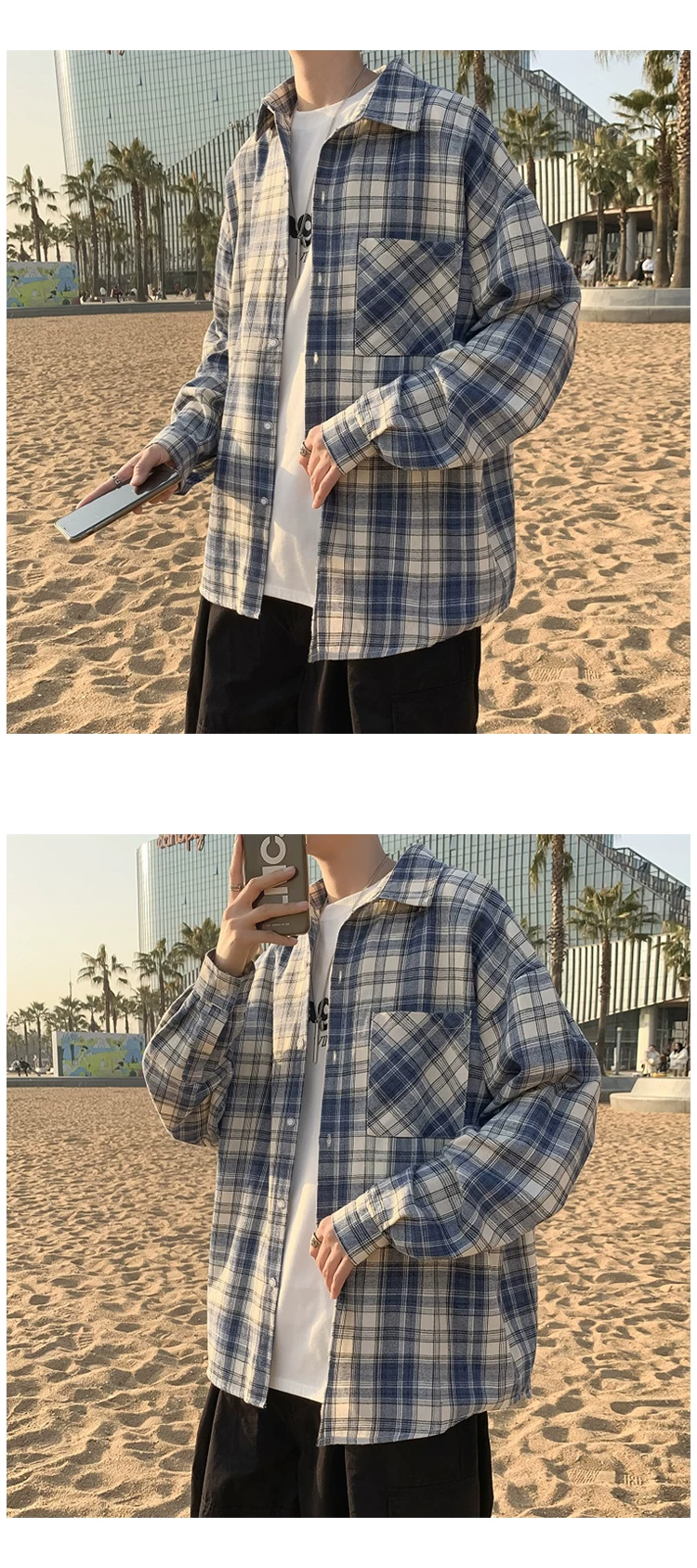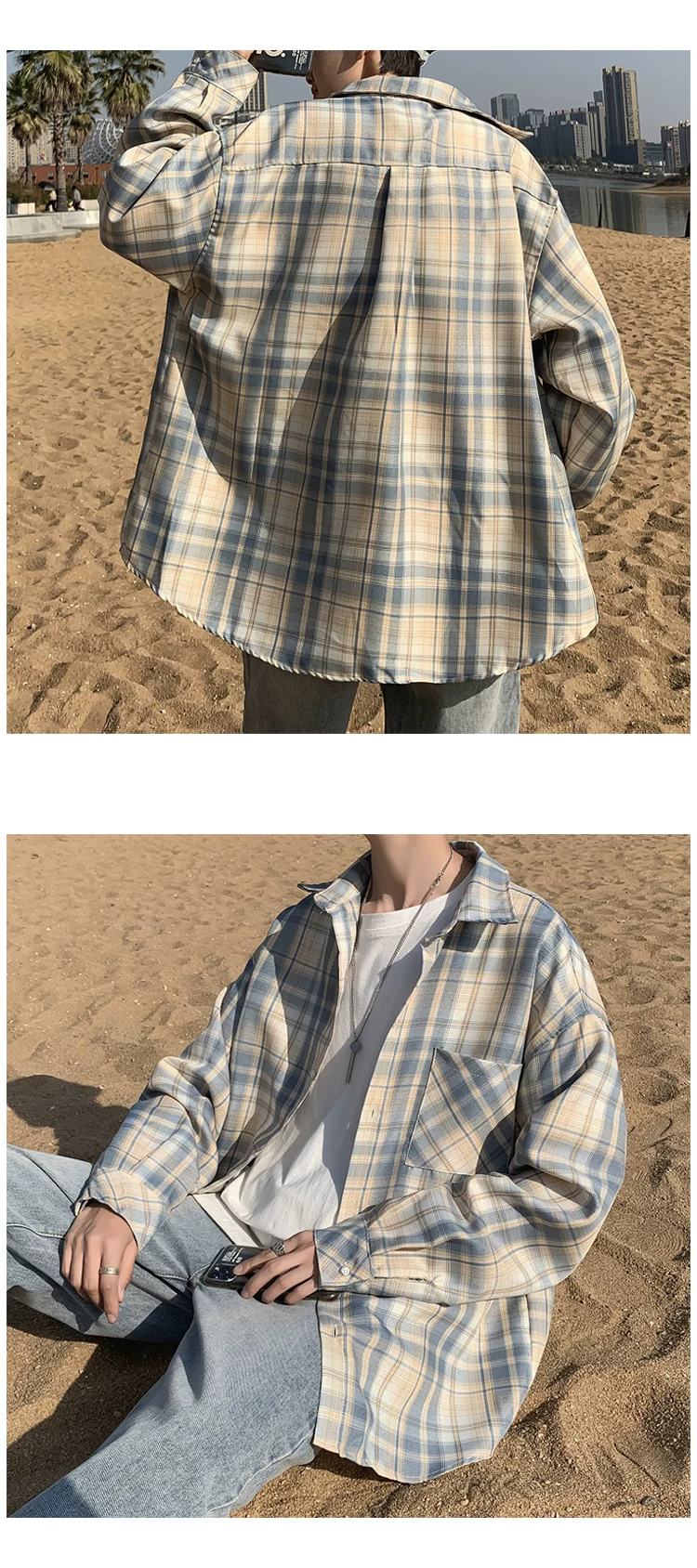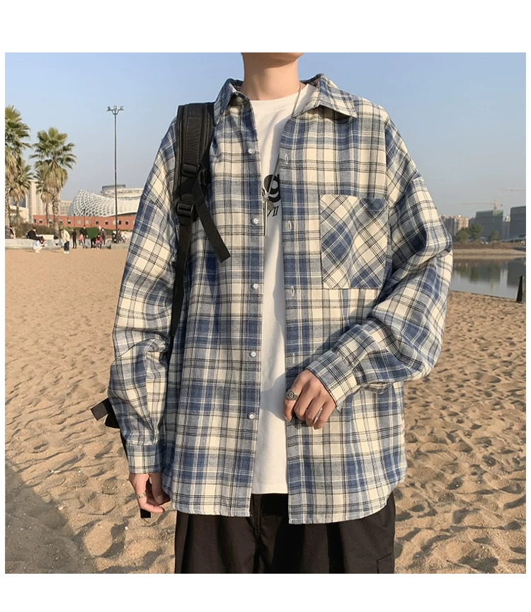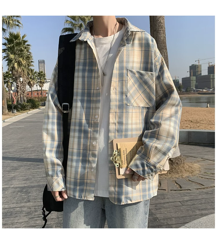 - Áo sơ mi nam dài tay mùa xuân thu, áo sơ mi kẻ sọc phong cách Hồng Kông, áo khoác dáng rộng phong cách Hàn Quốc thời thượng.
