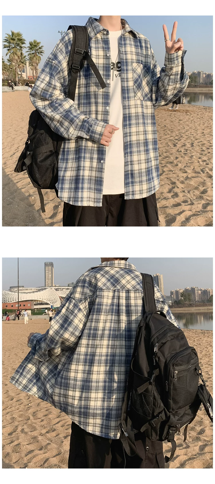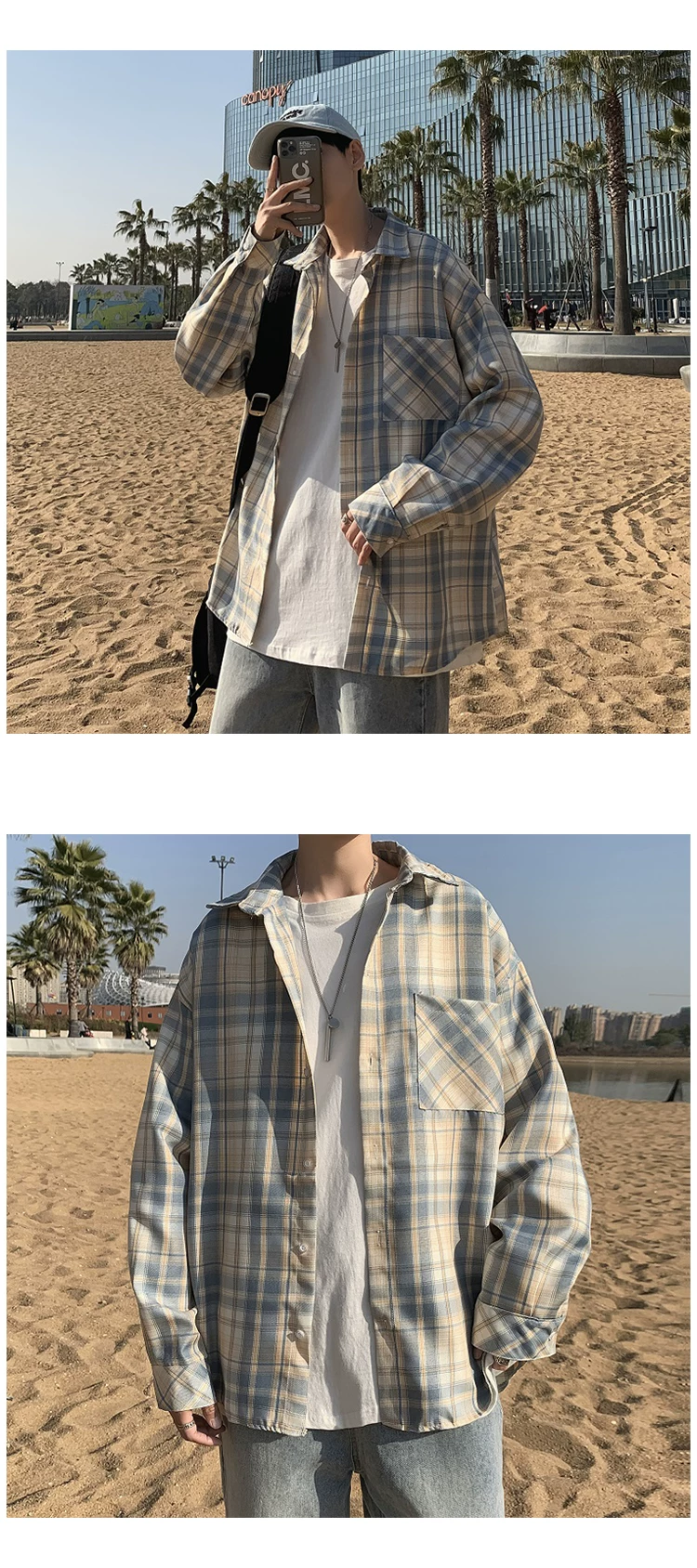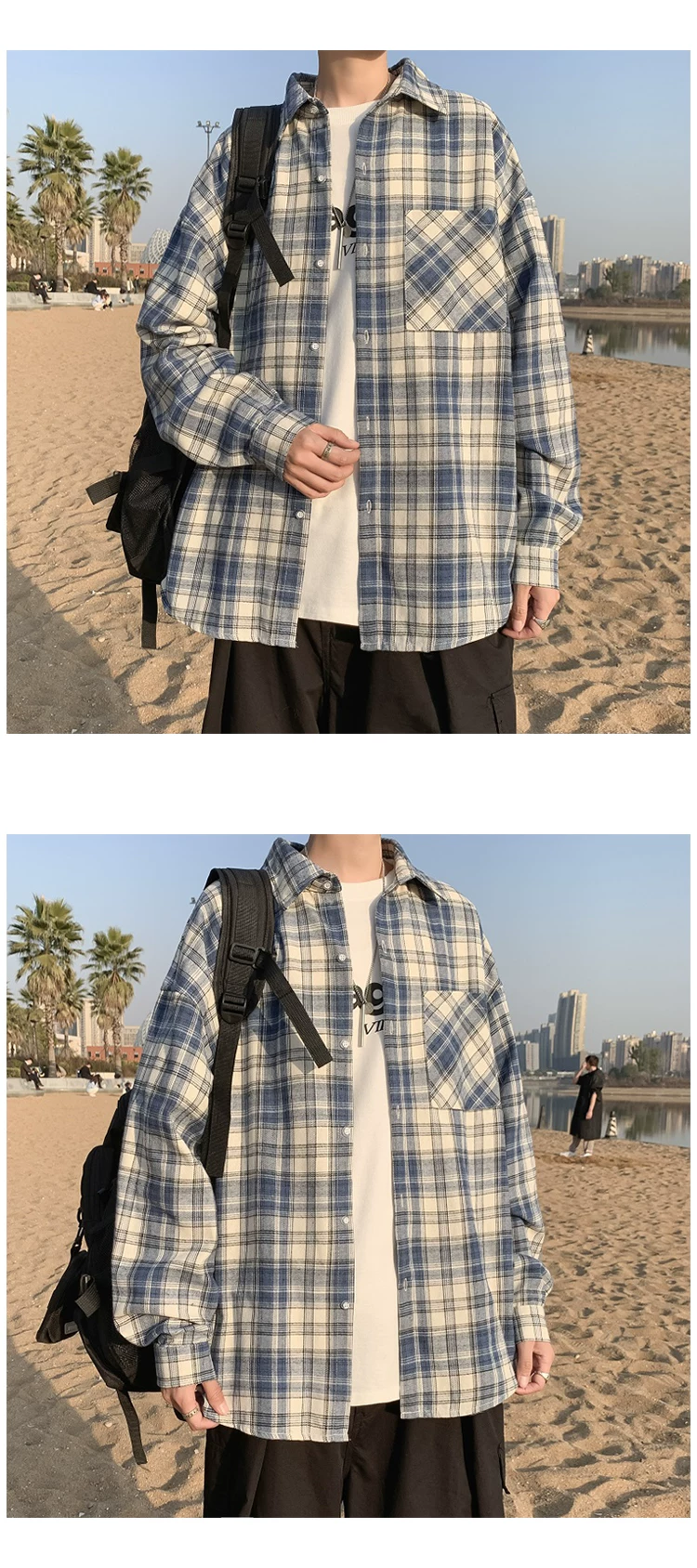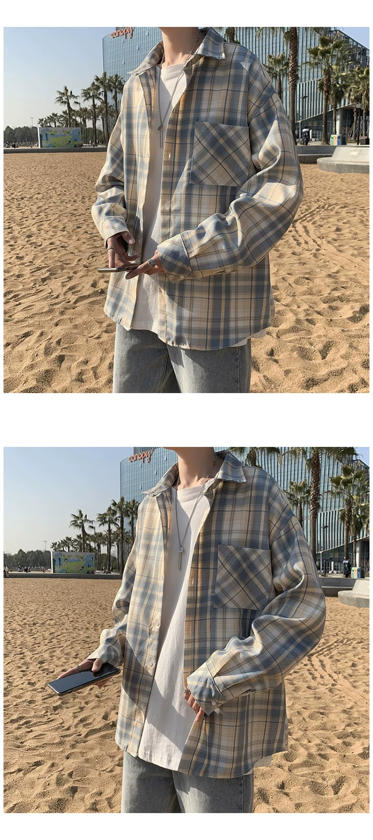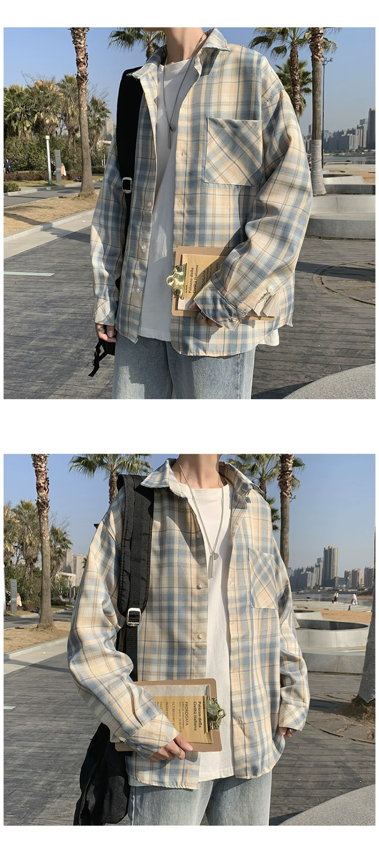 - Áo sơ mi nam dài tay mùa xuân thu, áo sơ mi kẻ sọc phong cách Hồng Kông, áo khoác dáng rộng phong cách Hàn Quốc thời thượng.