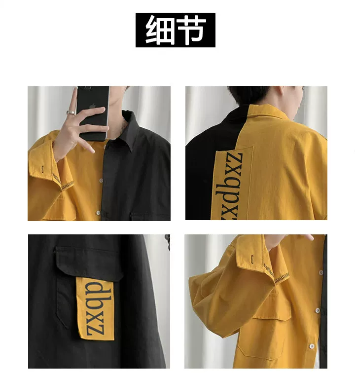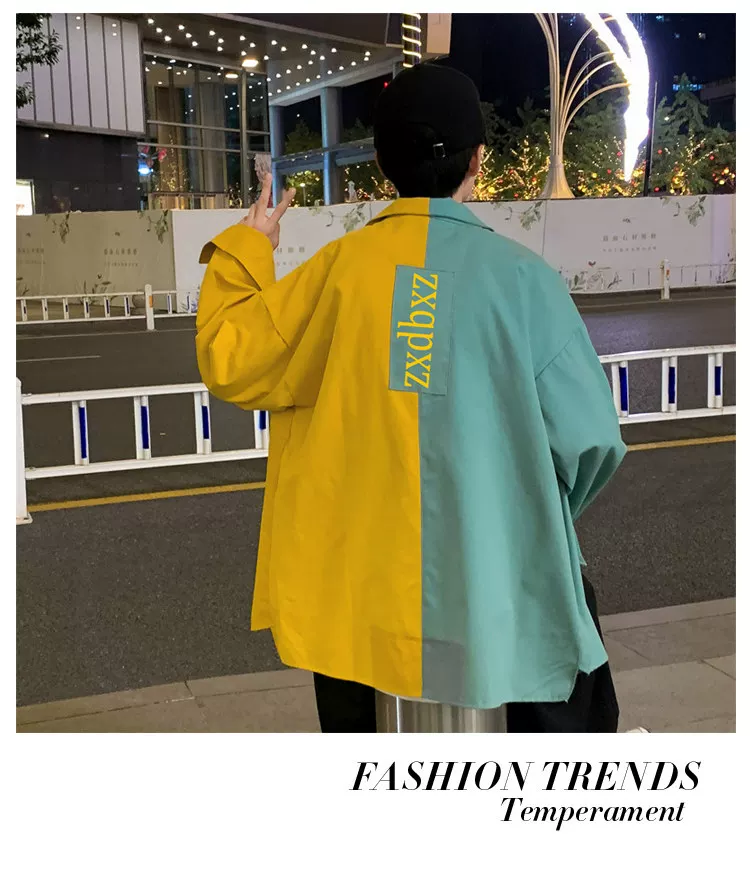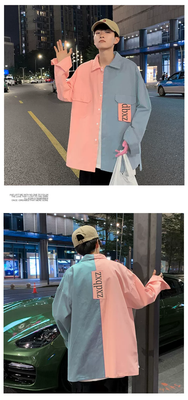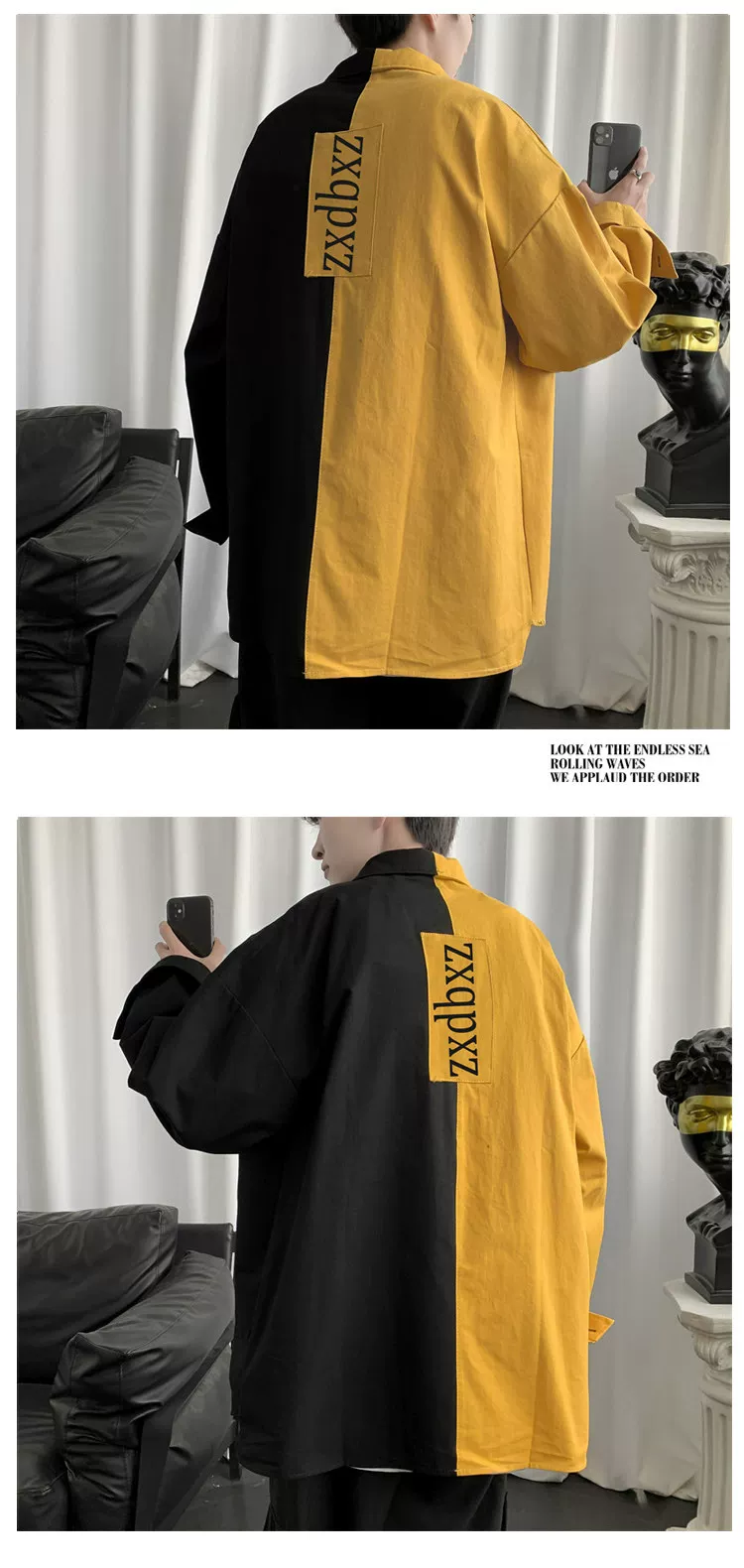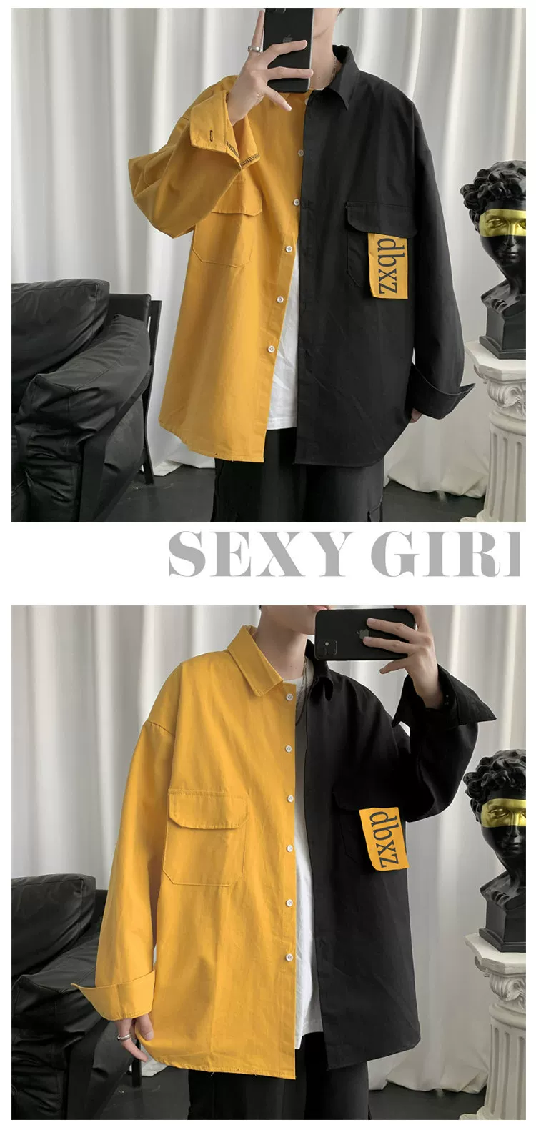 Áo sơ mi nam dài tay, phong cách Hồng Kông thời thượng, phối màu, dáng rộng, áo khoác thường ngày xuân/hè.