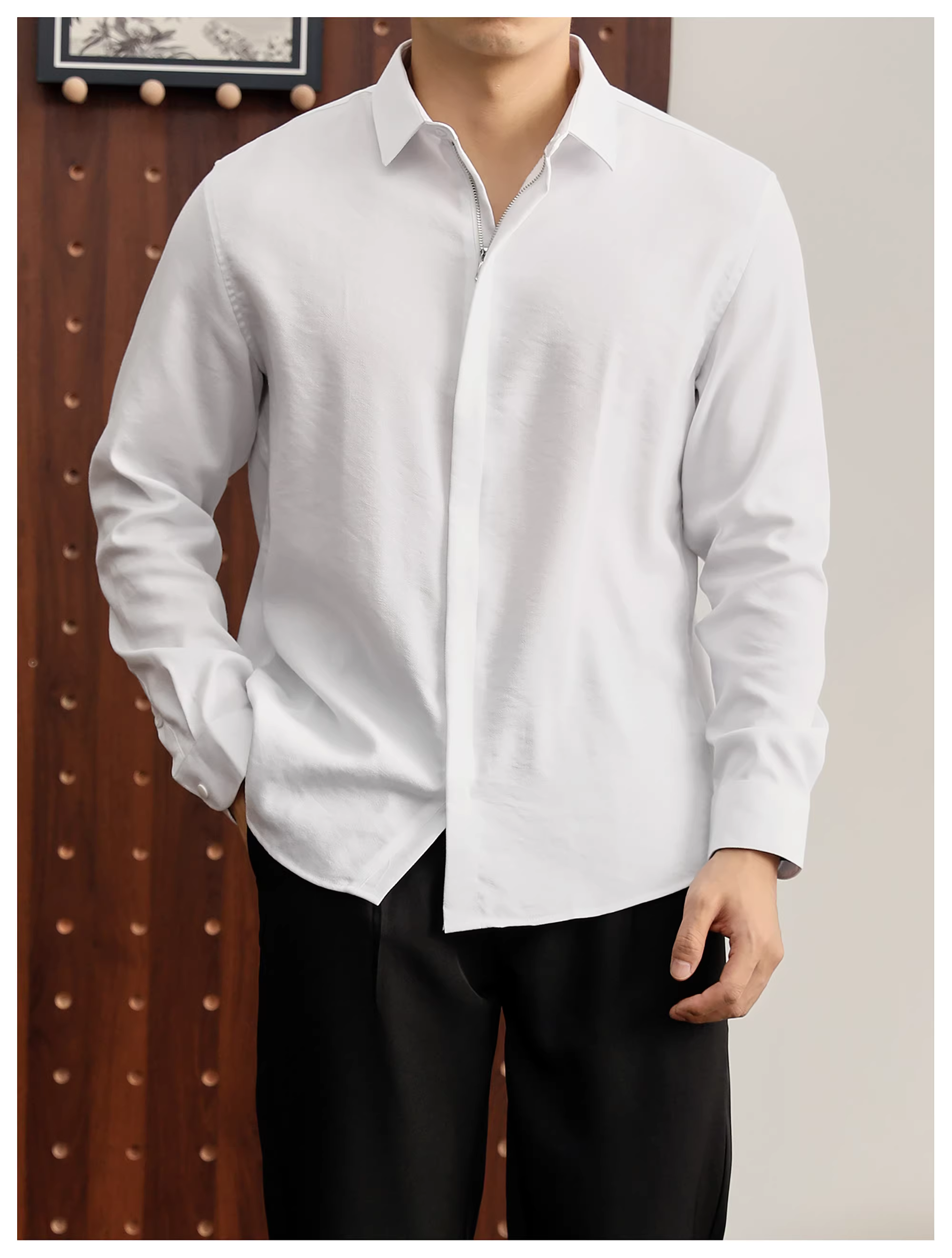 - Áo sơ mi nam dài tay tối giản màu đen sang trọng theo phong cách yuppie LUUD, chống nhăn, mềm mại, có cổ, áo sơ mi màu trơn
