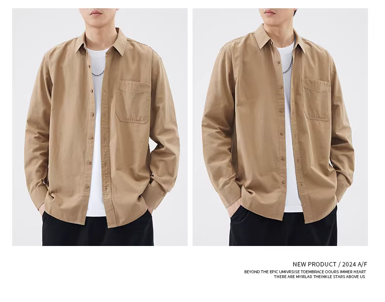 - Áo sơ mi nam dày dặn 350G, tay dài, mùa xuân thu, chất liệu cotton nguyên chất, kiểu dáng cổ điển có túi, áo khoác sơ mi cao cấp.