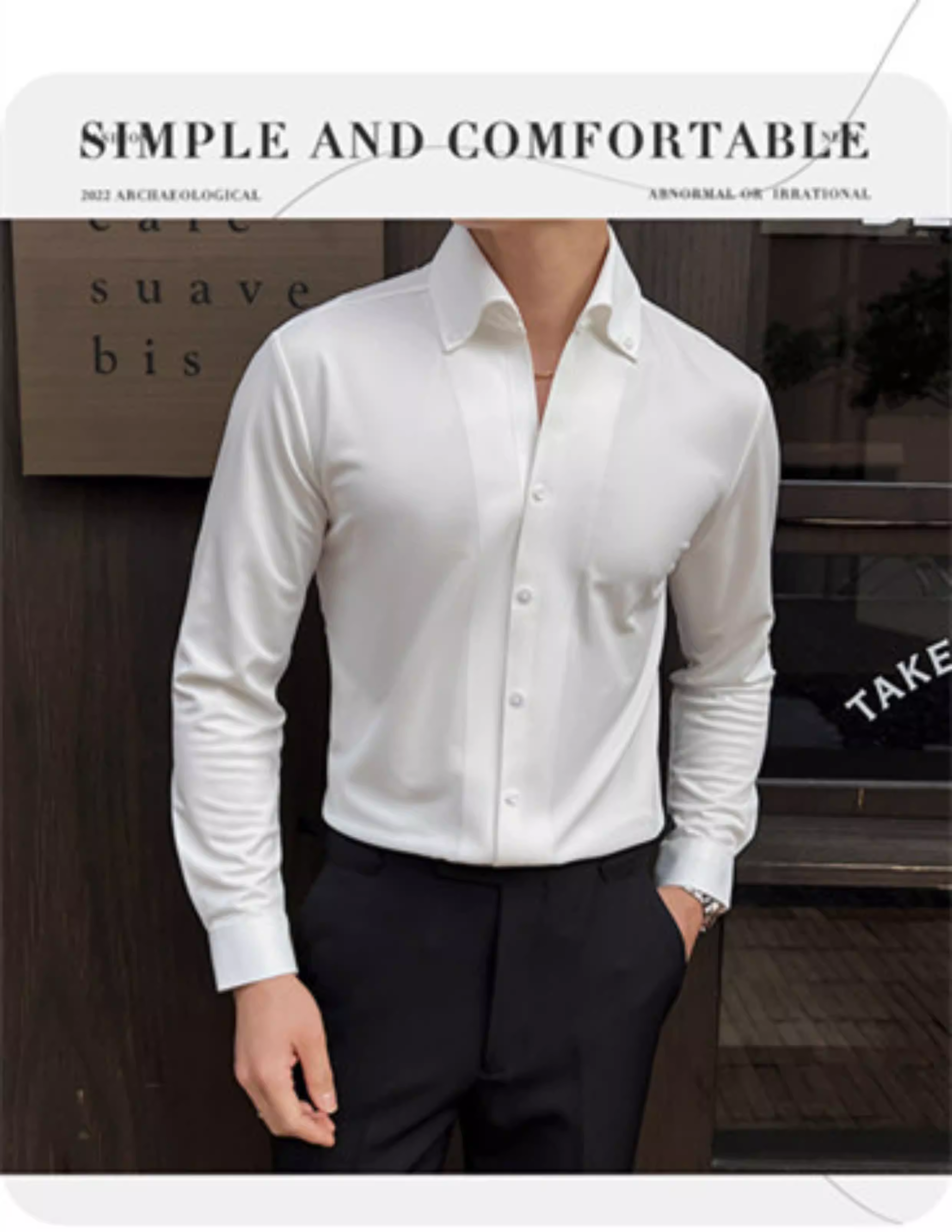 - Áo sơ mi nam kiểu Pháp cổ V, tay dài, cao cấp, dễ chăm sóc, thời trang, hợp xu hướng, ôm dáng, áo sơ mi công sở lịch sự