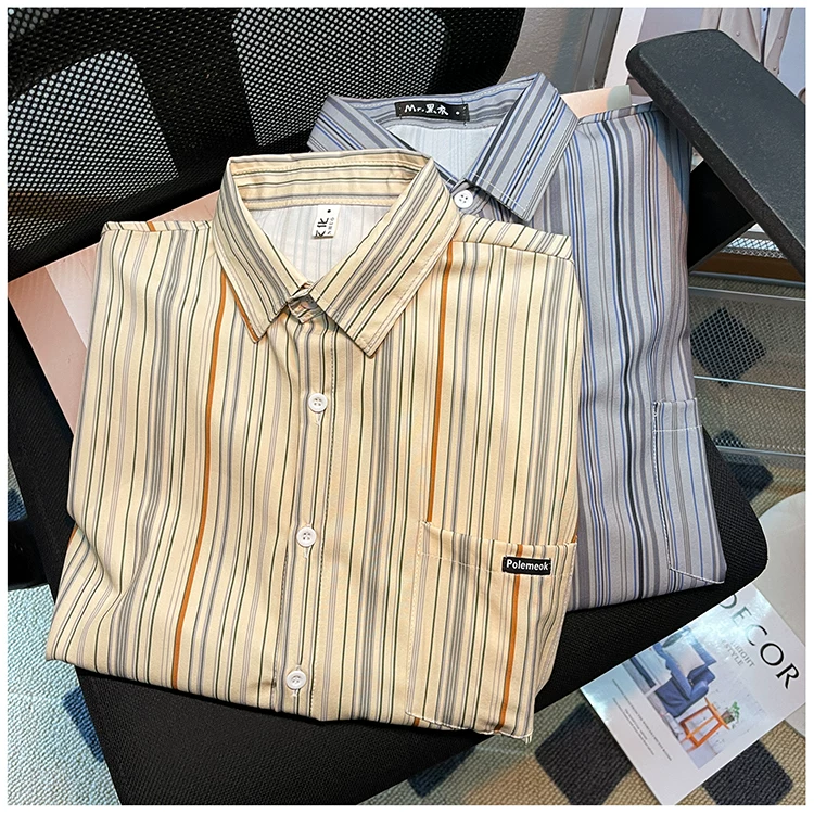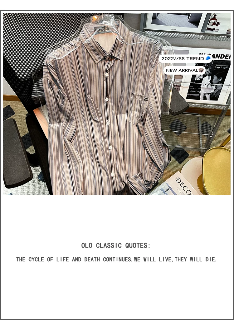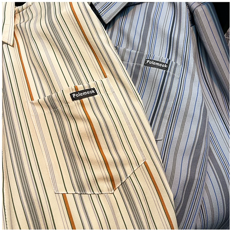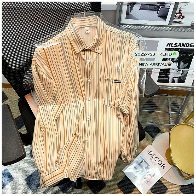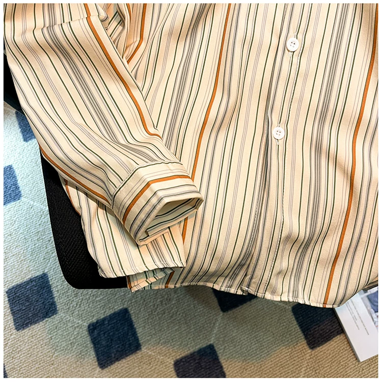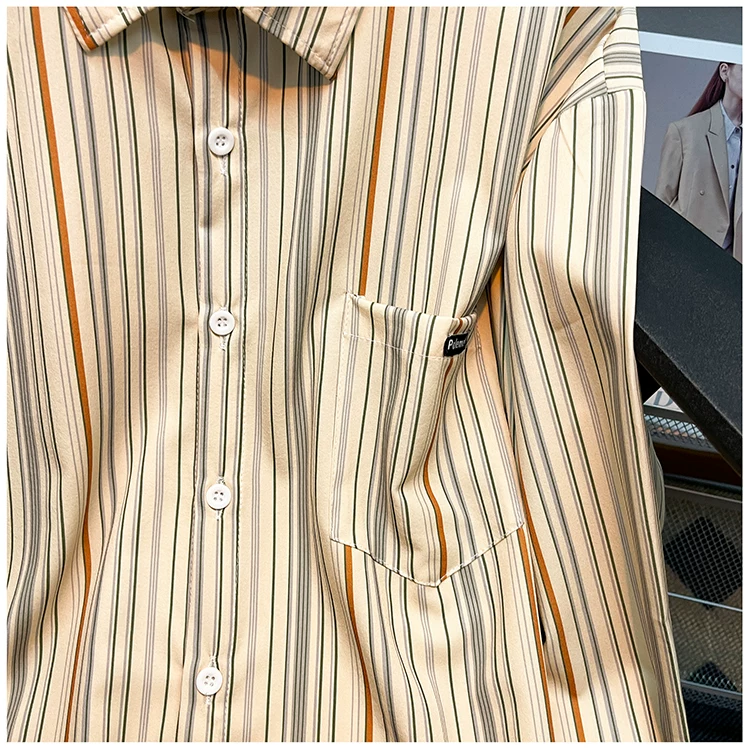 - Áo sơ mi nam sọc dọc tay dài, phong cách Hồng Kông retro, áo kiểu Hàn Quốc thời trang xuân thu, dáng rộng lịch lãm.