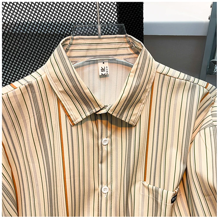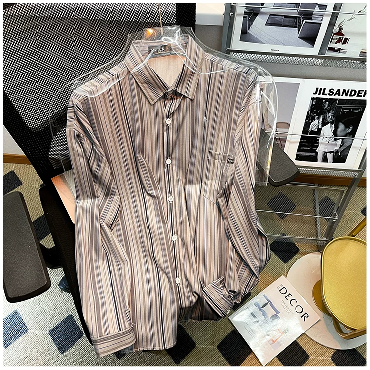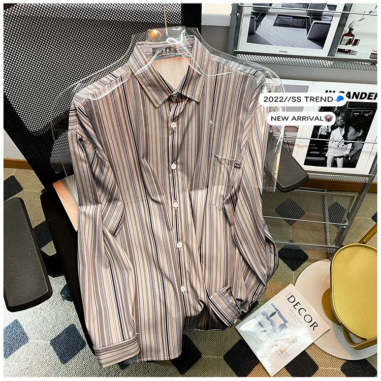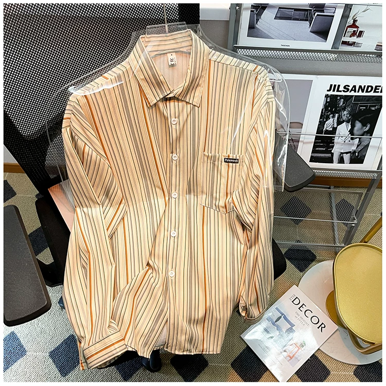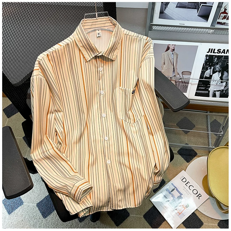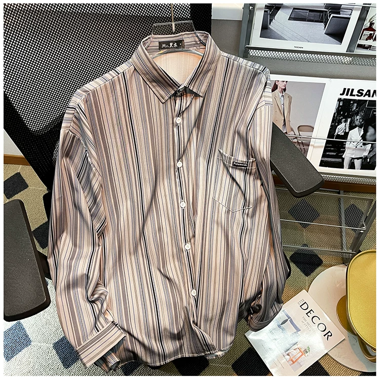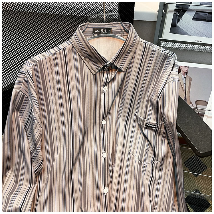 Áo sơ mi nam sọc dọc tay dài, phong cách Hồng Kông retro, áo kiểu Hàn Quốc thời trang xuân thu, dáng rộng lịch lãm.