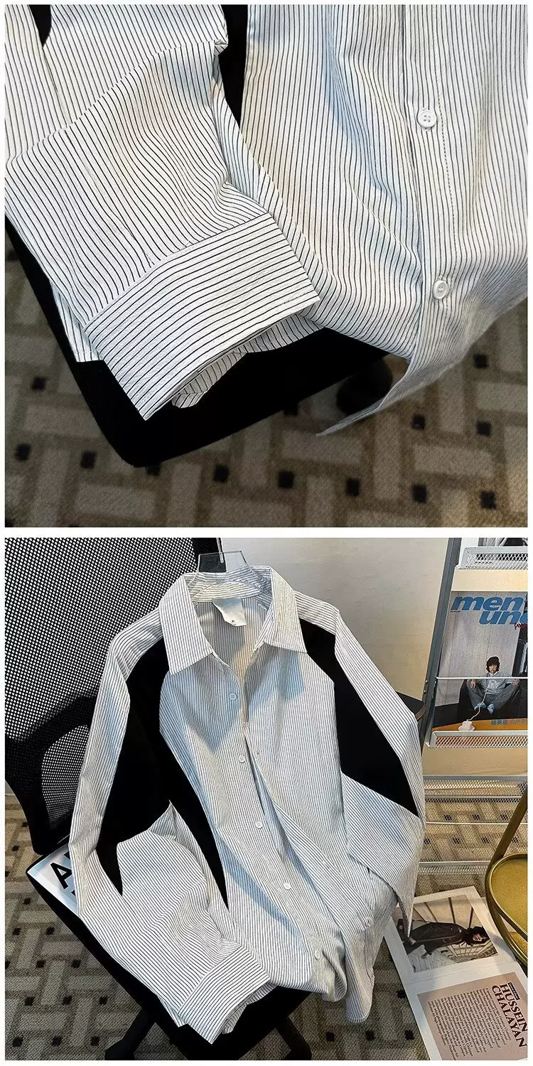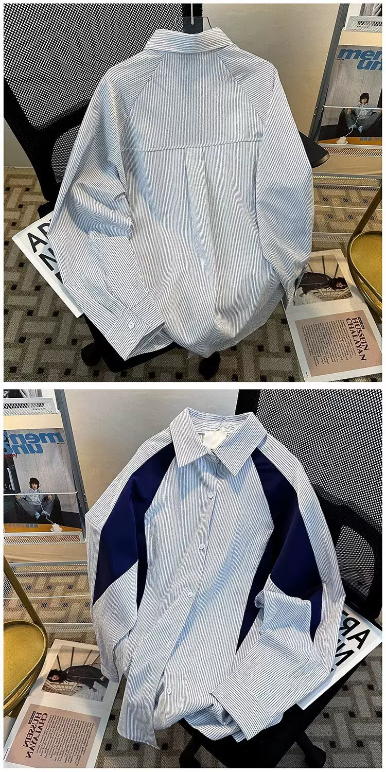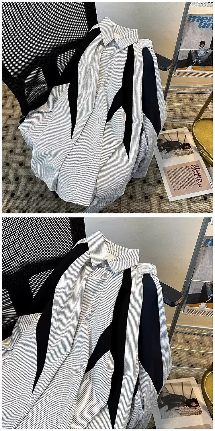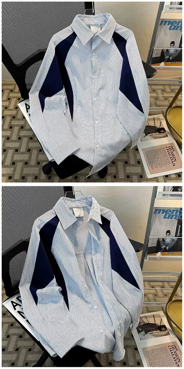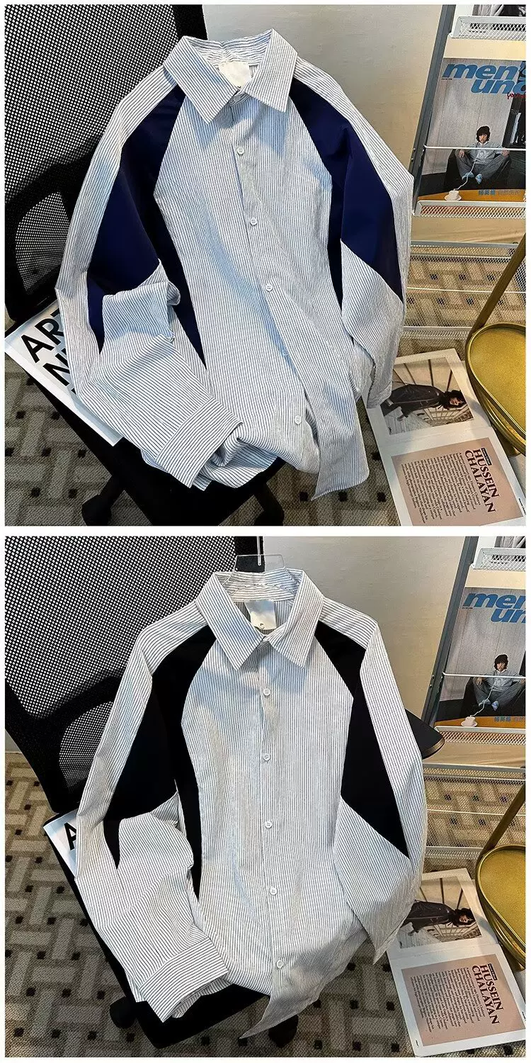 - Áo sơ mi nam tay dài mùa thu 2025, kiểu dáng thời trang phối màu sọc, thiết kế rộng rãi phong cách Mỹ, cá tính.