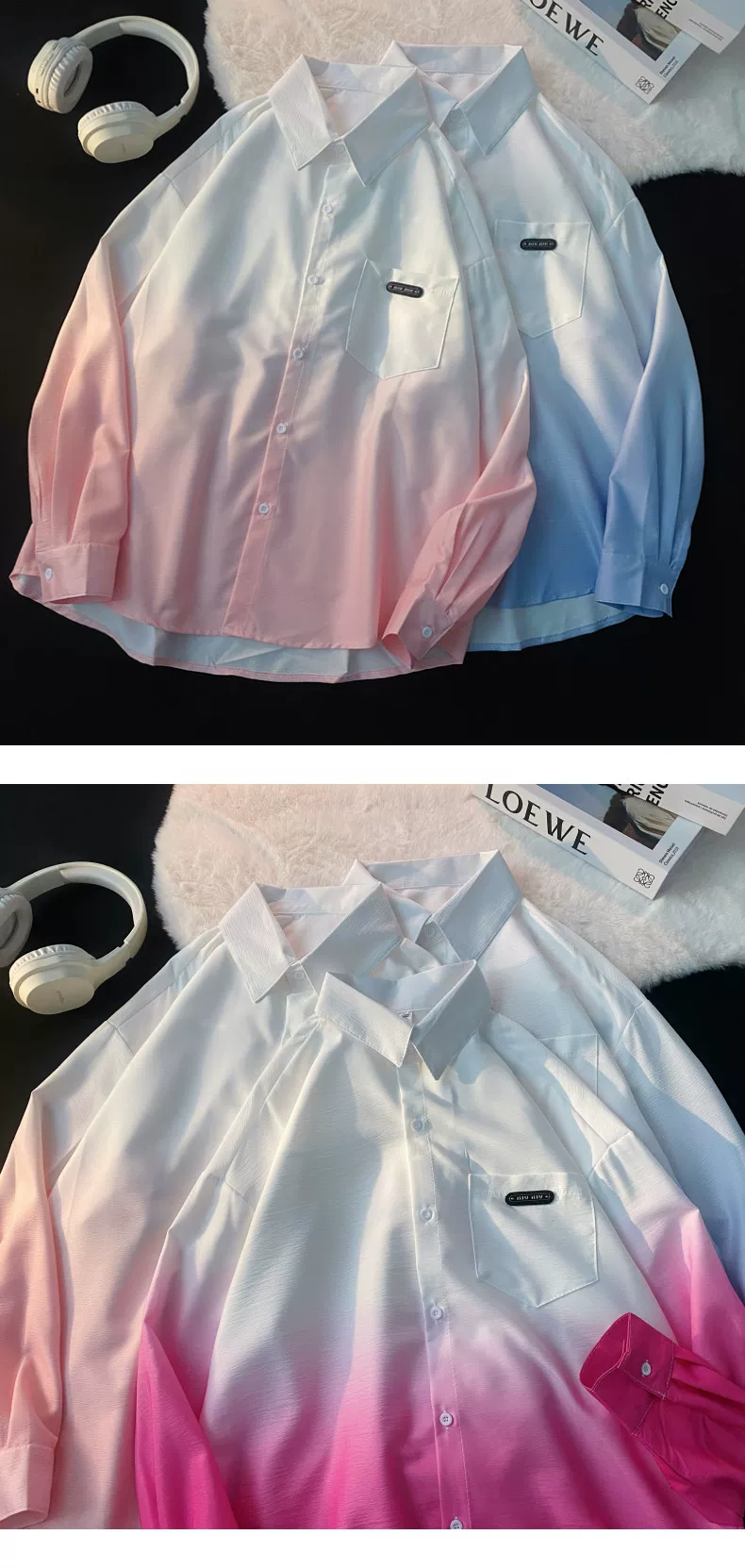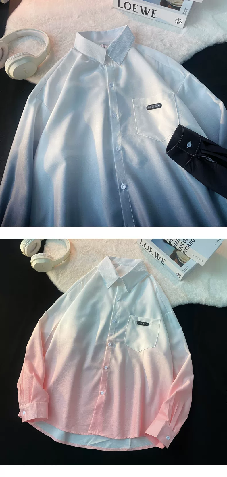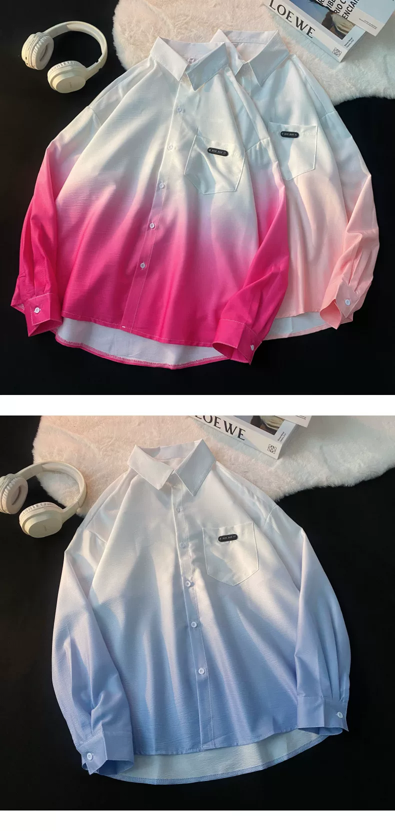 - Áo sơ mi nam tay dài thiết kế phối màu Xuân Thu 2025, áo khoác mỏng cặp đôi phong cách Mỹ thời thượng, dáng rộng.