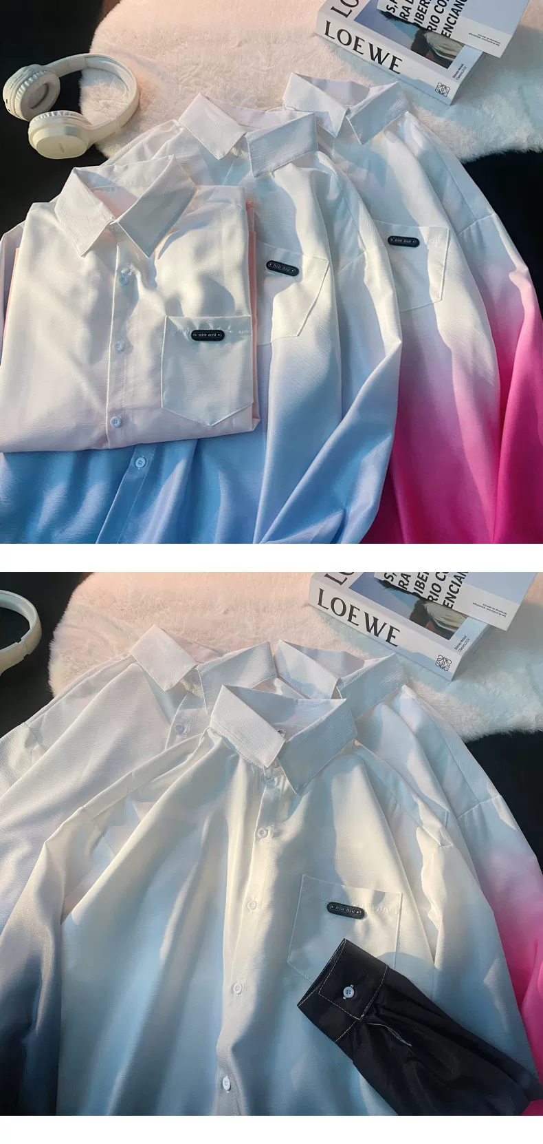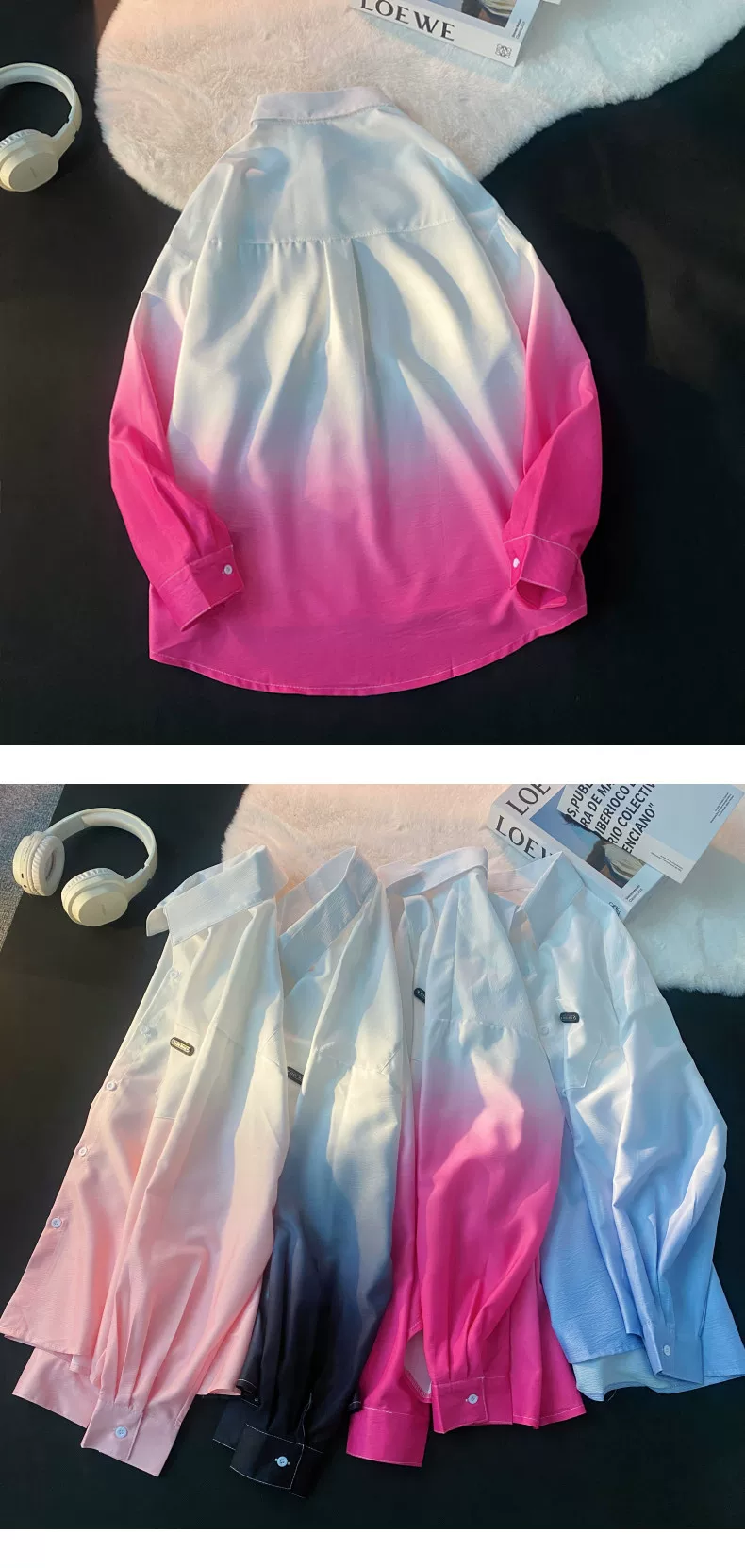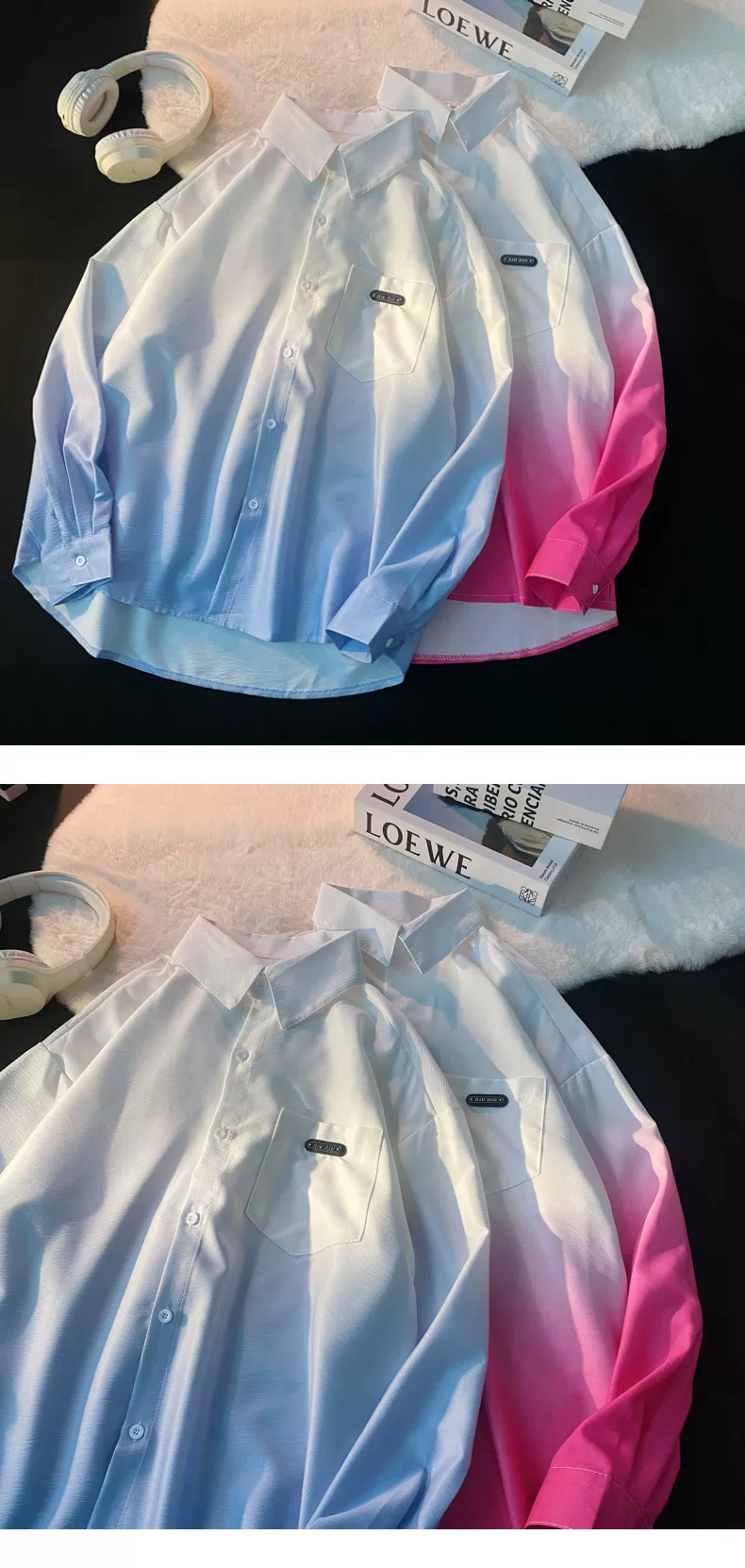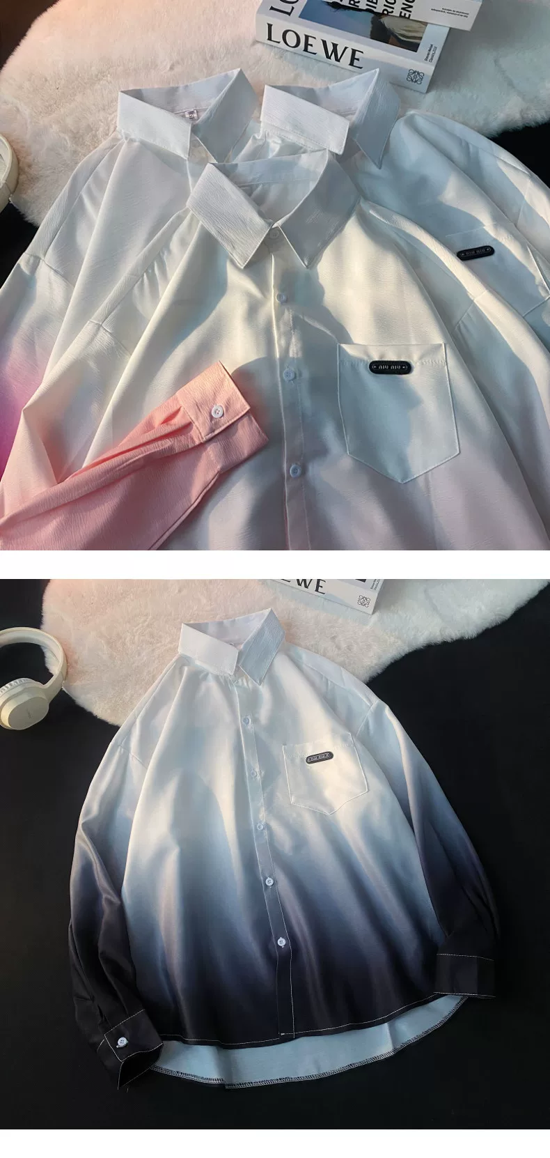 - Áo sơ mi nam tay dài thiết kế phối màu Xuân Thu 2025, áo khoác mỏng cặp đôi phong cách Mỹ thời thượng, dáng rộng.