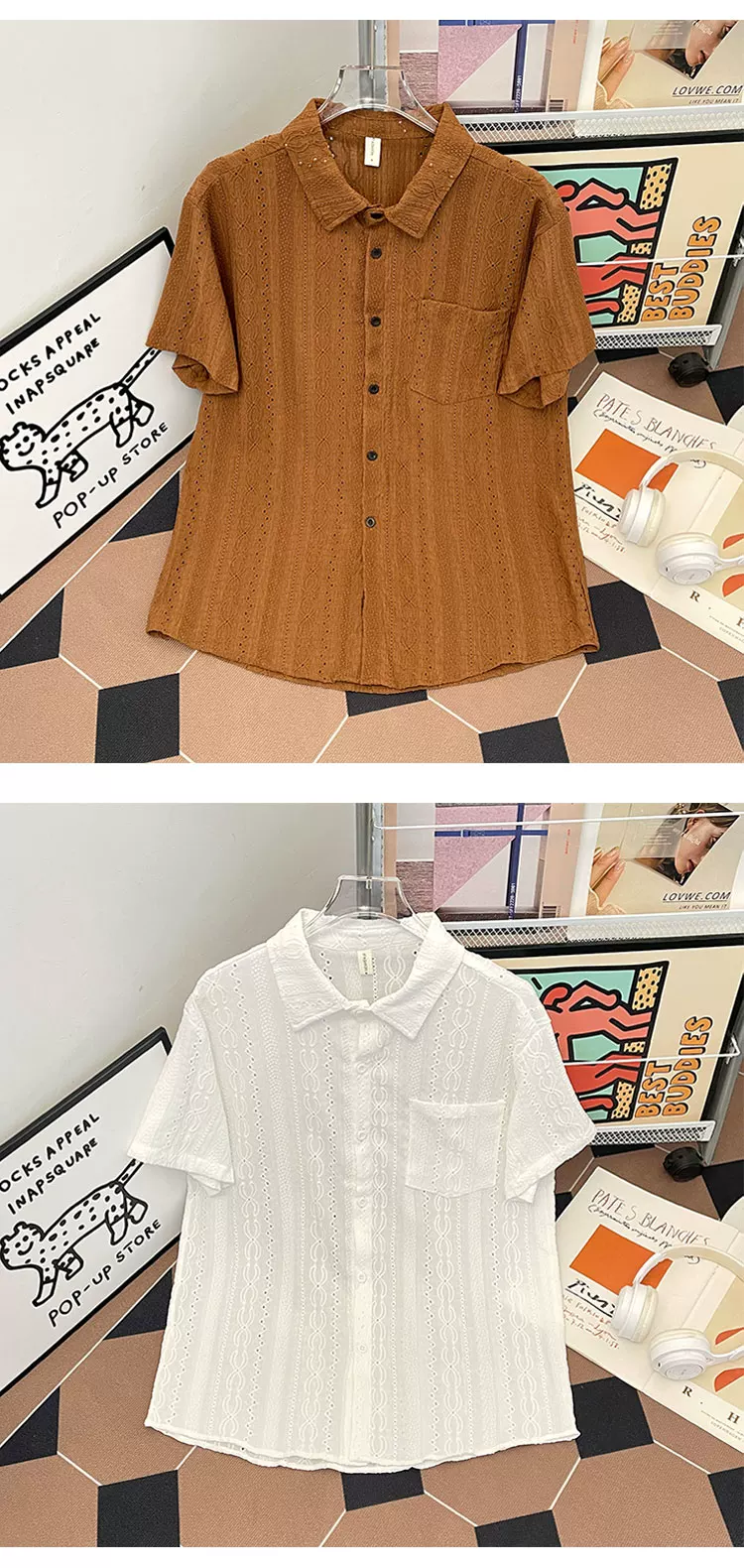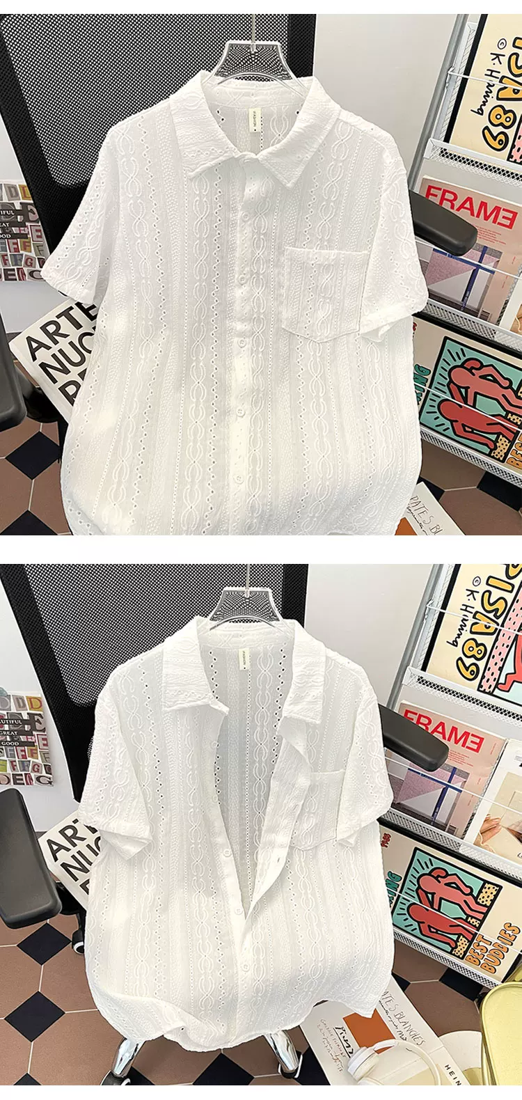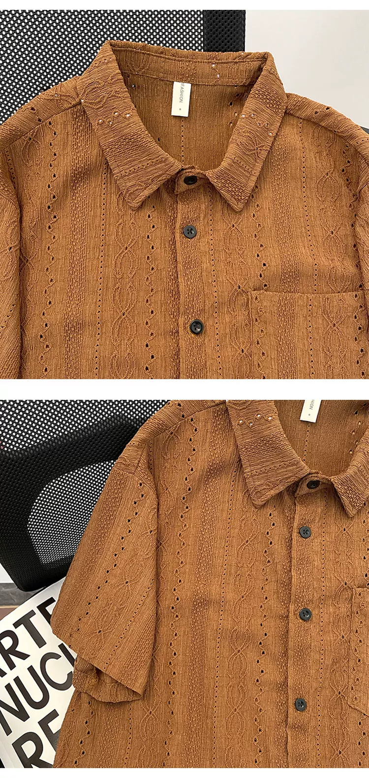 - Áo sơ mi nam tay ngắn kiểu Nhật, chất liệu lụa đá mùa hè, cổ polo, thiết kế thời trang, thương hiệu sành điệu.