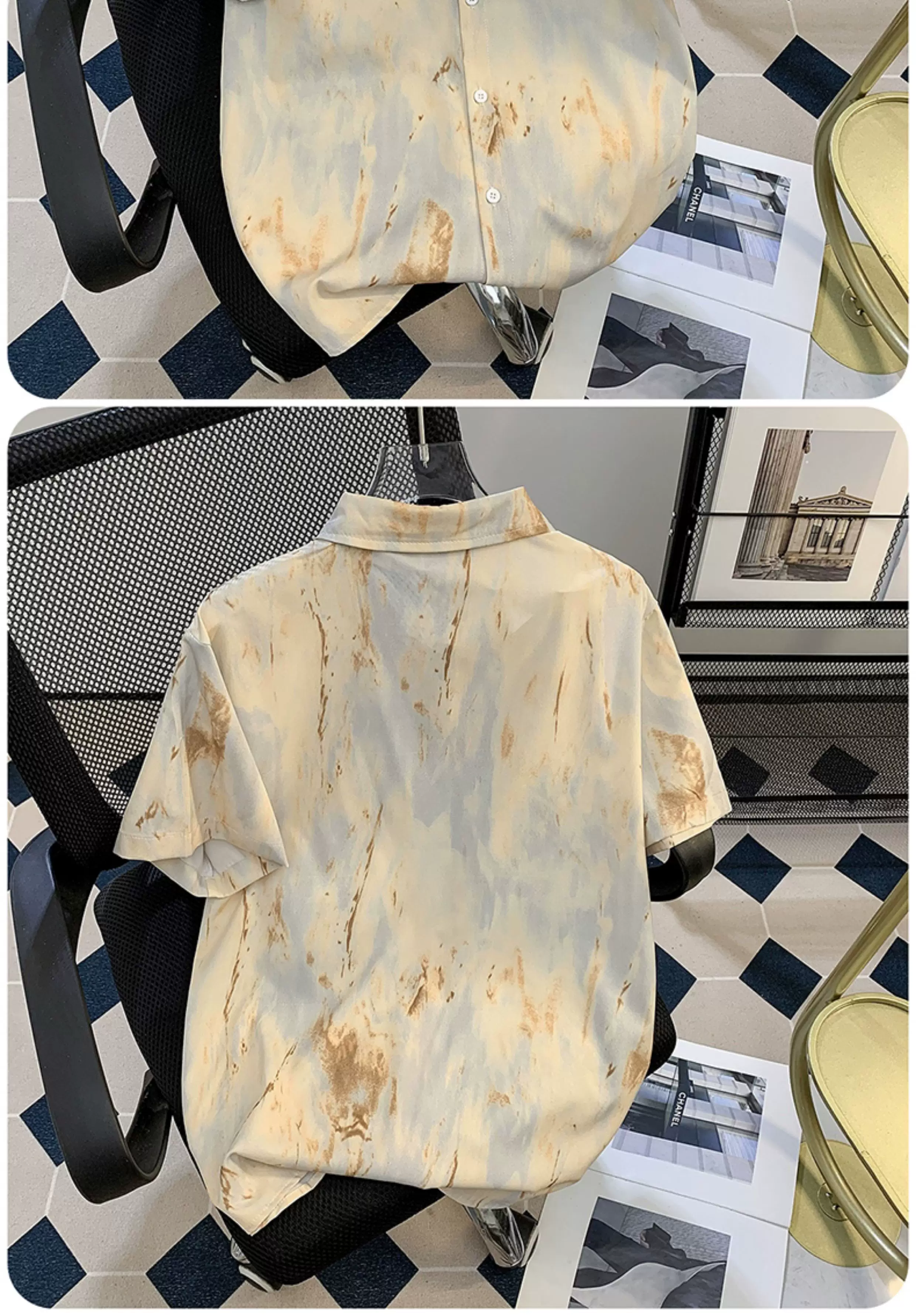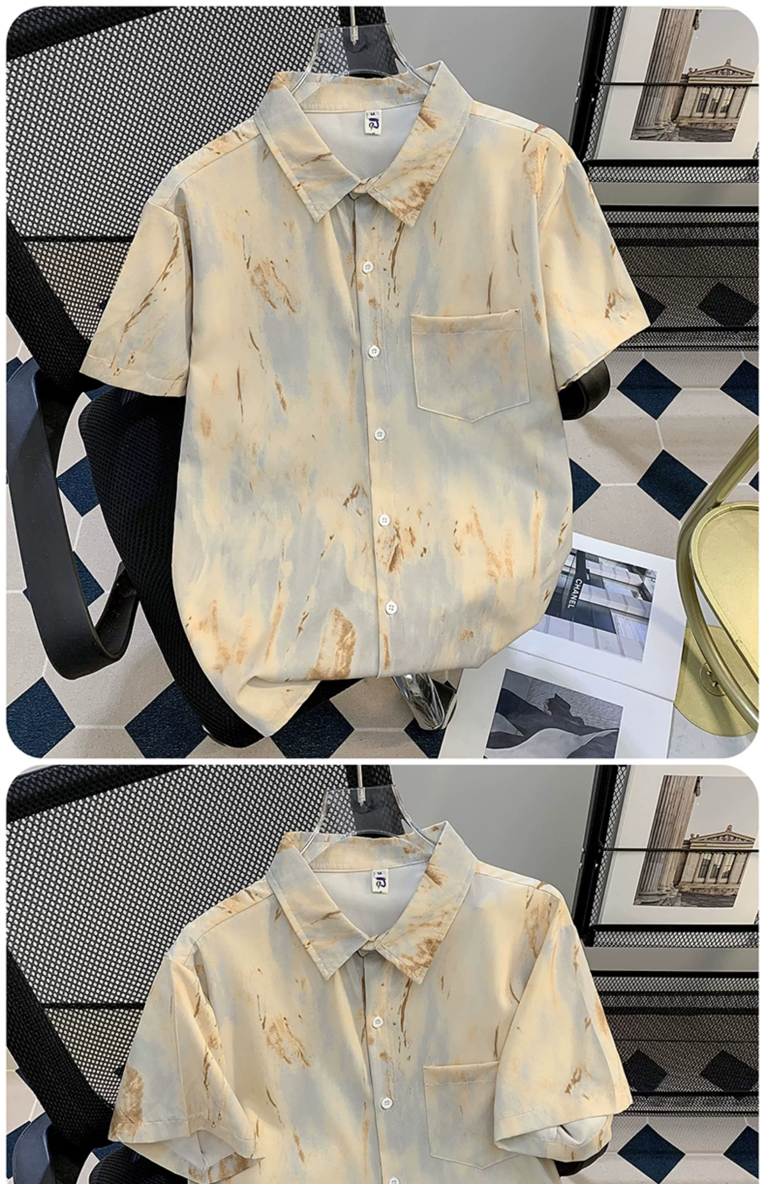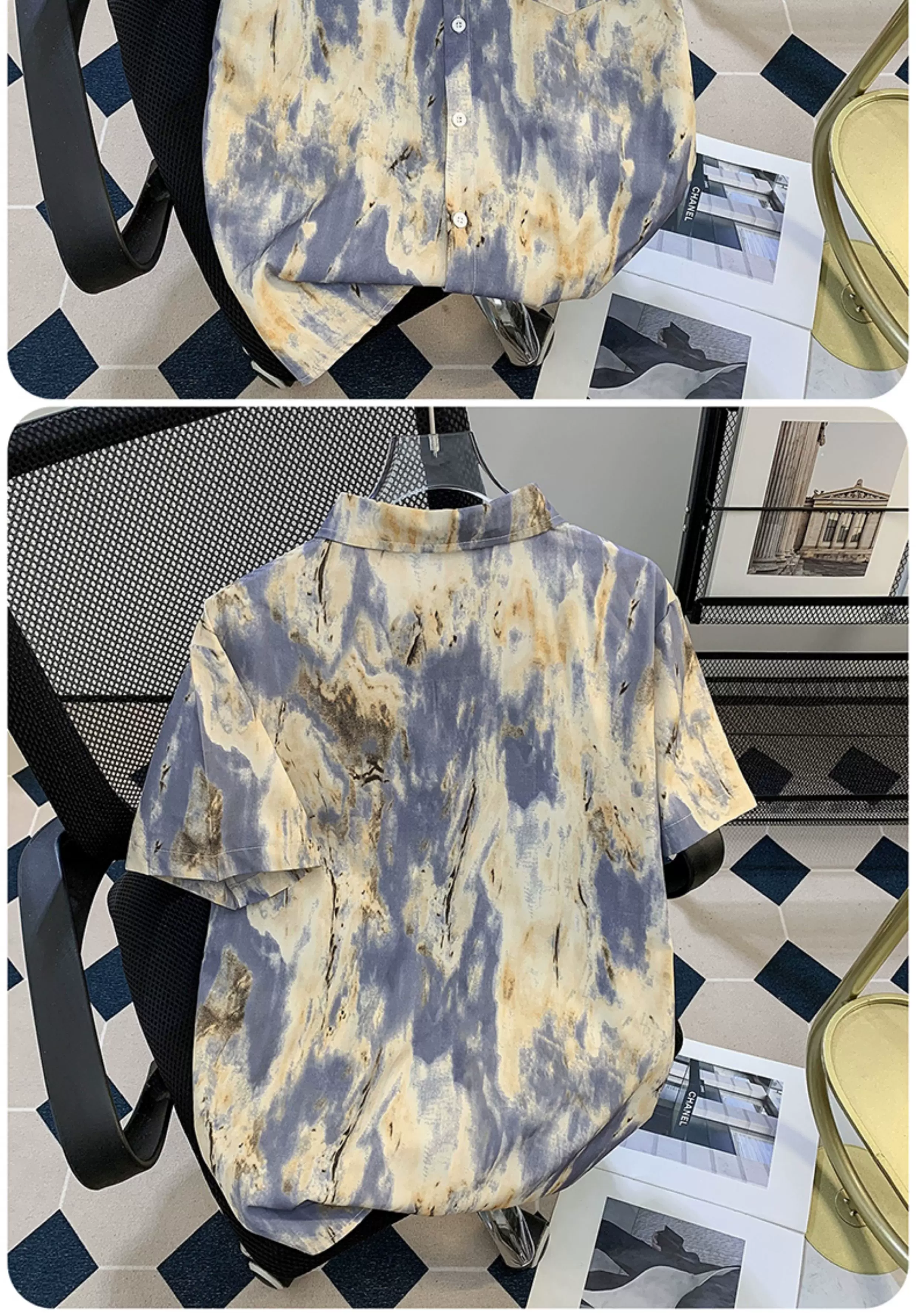 - Áo sơ mi ngắn tay chất liệu lụa băng nhuộm tie-dye dành cho nam, áo kiểu Mỹ mùa hè rộng rãi thoải mái, áo kiểu Hawaii phóng khoáng