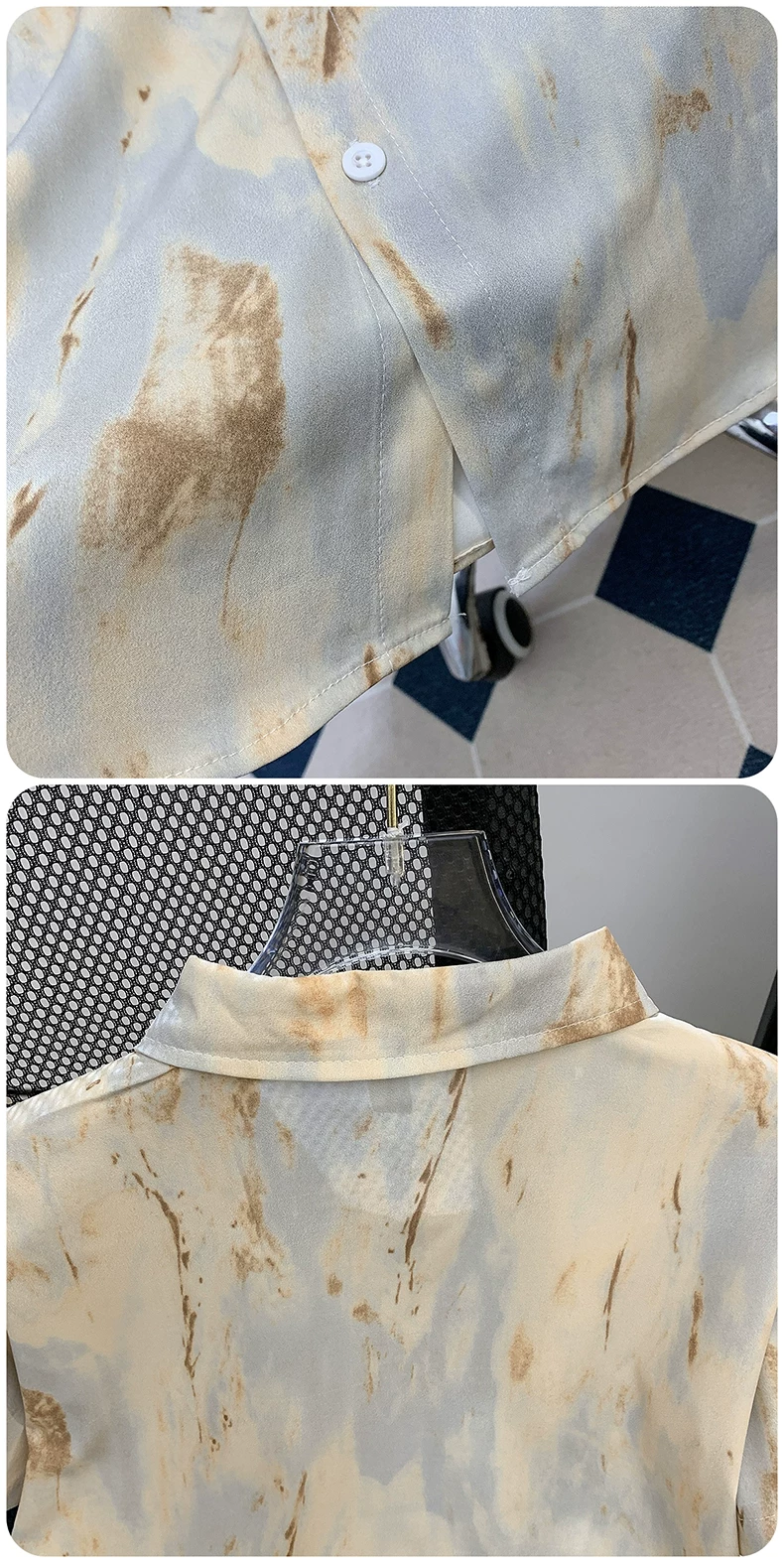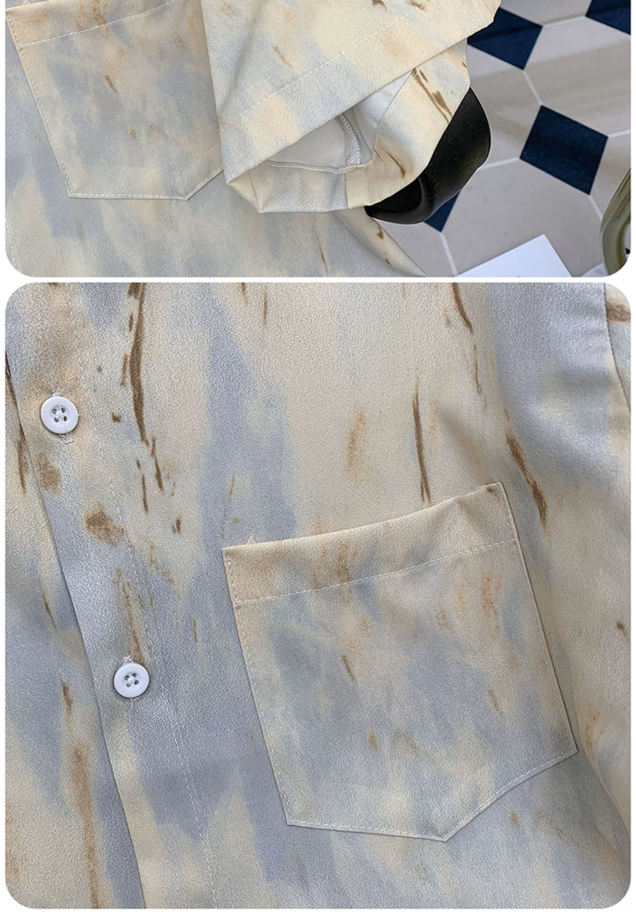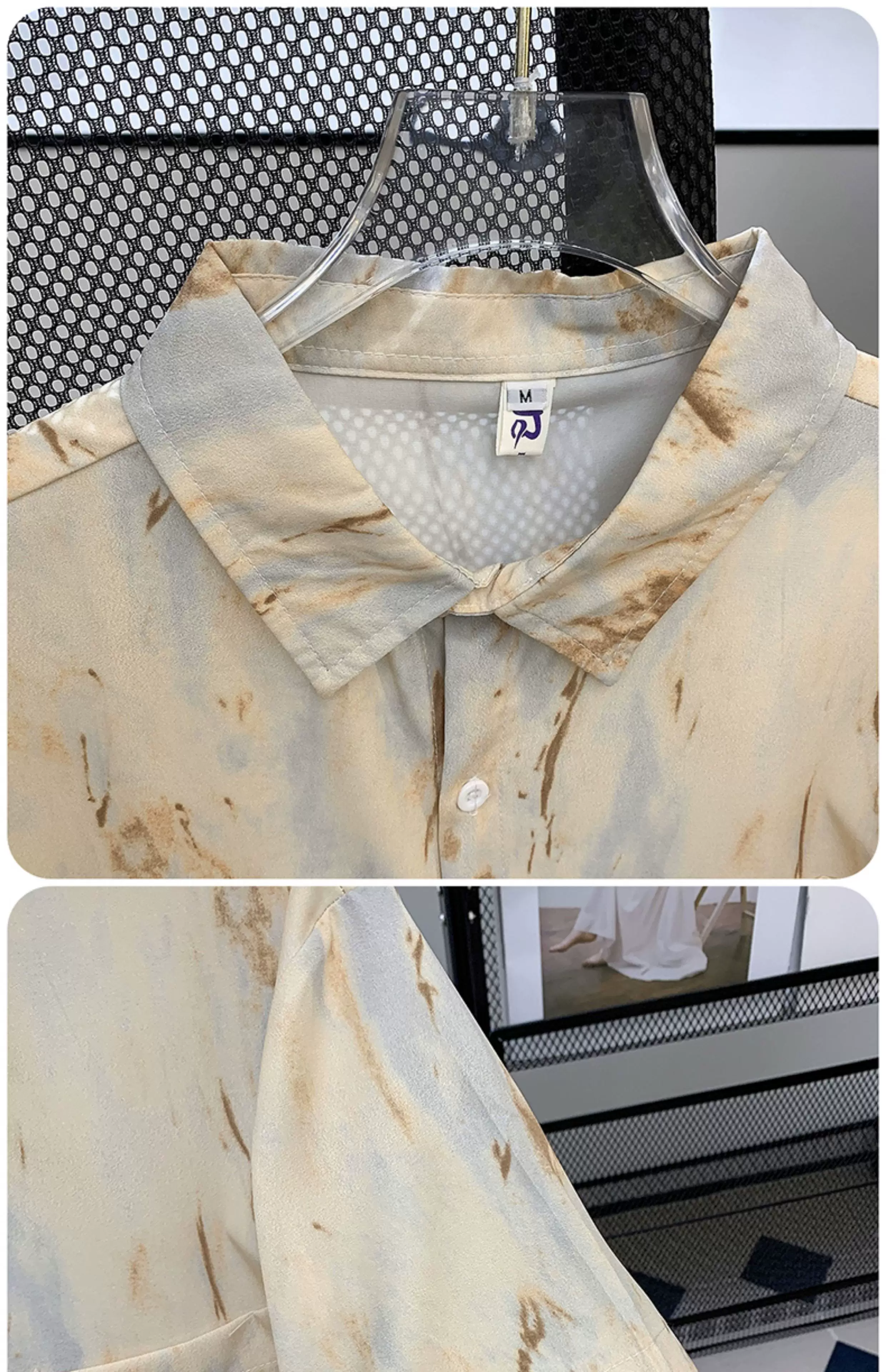 - Áo sơ mi ngắn tay chất liệu lụa băng nhuộm tie-dye dành cho nam, áo kiểu Mỹ mùa hè rộng rãi thoải mái, áo kiểu Hawaii phóng khoáng