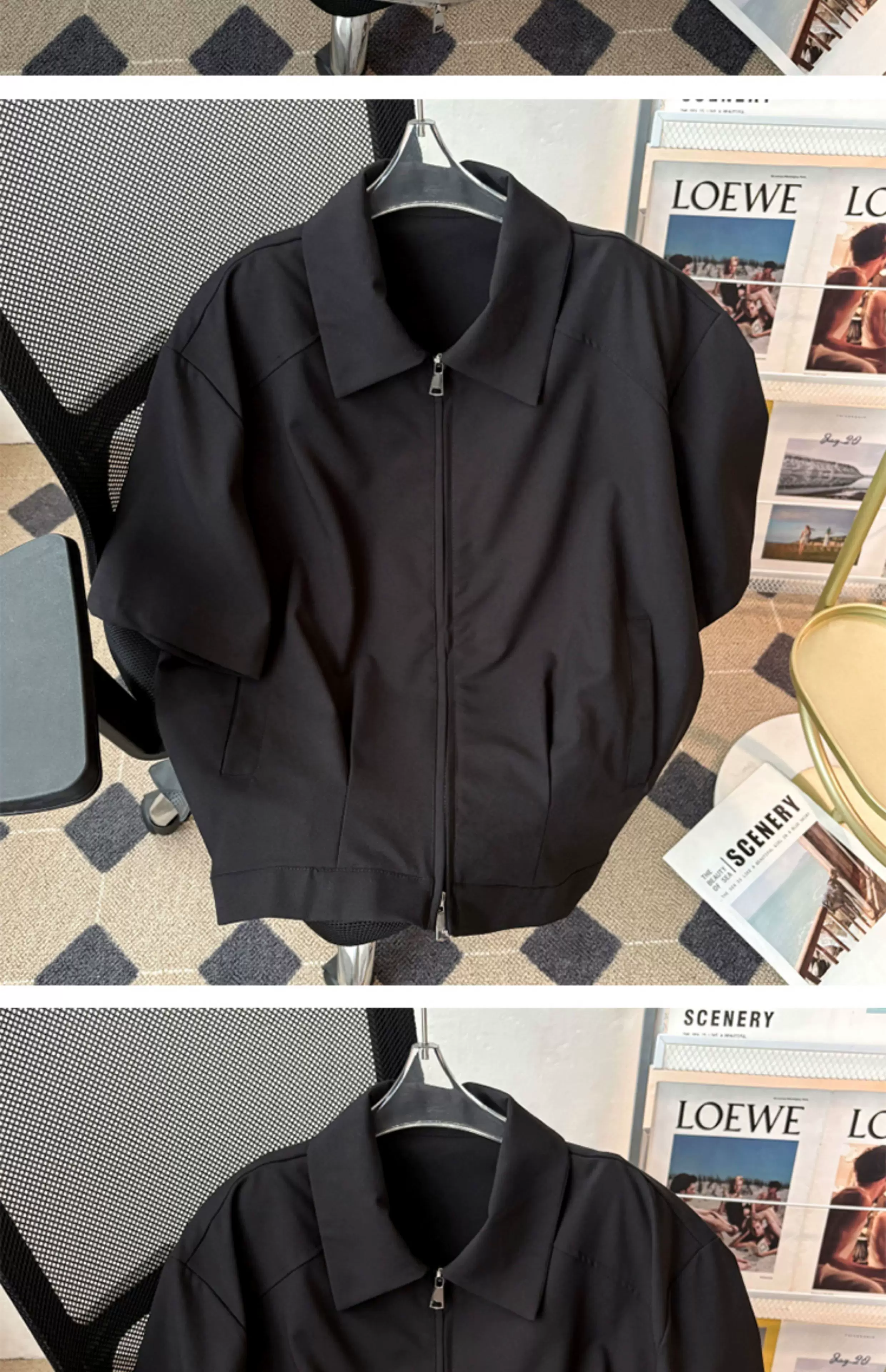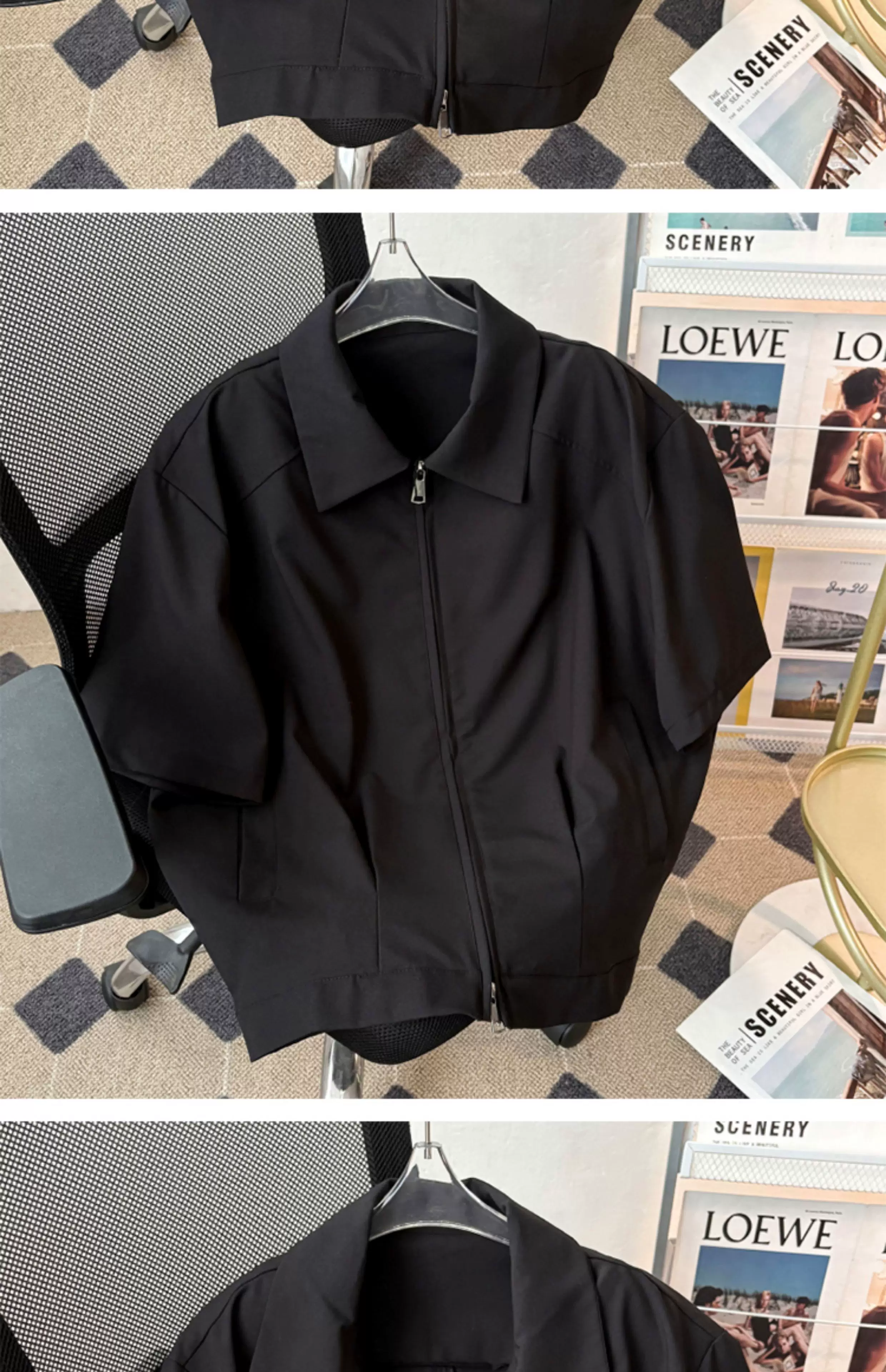 Áo sơ mi ngắn tay có khóa kéo đôi cho bé trai, áo sơ mi nửa tay dáng rộng thương hiệu hợp thời trang mùa hè, áo khoác ngắn cao cấp phong cách Mỹ
