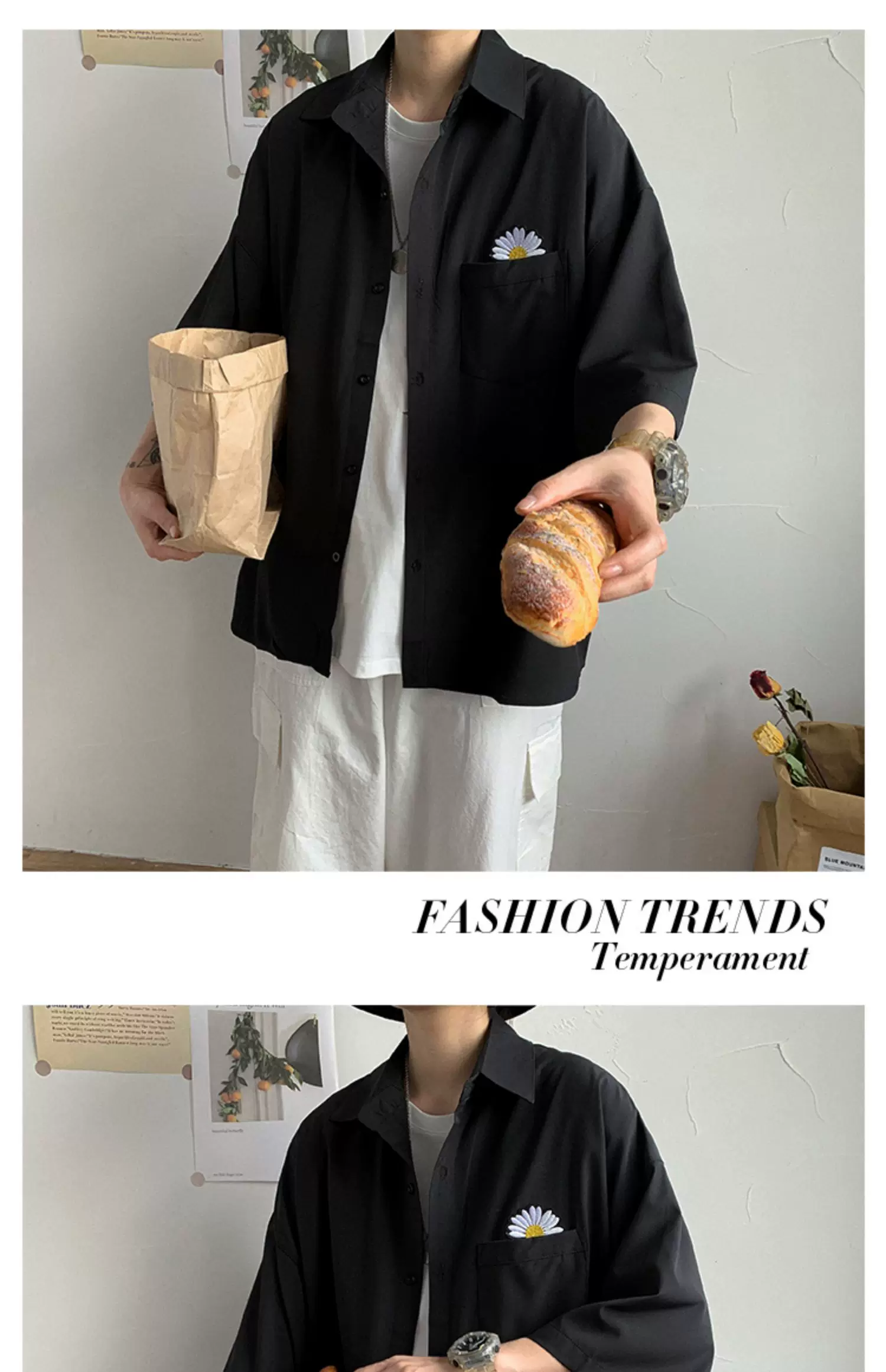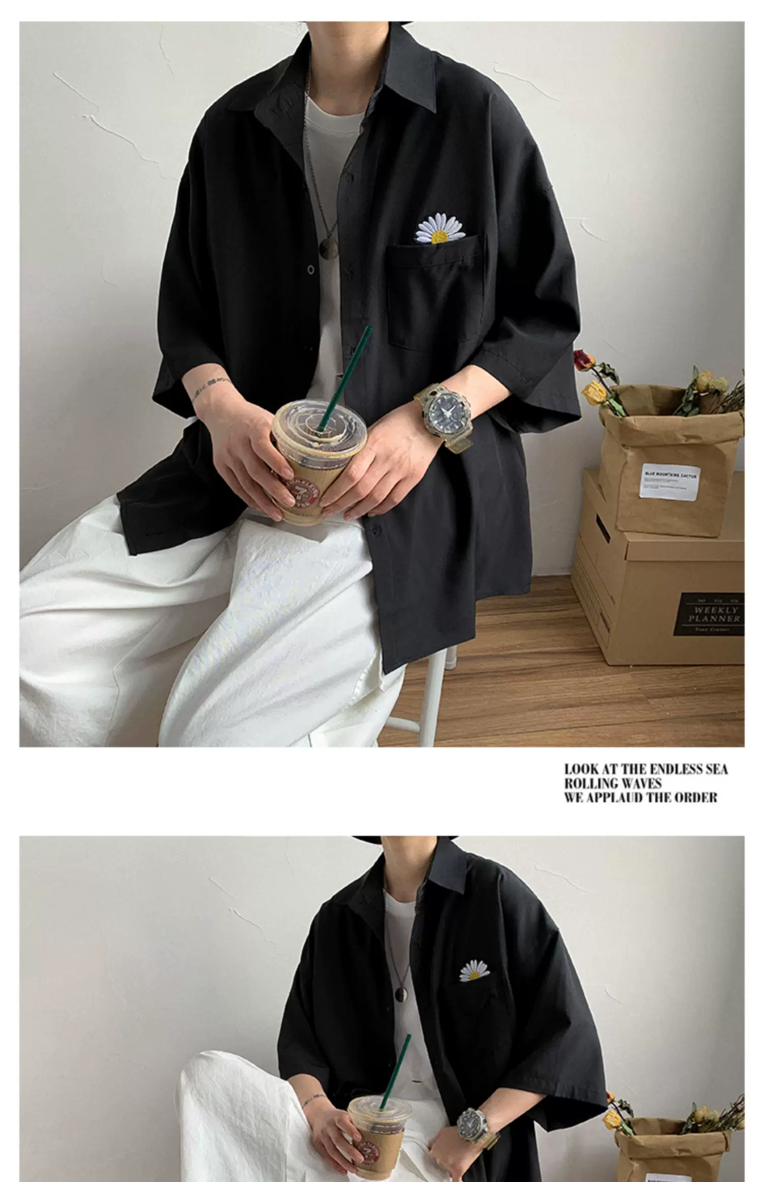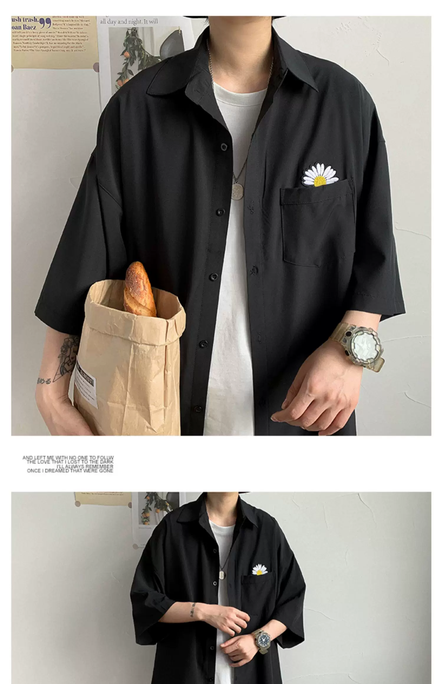 - Áo sơ mi ngắn tay hoa cúc mùa hè hợp thời trang, áo sơ mi tay lửng dáng rộng đa năng, áo khoác công sở nam thông thường