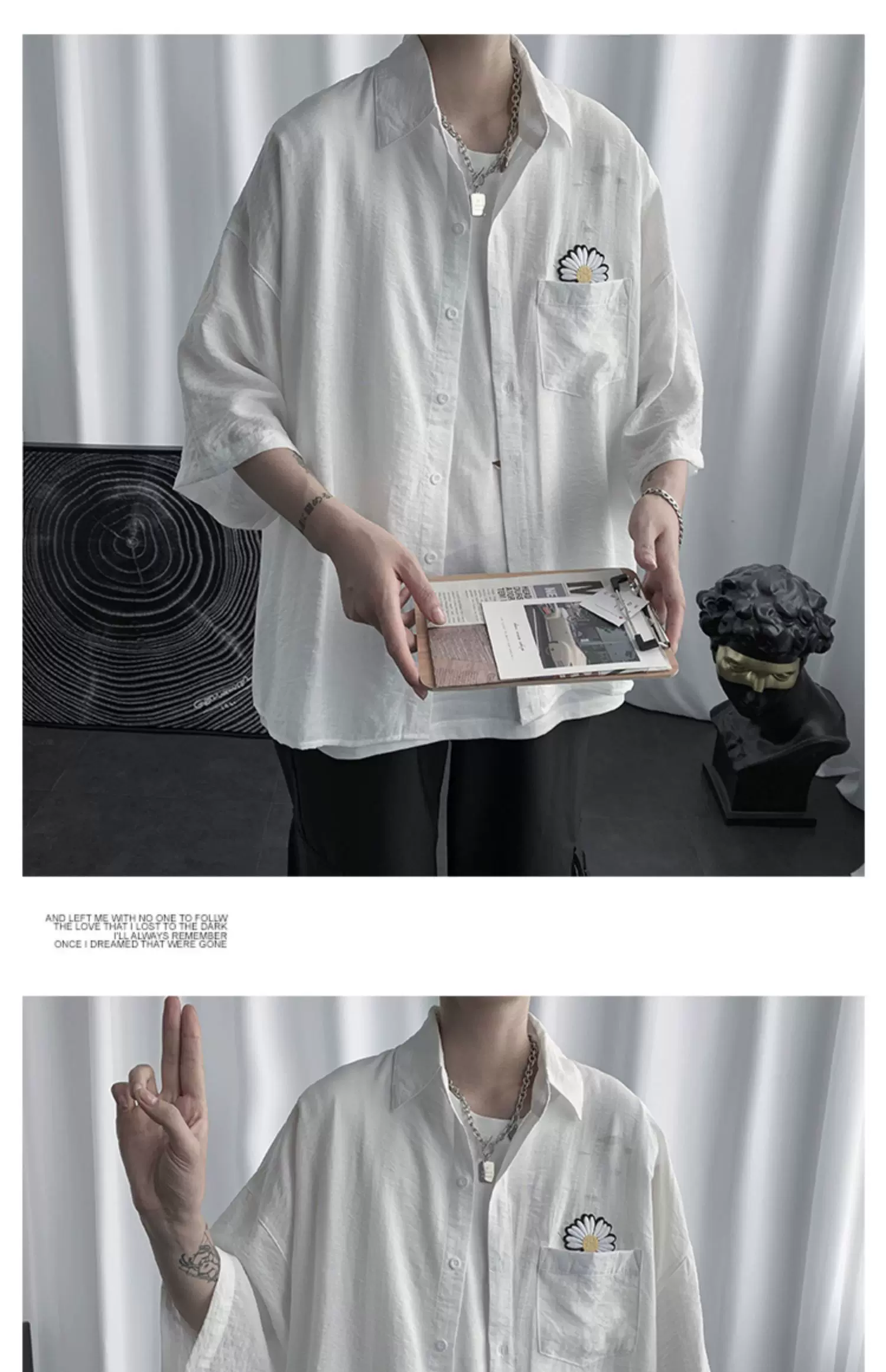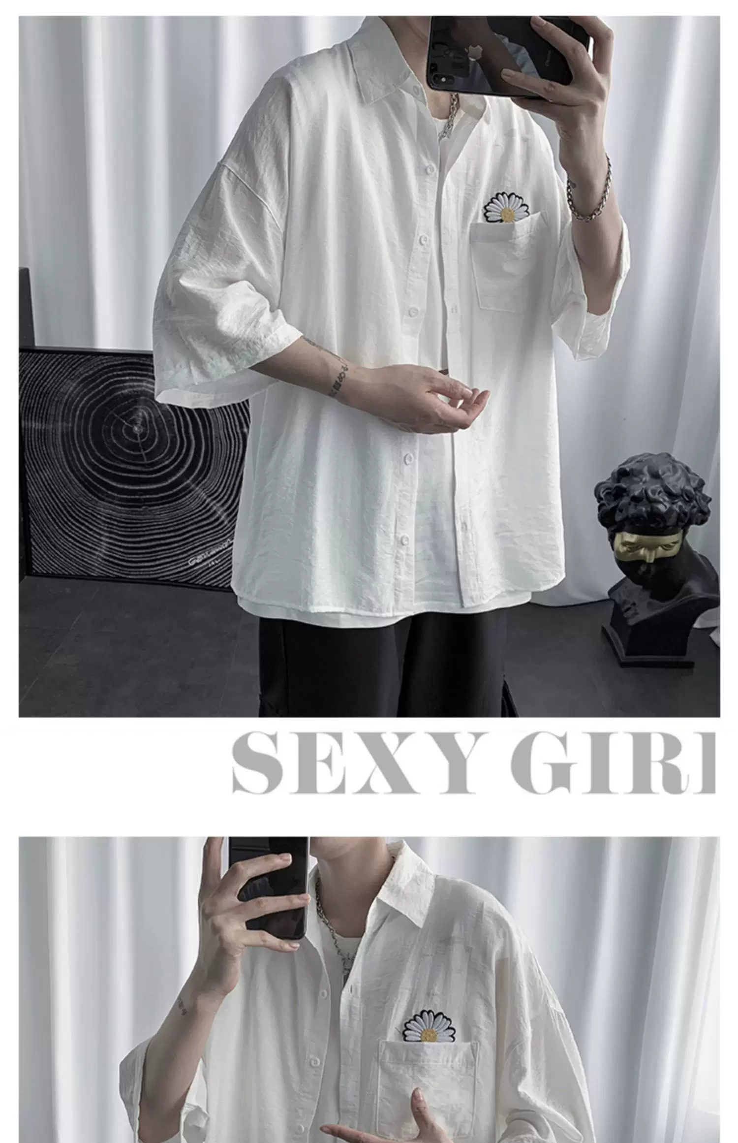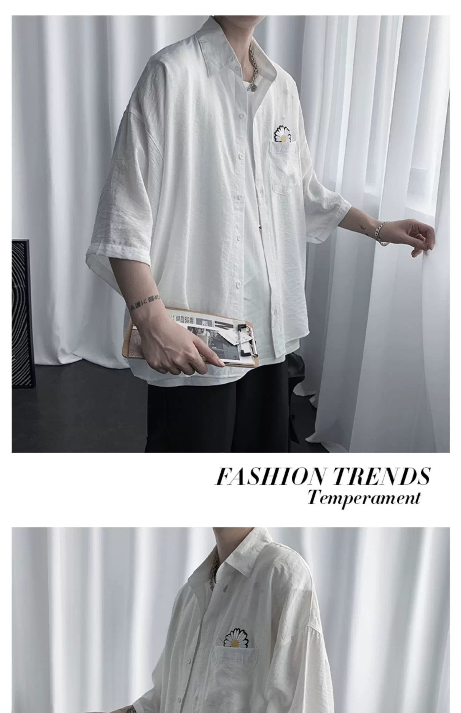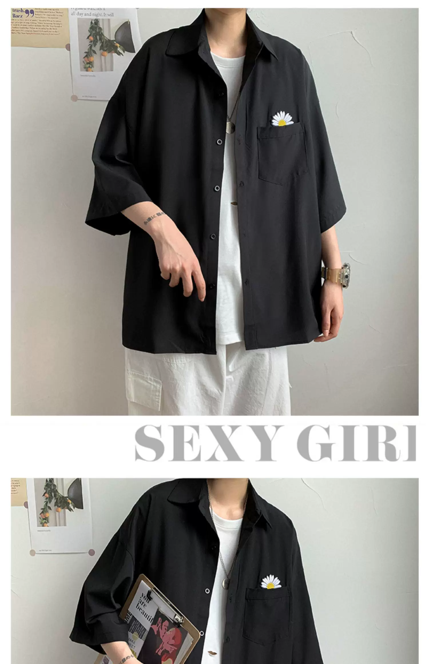 - Áo sơ mi ngắn tay hoa cúc mùa hè hợp thời trang, áo sơ mi tay lửng dáng rộng đa năng, áo khoác công sở nam thông thường