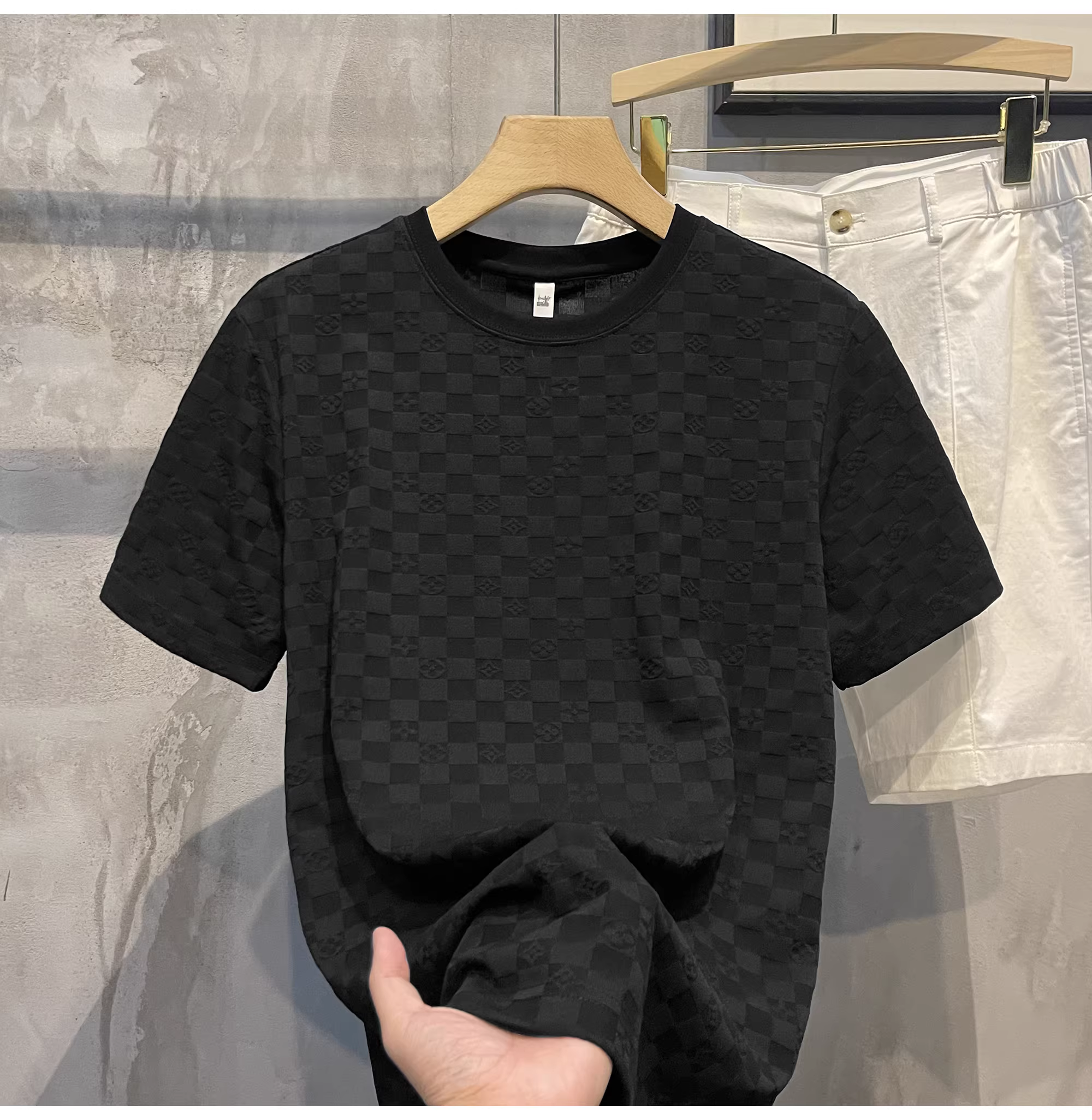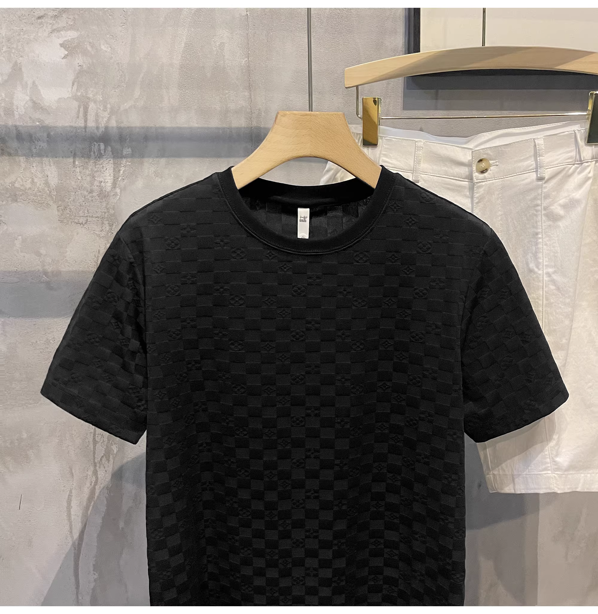 Áo sơ mi ngắn tay họa tiết ca rô phong cách châu Âu cao cấp LUUD dành cho nam, nhẹ nhàng sang trọng, màu trơn, áo thun cổ tròn giản dị