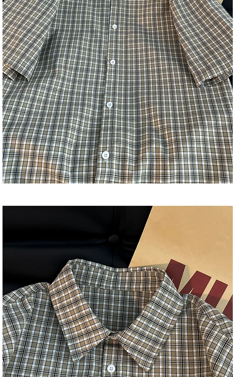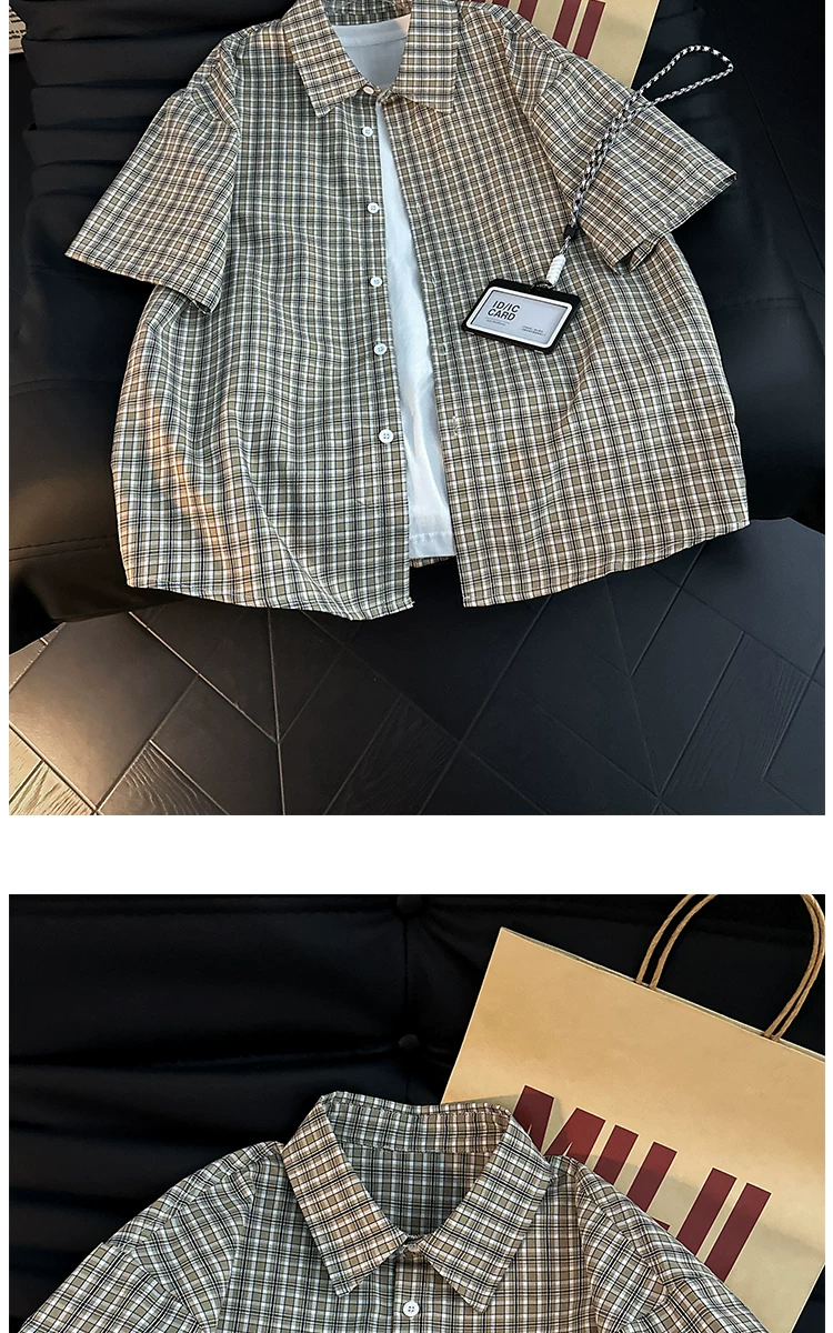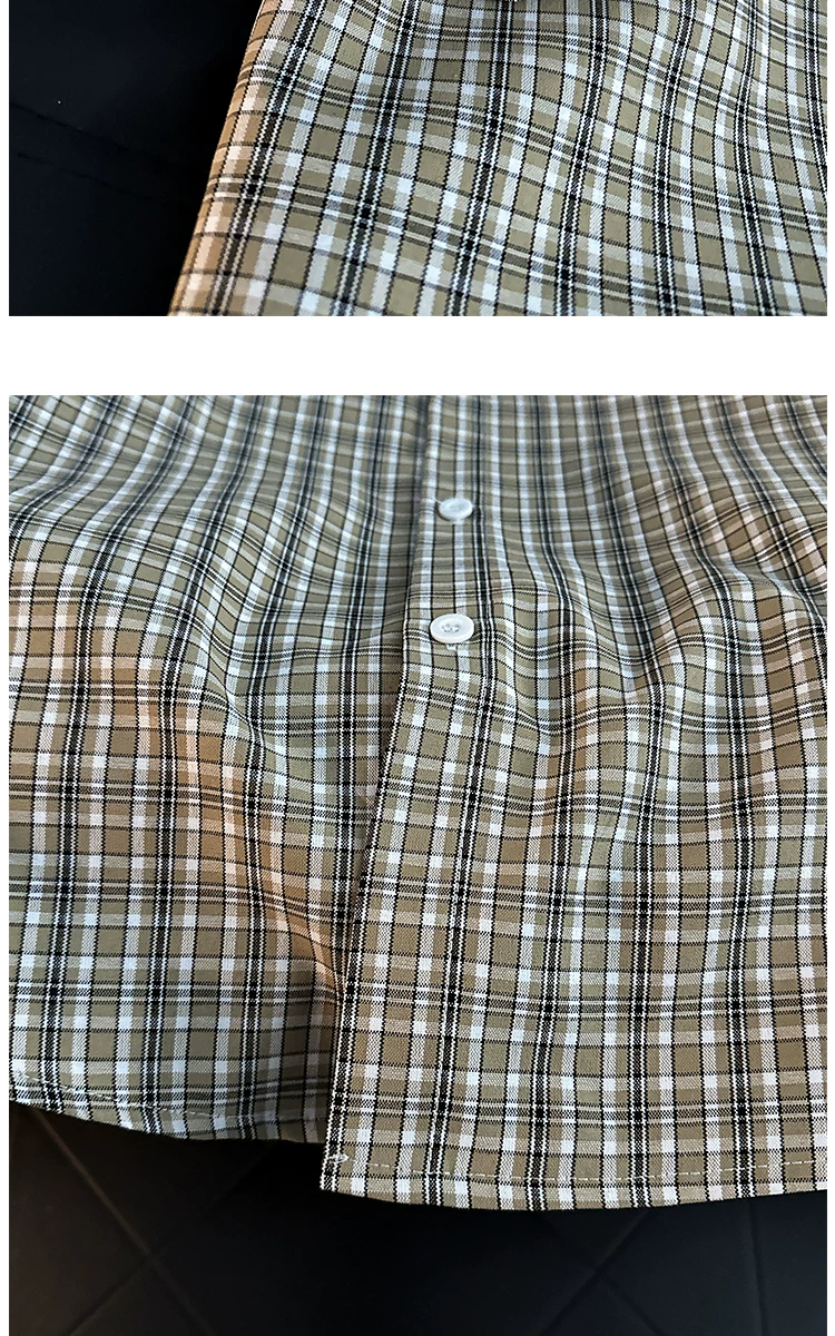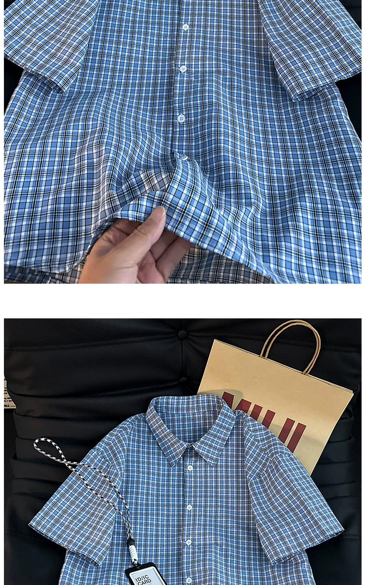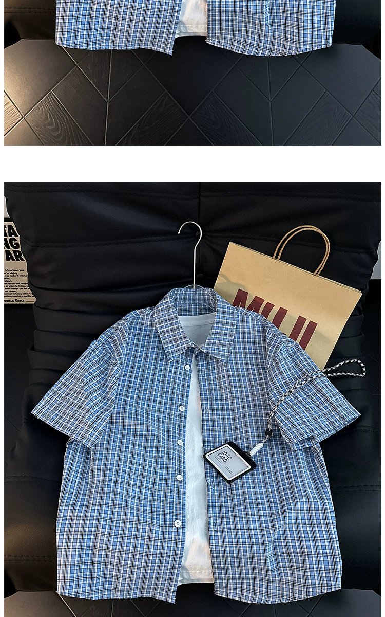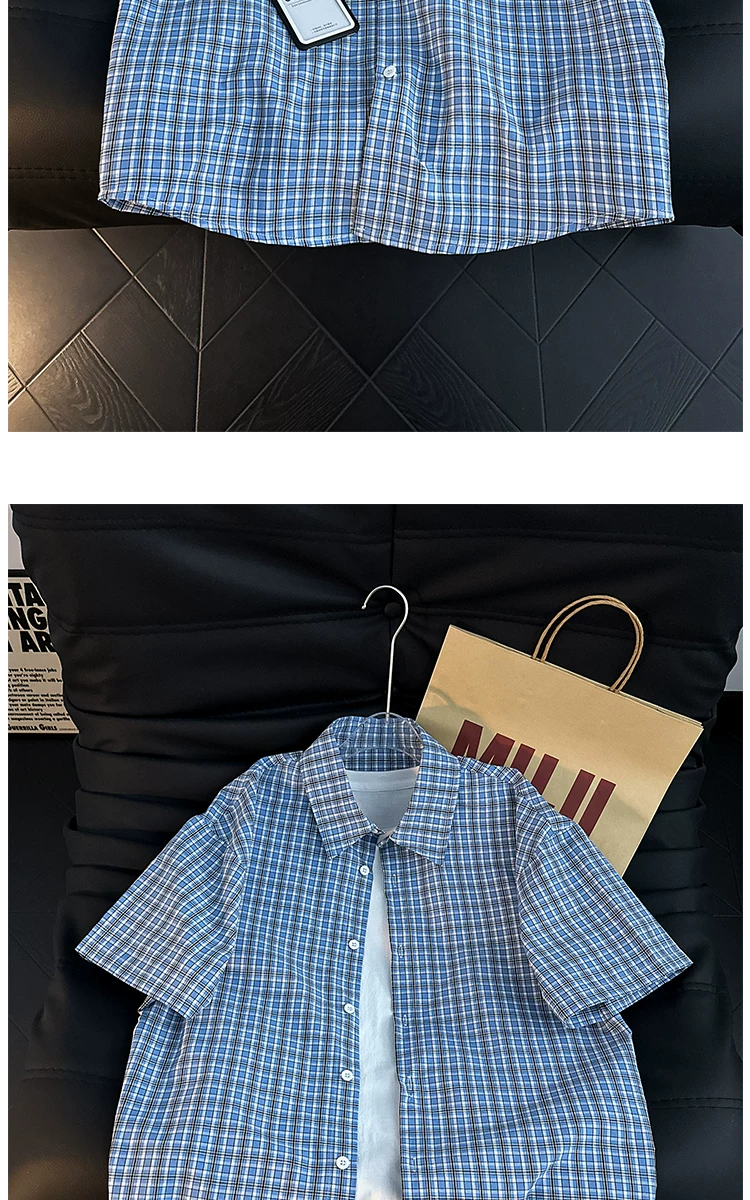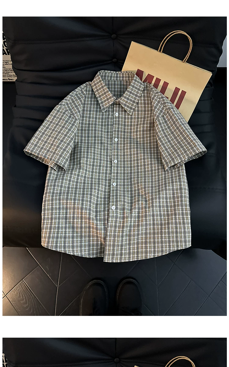 - Áo sơ mi ngắn tay kẻ sọc phong cách retro của Mỹ dành cho nam, áo khoác sơ mi dáng rộng mùa hè, áo nửa tay thông thường của thương hiệu thời thượng