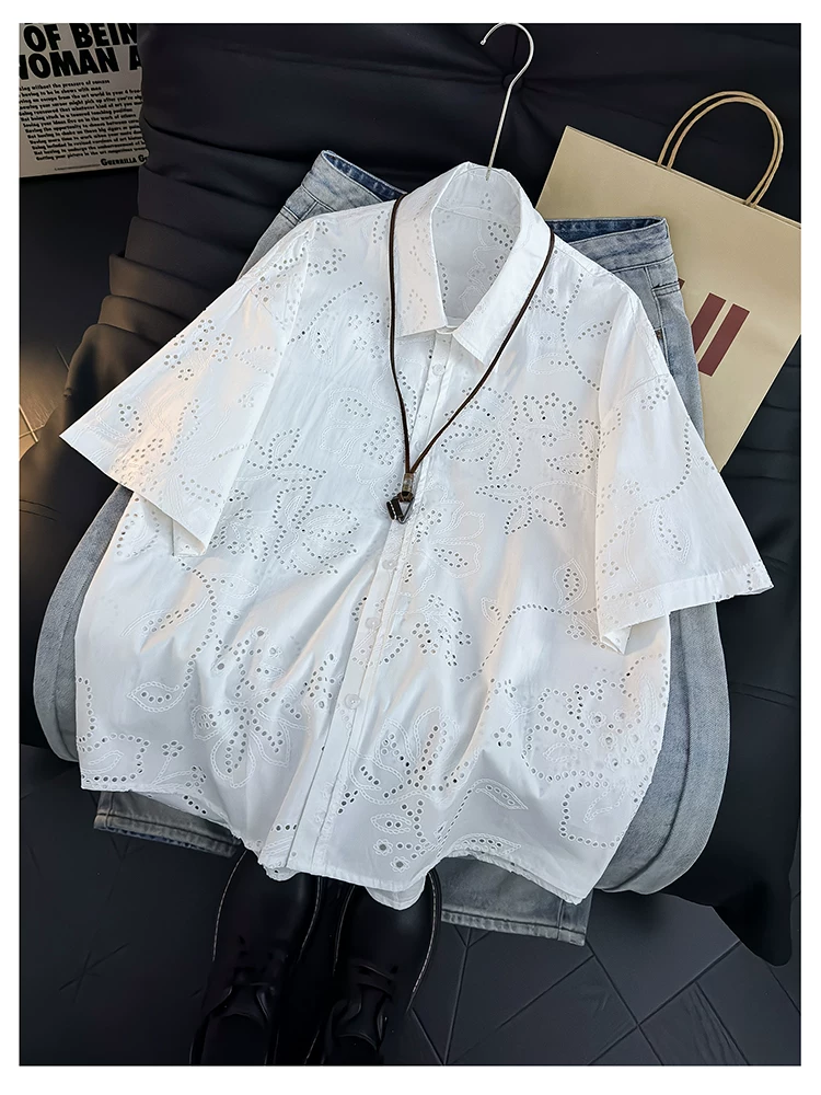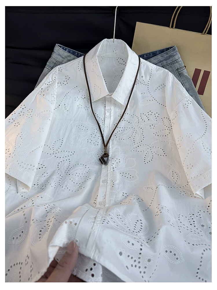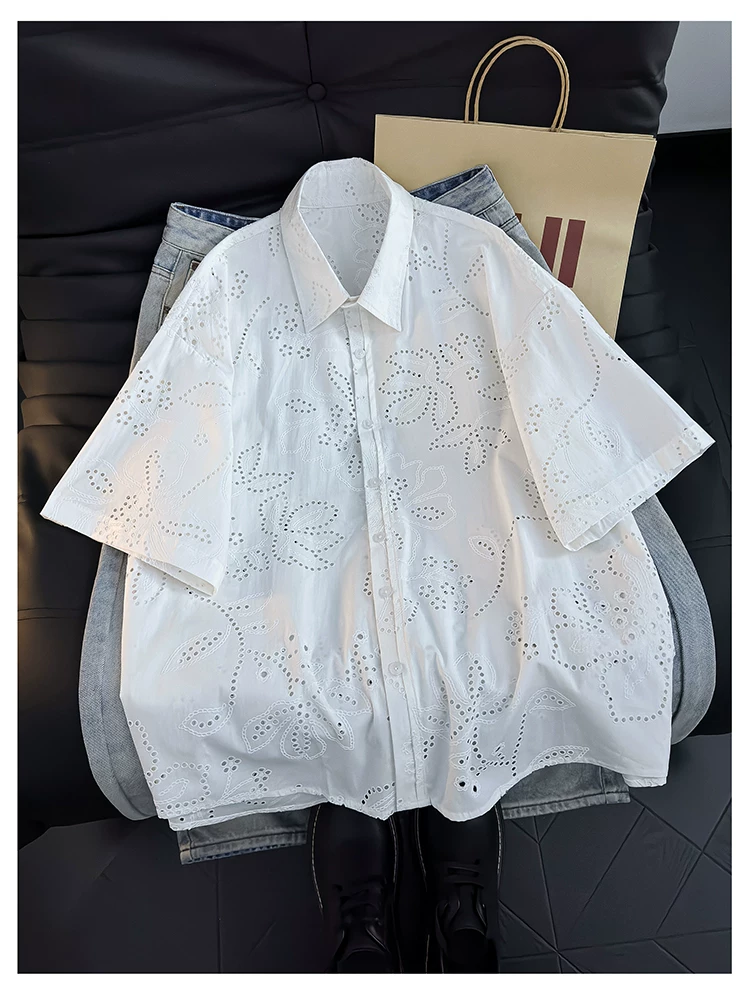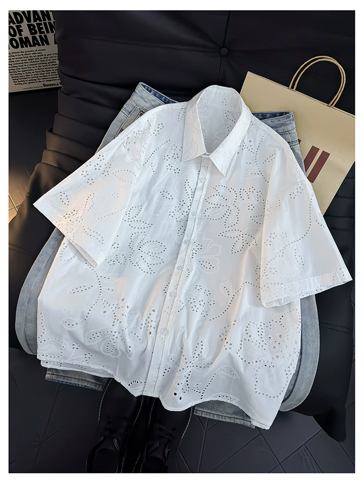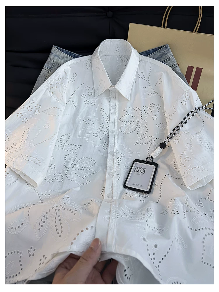 Áo sơ mi ngắn tay kiểu Mỹ dành cho nam và nữ, áo kiểu dáng rộng rãi thoáng khí mùa hè, áo khoác thiết kế thời trang.