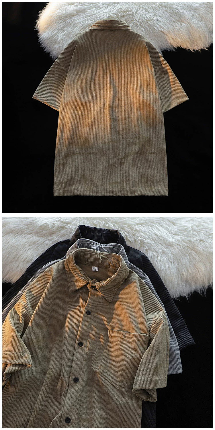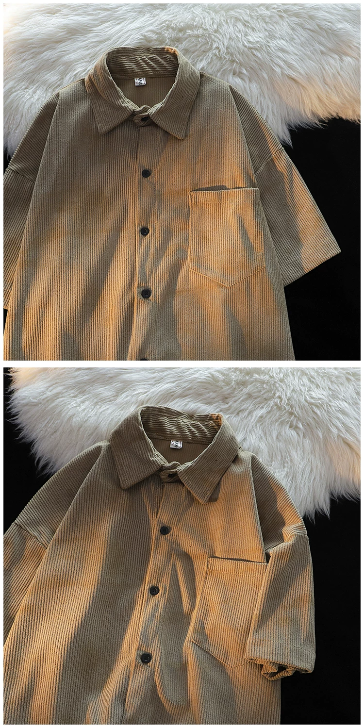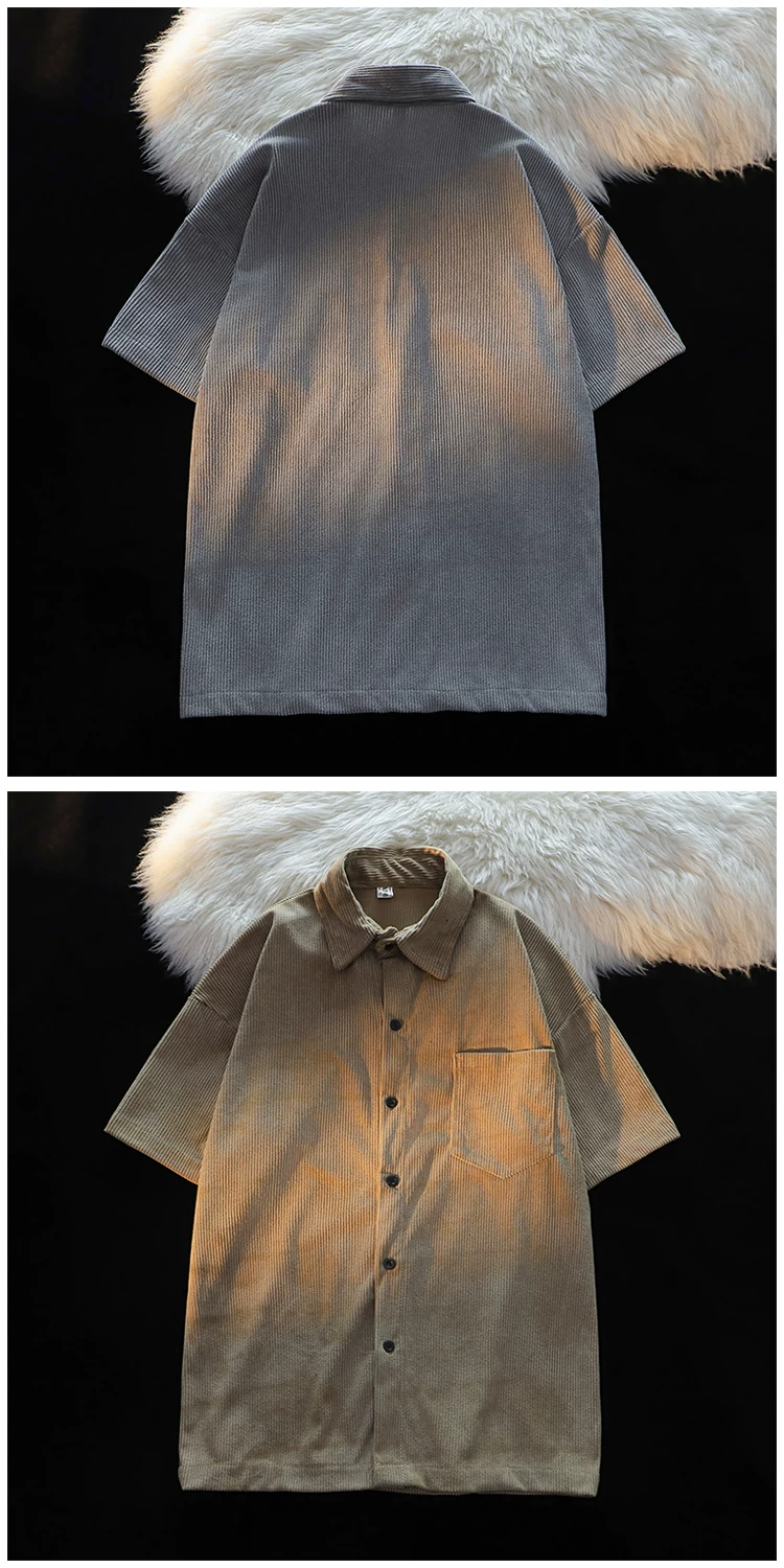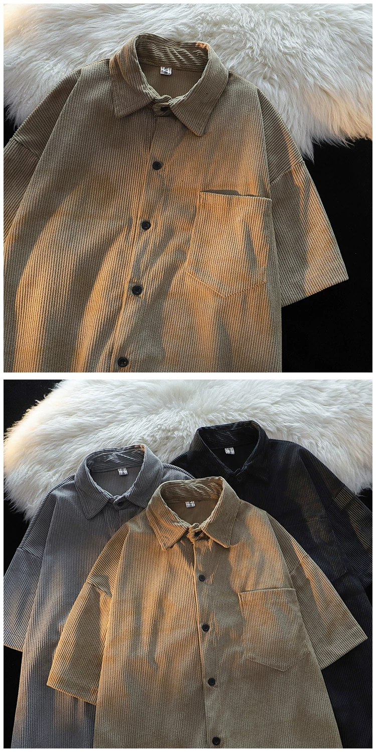 - Áo sơ mi ngắn tay kiểu Mỹ phong cách Hồng Kông dành cho nam, áo sơ mi vải nhung mỏng mùa hè, áo khoác cặp đôi đa năng hợp thời trang.