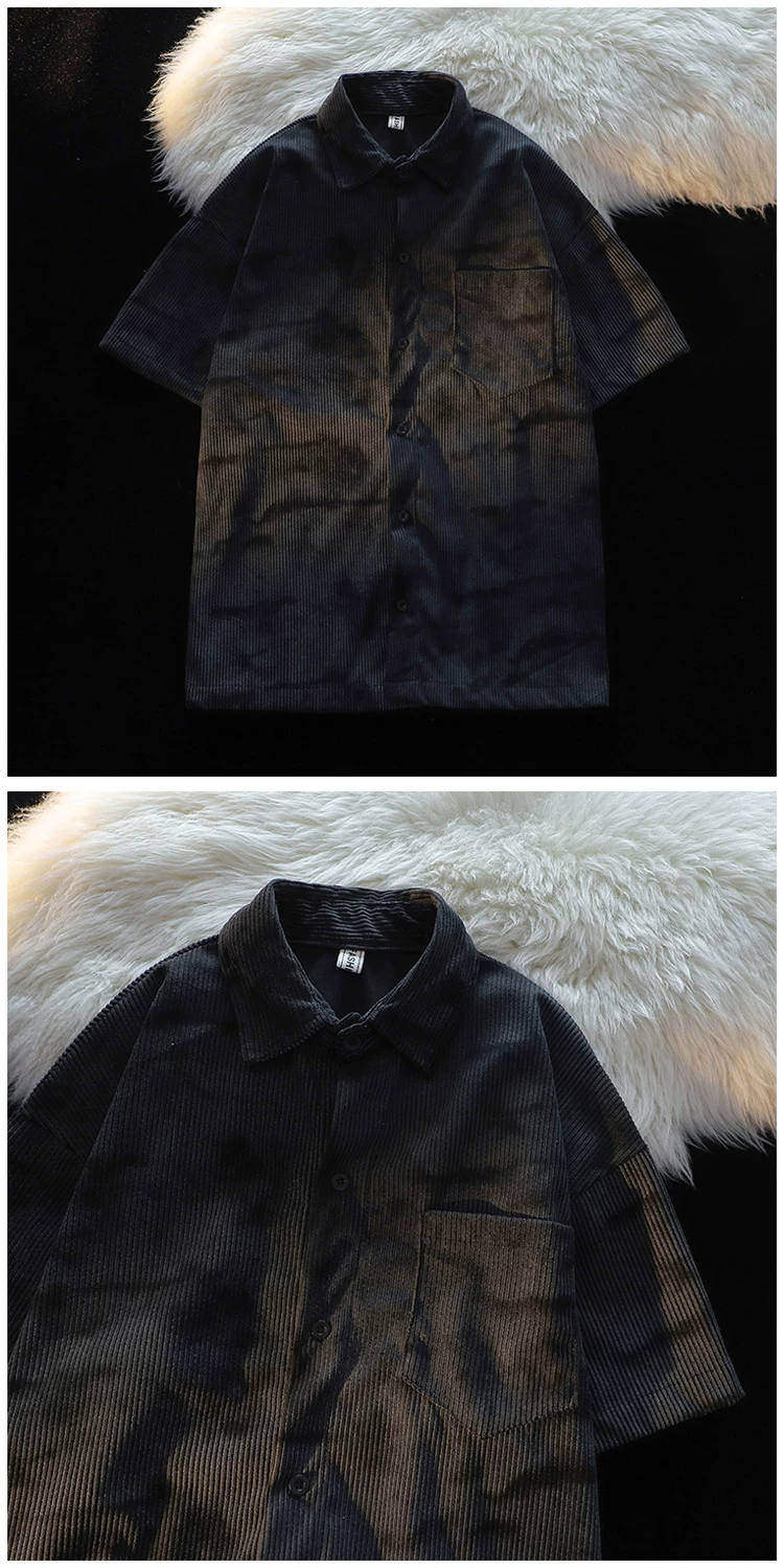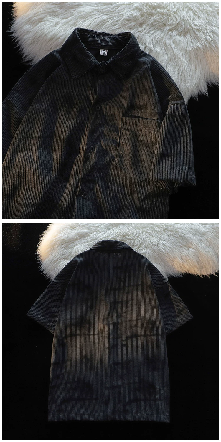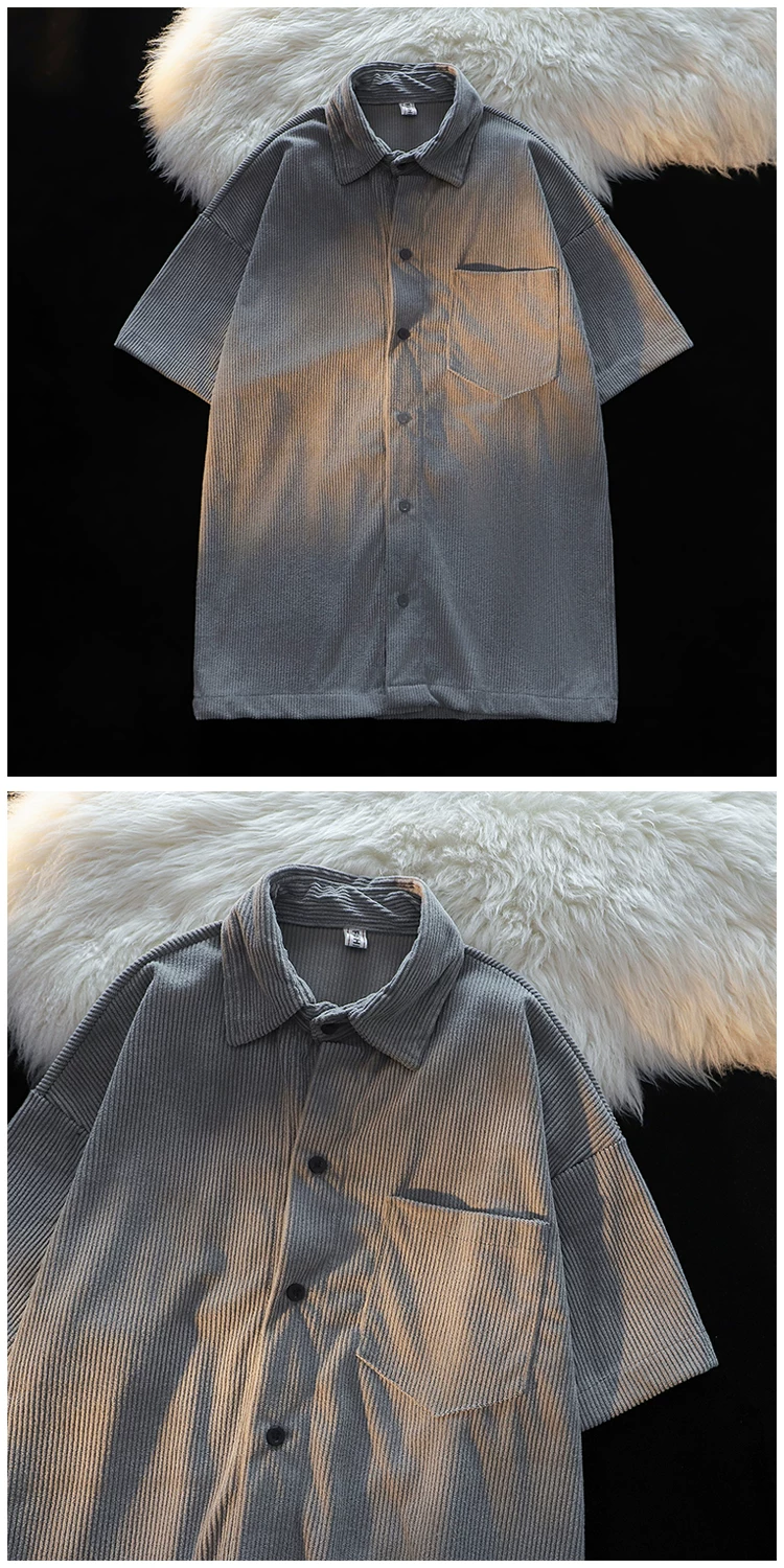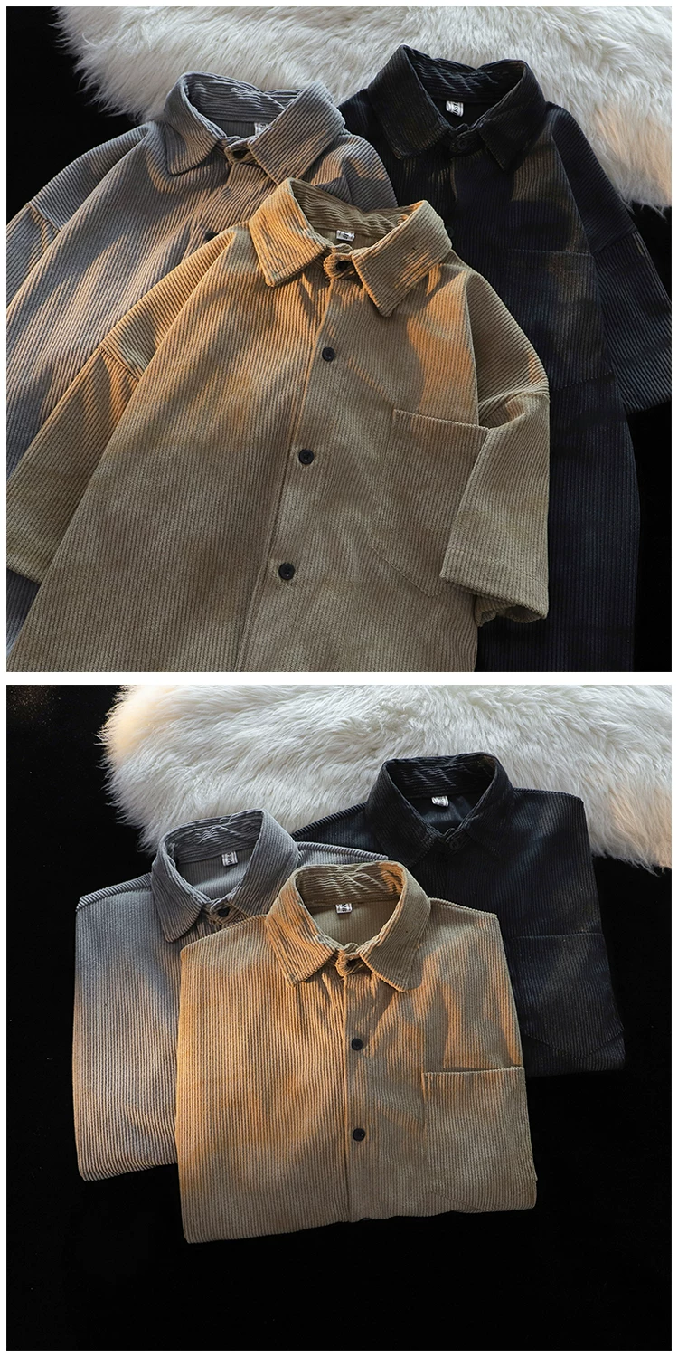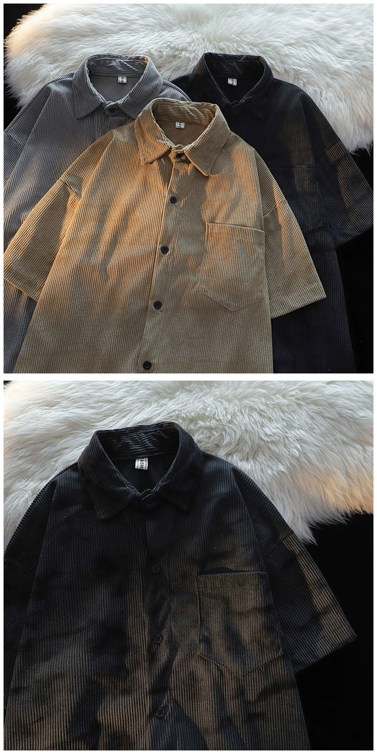 - Áo sơ mi ngắn tay kiểu Mỹ phong cách Hồng Kông dành cho nam, áo sơ mi vải nhung mỏng mùa hè, áo khoác cặp đôi đa năng hợp thời trang.