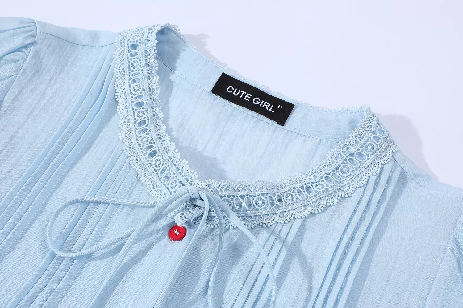 - Áo sơ mi ngắn tay màu trắng cổ tròn ren kiểu Pháp dễ thương dành cho nữ mùa hè Áo kiểu buộc dây độc đáo