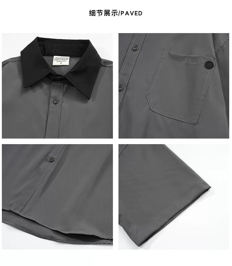 - Áo sơ mi ngắn tay phối màu mùa hè dành cho nam và nữ, áo khoác dáng rộng thời thượng, áo sơ mi cao cấp phong cách Mỹ.
