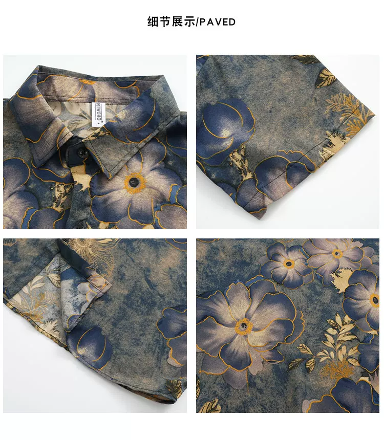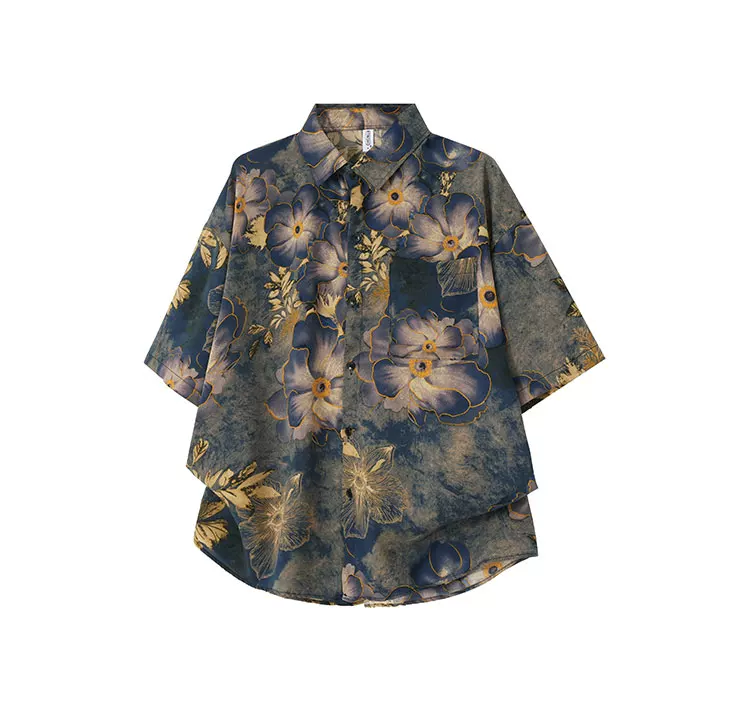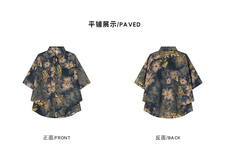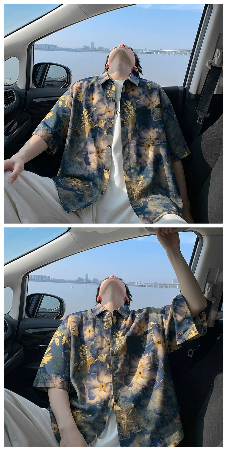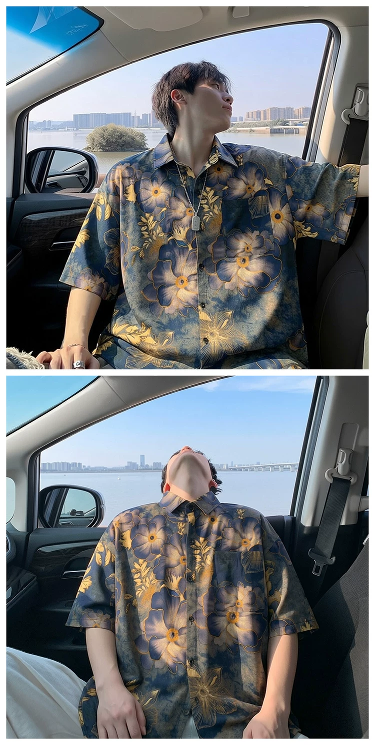 - Áo sơ mi ngắn tay phong cách retro Mỹ cho nam và nữ, áo sơ mi dáng rộng mùa hè, áo lụa băng cao cấp thời thượng.