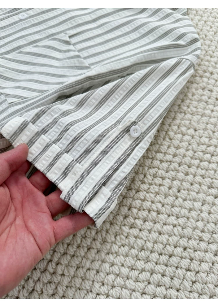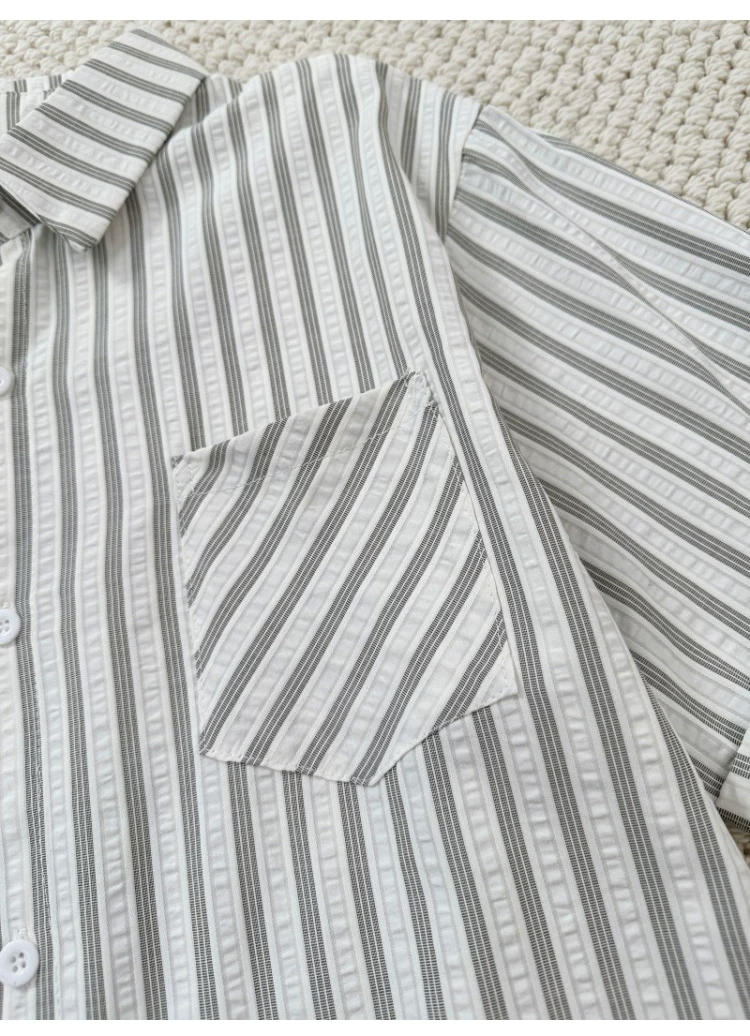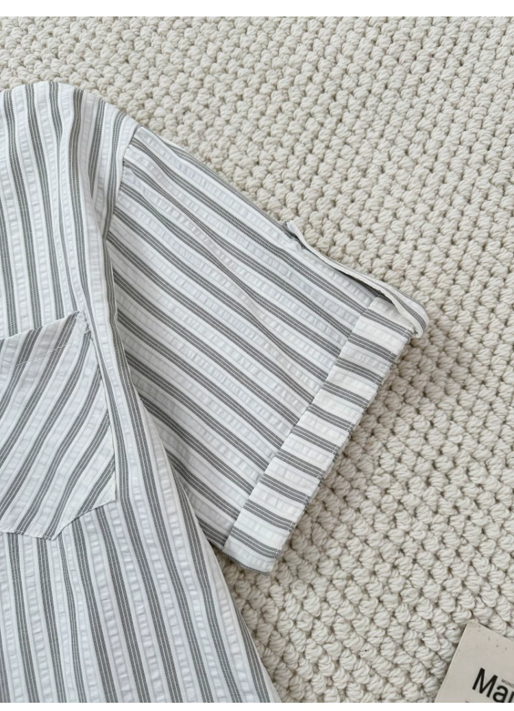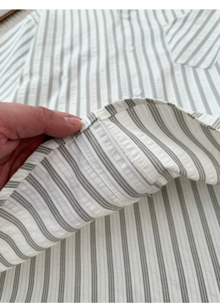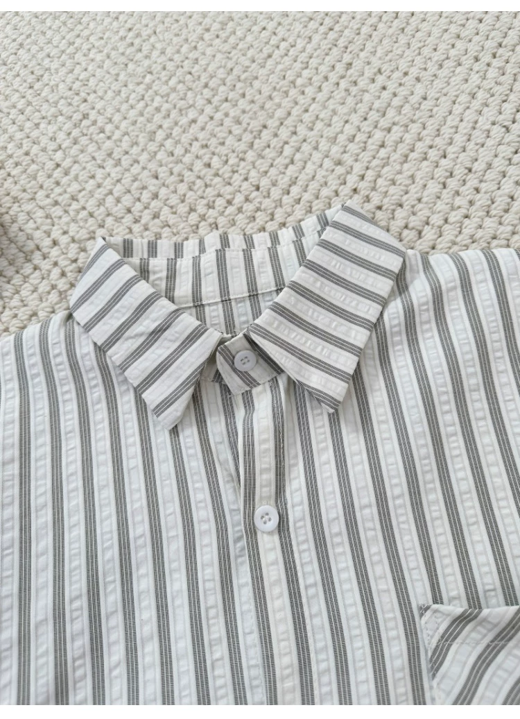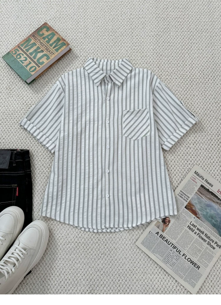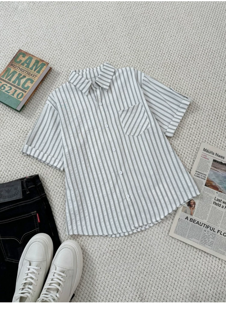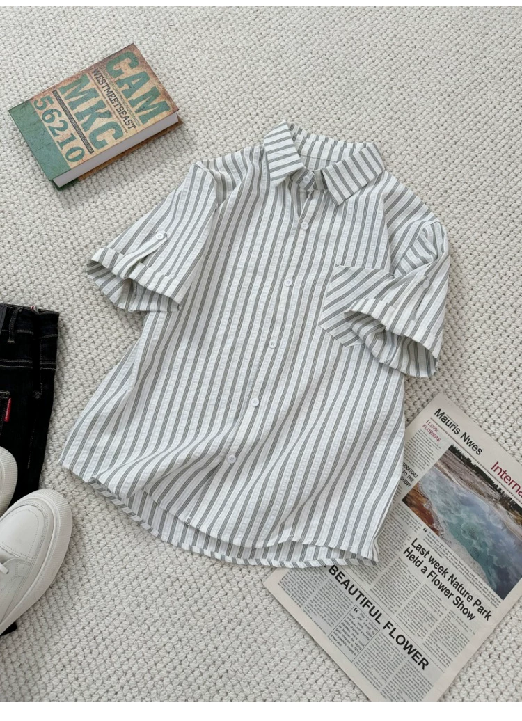 - Áo sơ mi ngắn tay sọc kiểu Nhật dành cho nam và nữ, áo đa năng cổ bẻ mùa hè, áo khoác sơ mi cao cấp dáng rộng thương hiệu thời thượng.