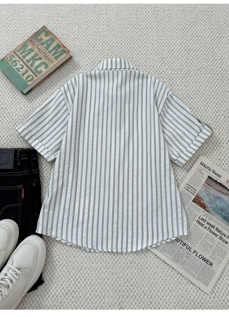Áo sơ mi ngắn tay sọc kiểu Nhật dành cho nam và nữ, áo đa năng cổ bẻ mùa hè, áo khoác sơ mi cao cấp dáng rộng thương hiệu thời thượng.