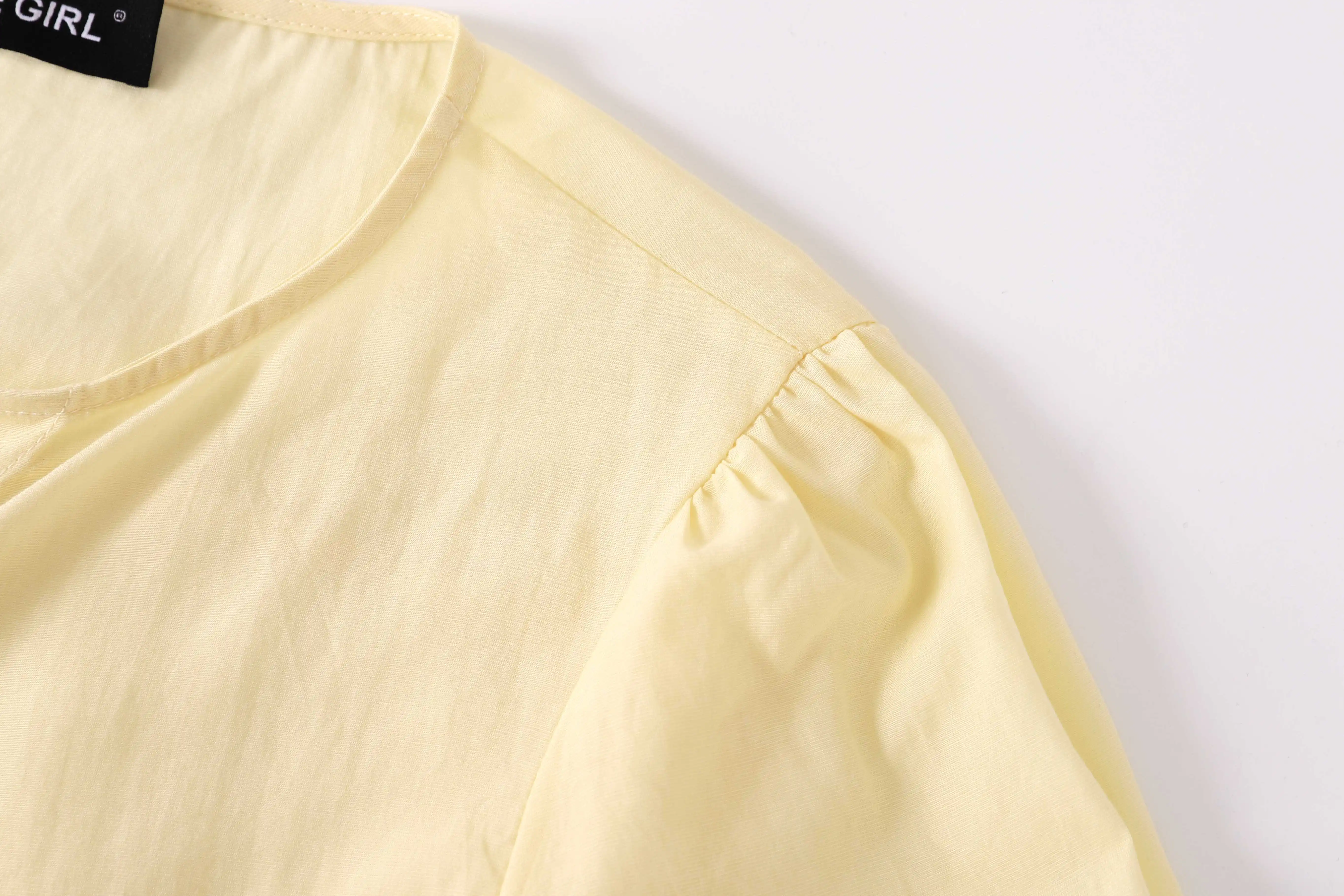 - Áo sơ mi ngắn tay thiết kế theo phong cách Hàn Quốc cổ chữ V thắt eo dành cho nữ, áo tay phồng độc đáo mùa hè
