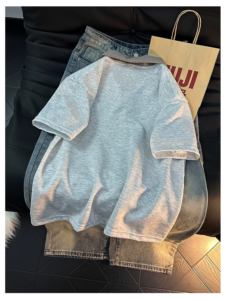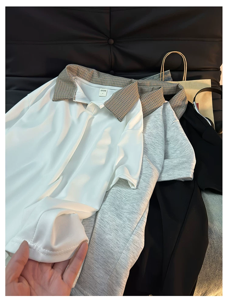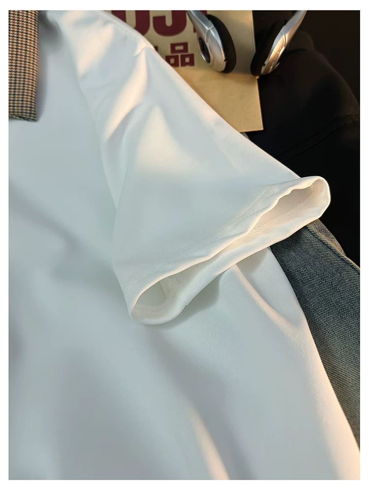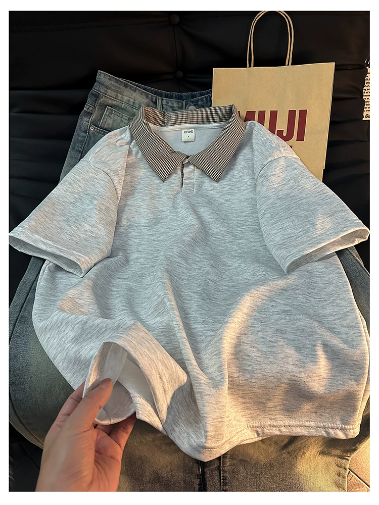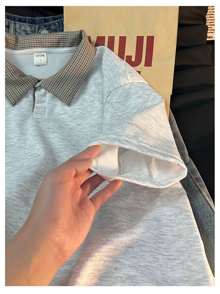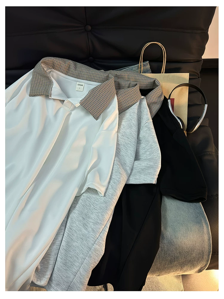 - Áo sơ mi Polo tay ngắn kiểu Mỹ dành cho nam, áo thun dáng rộng hợp thời trang mùa hè, áo thun thiết kế chắp vá kẻ sọc